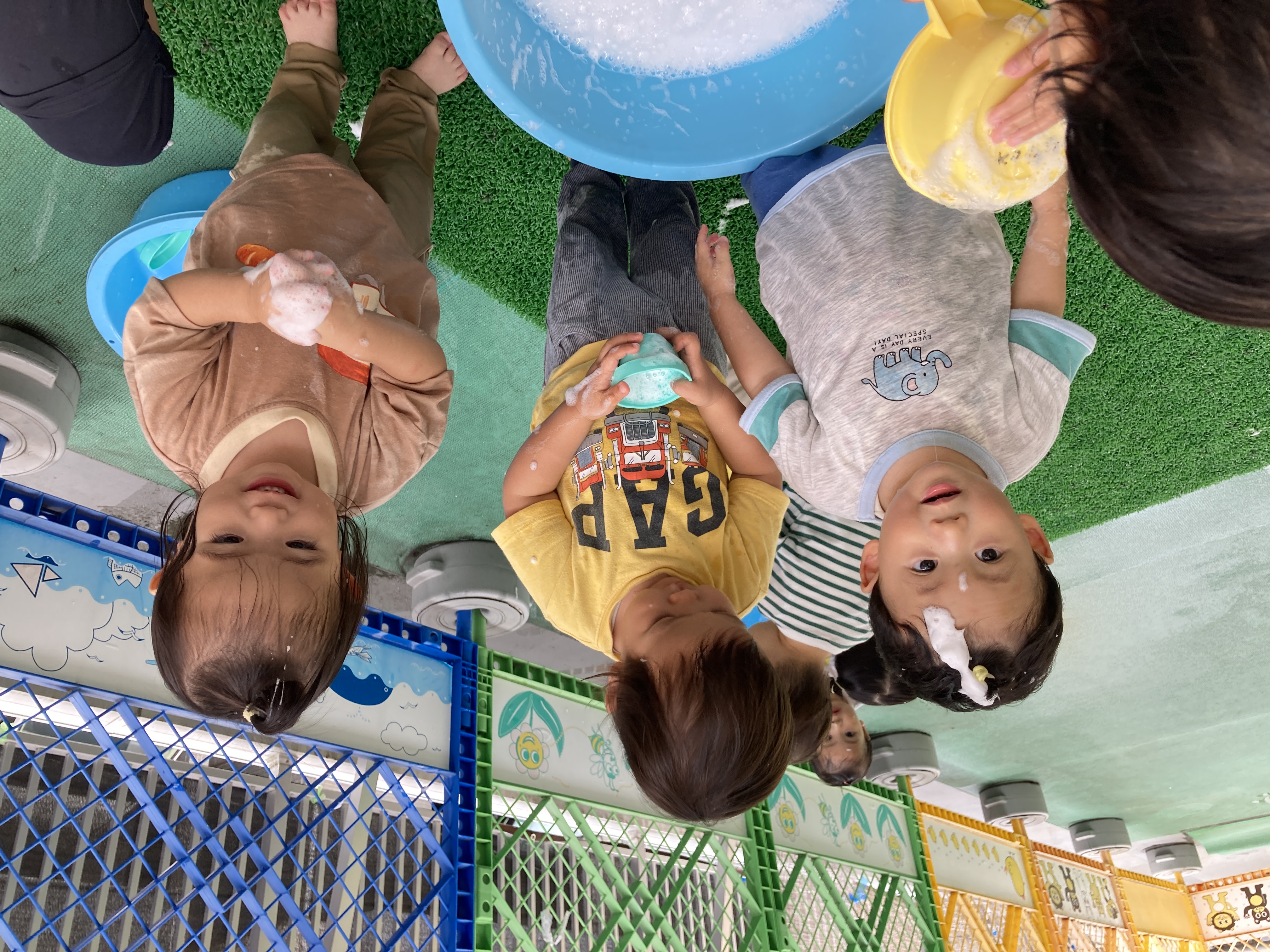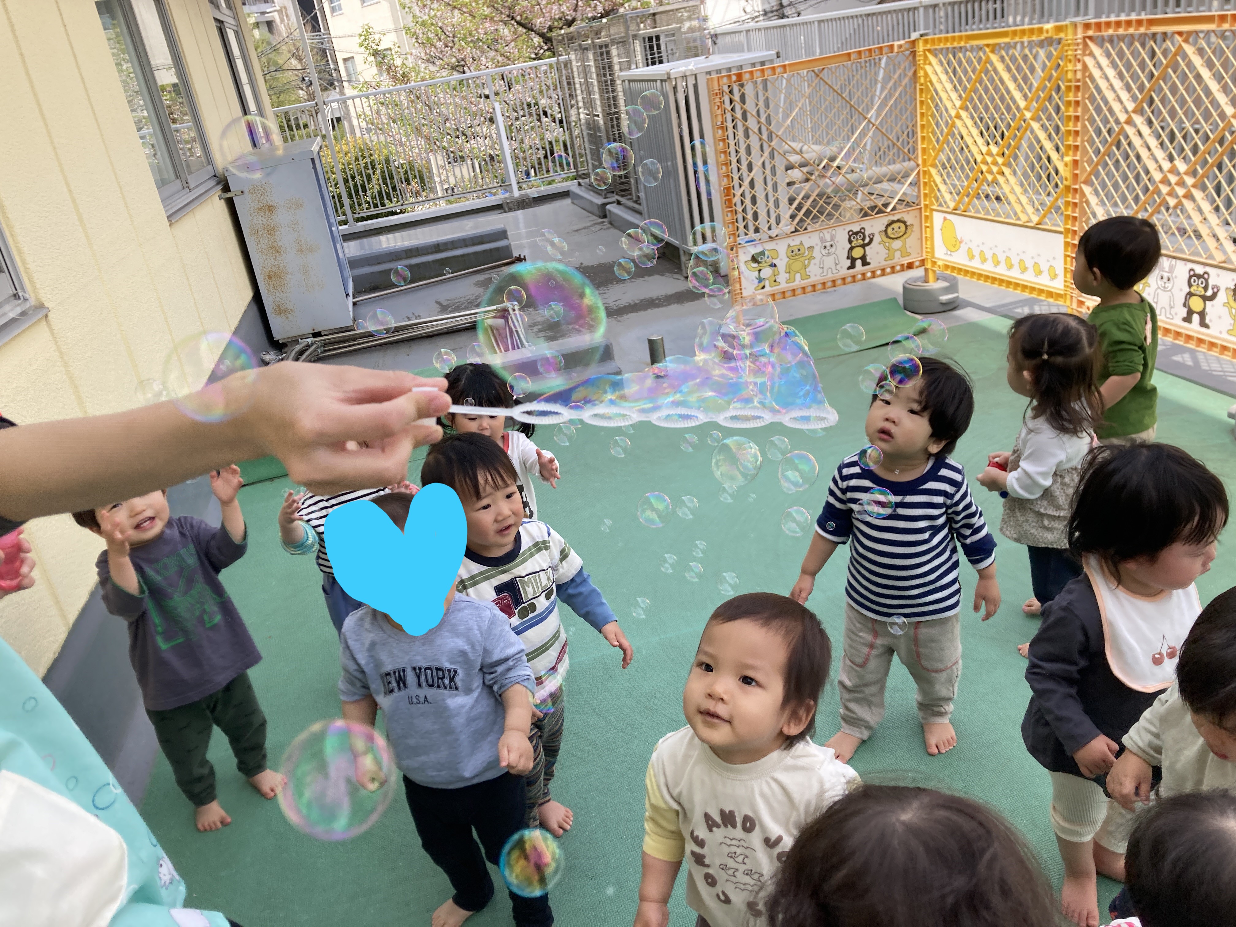 2階のテラスでシャボン玉を追いかけたりもしましたよ。