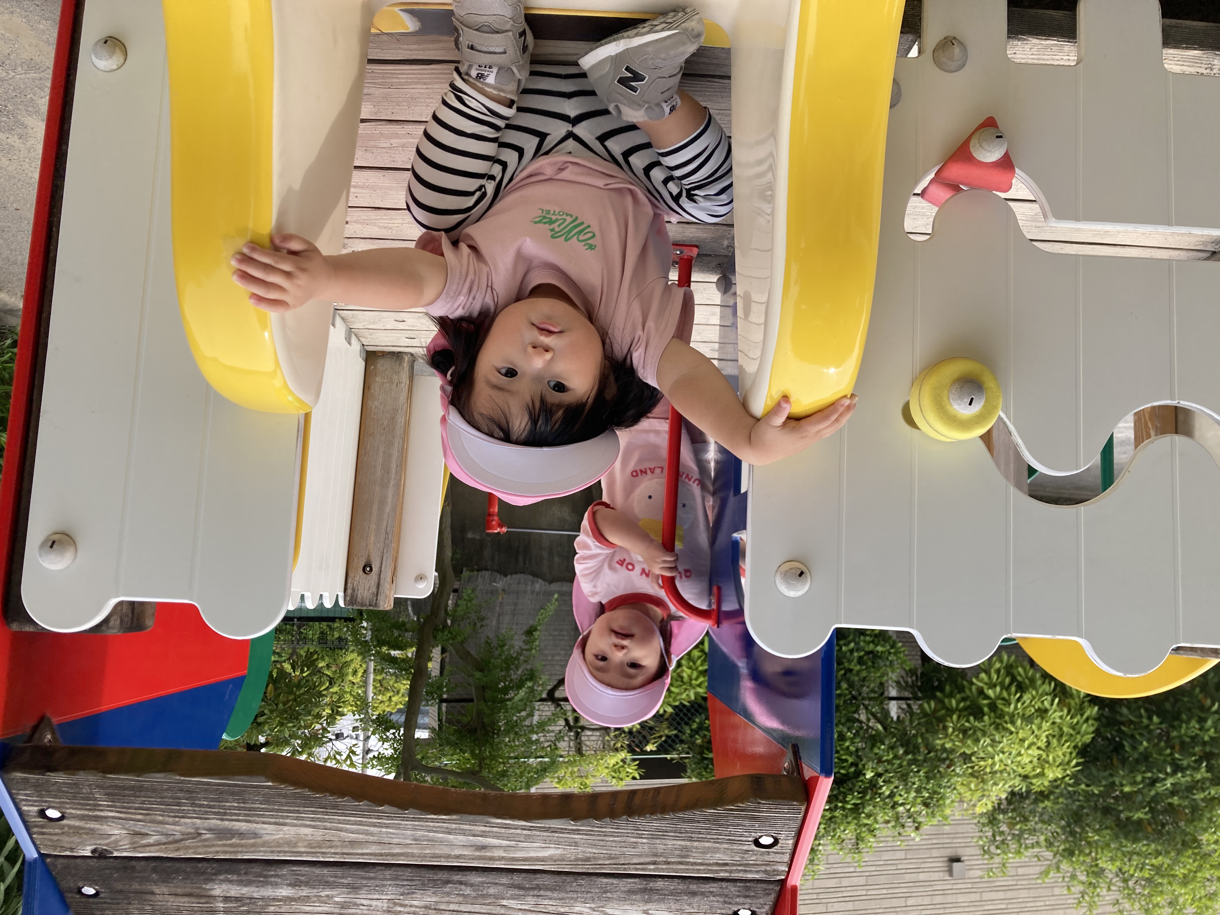 園庭には乳児さんが楽しめる遊具があり、よいしょっと階段を昇ったり滑ったり。