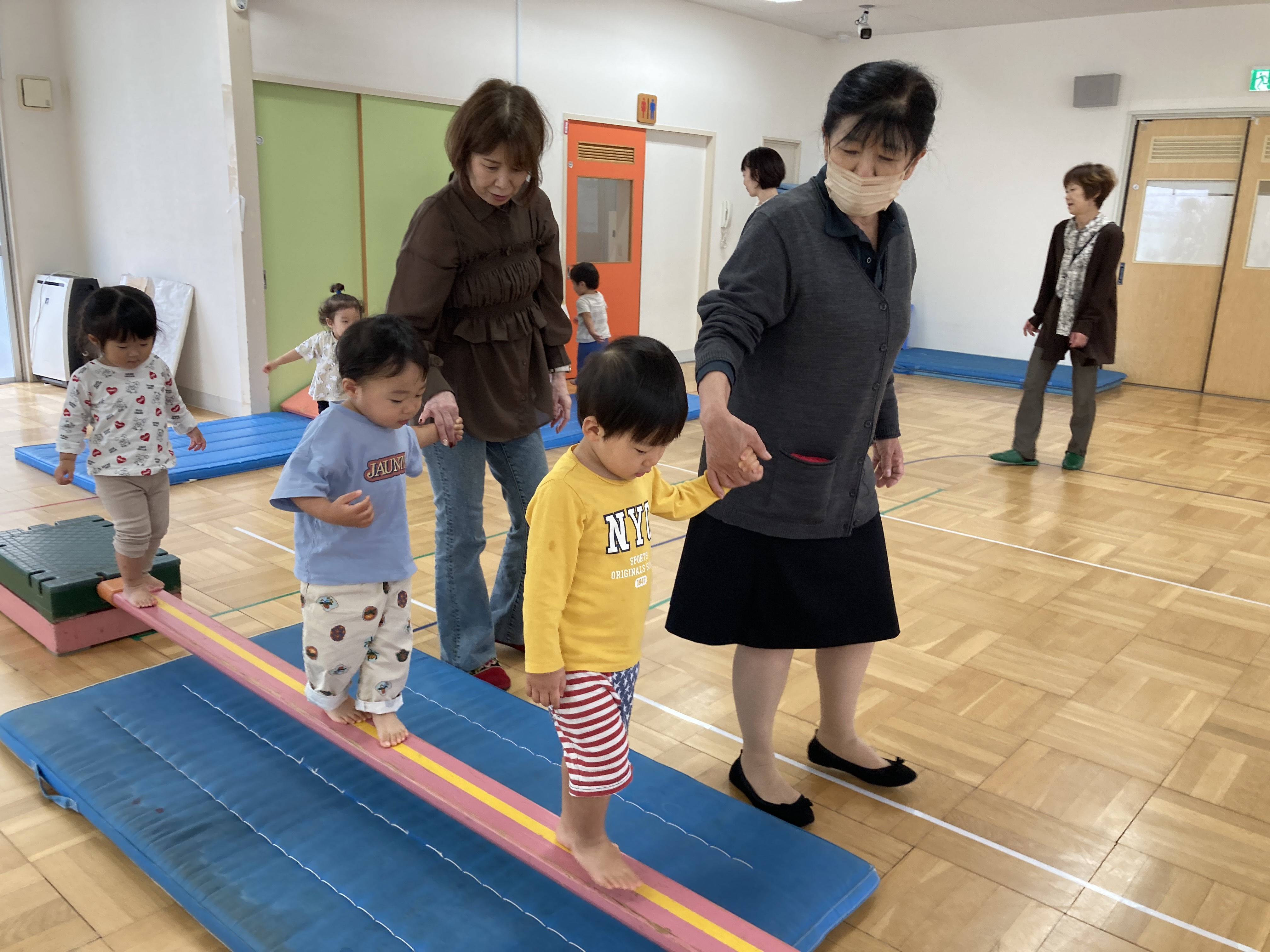 くるみ組は、運動会のダンス発表とカプラや巧技台でのコーナー遊びを楽しみました。