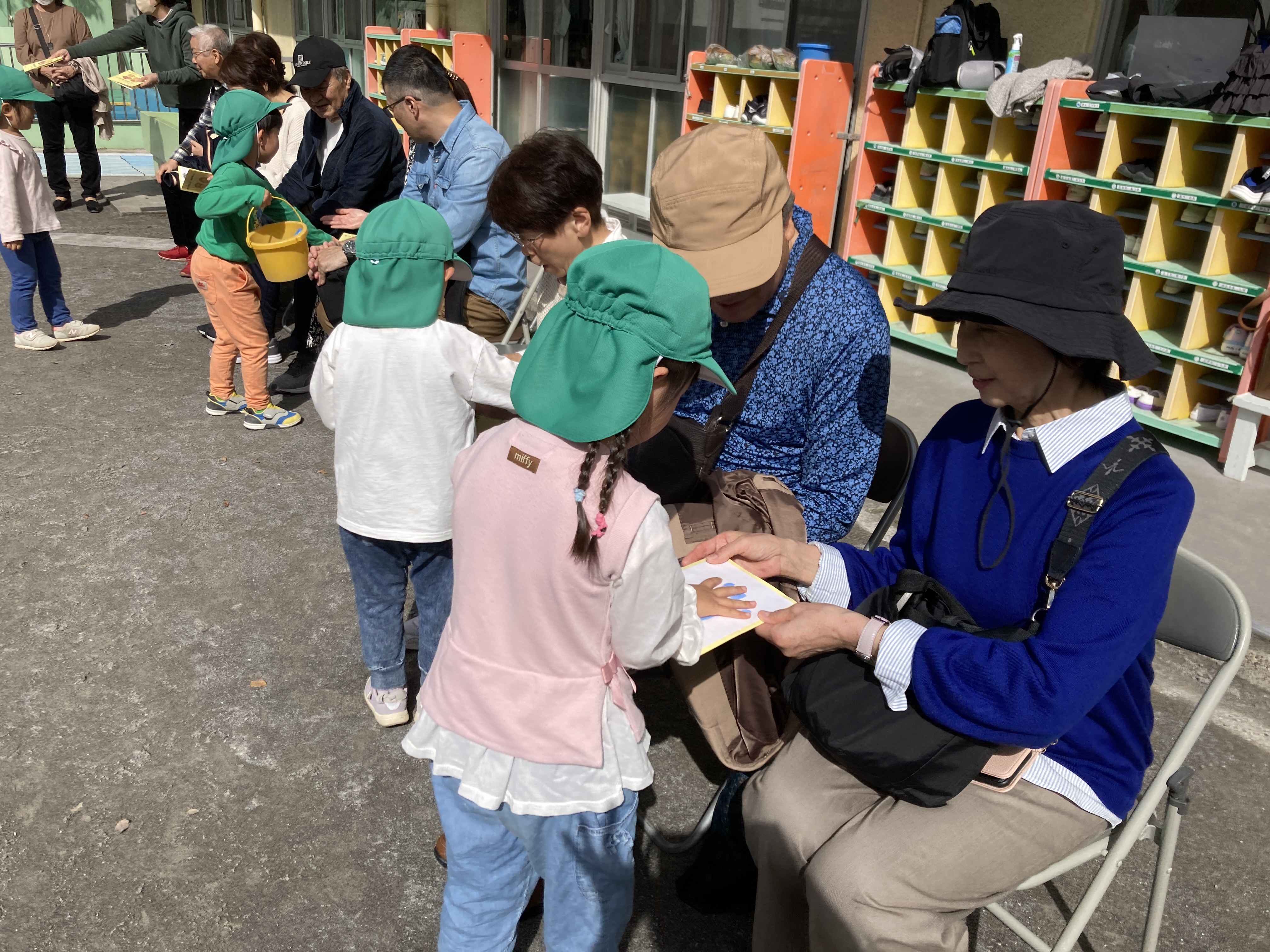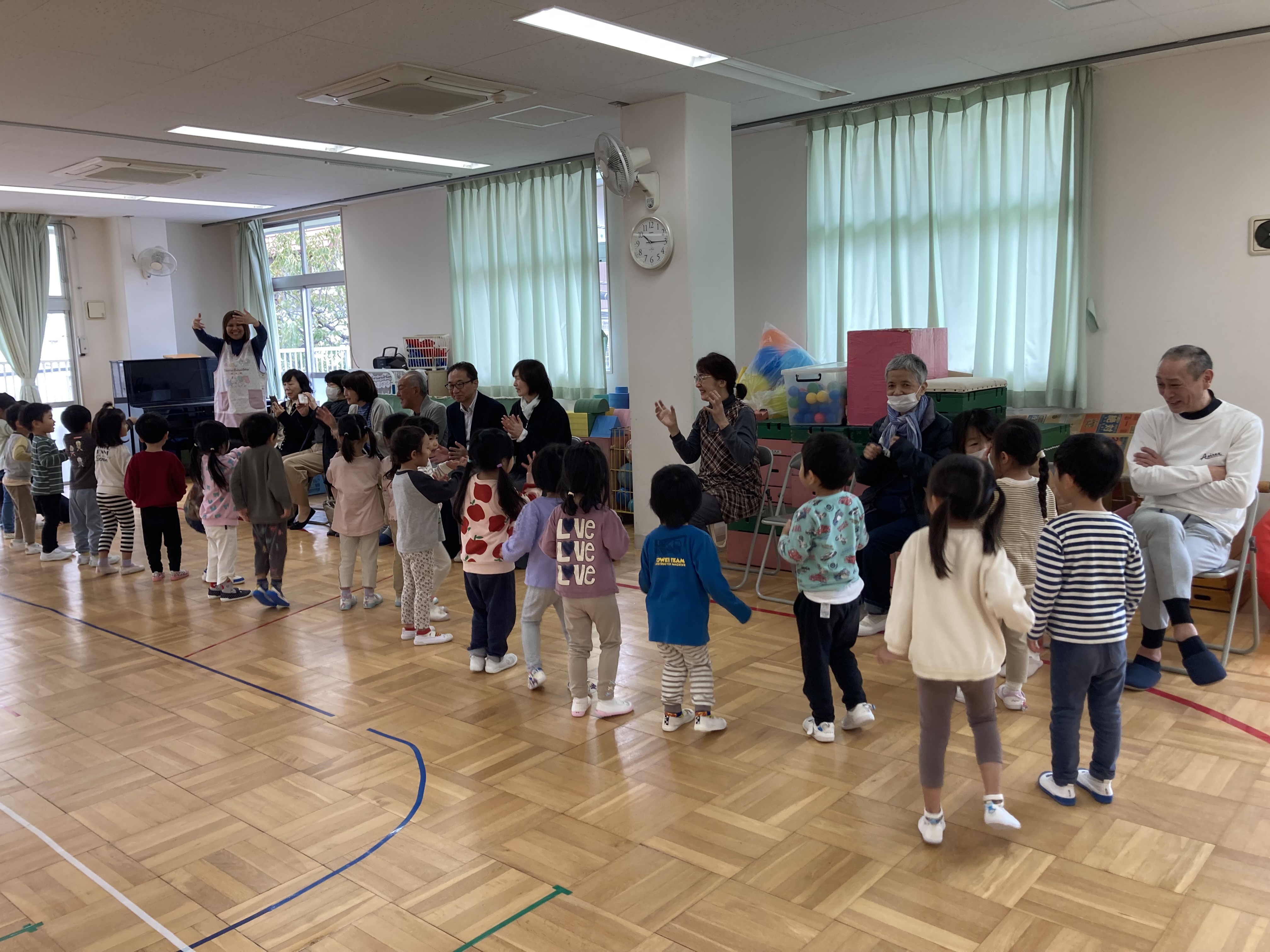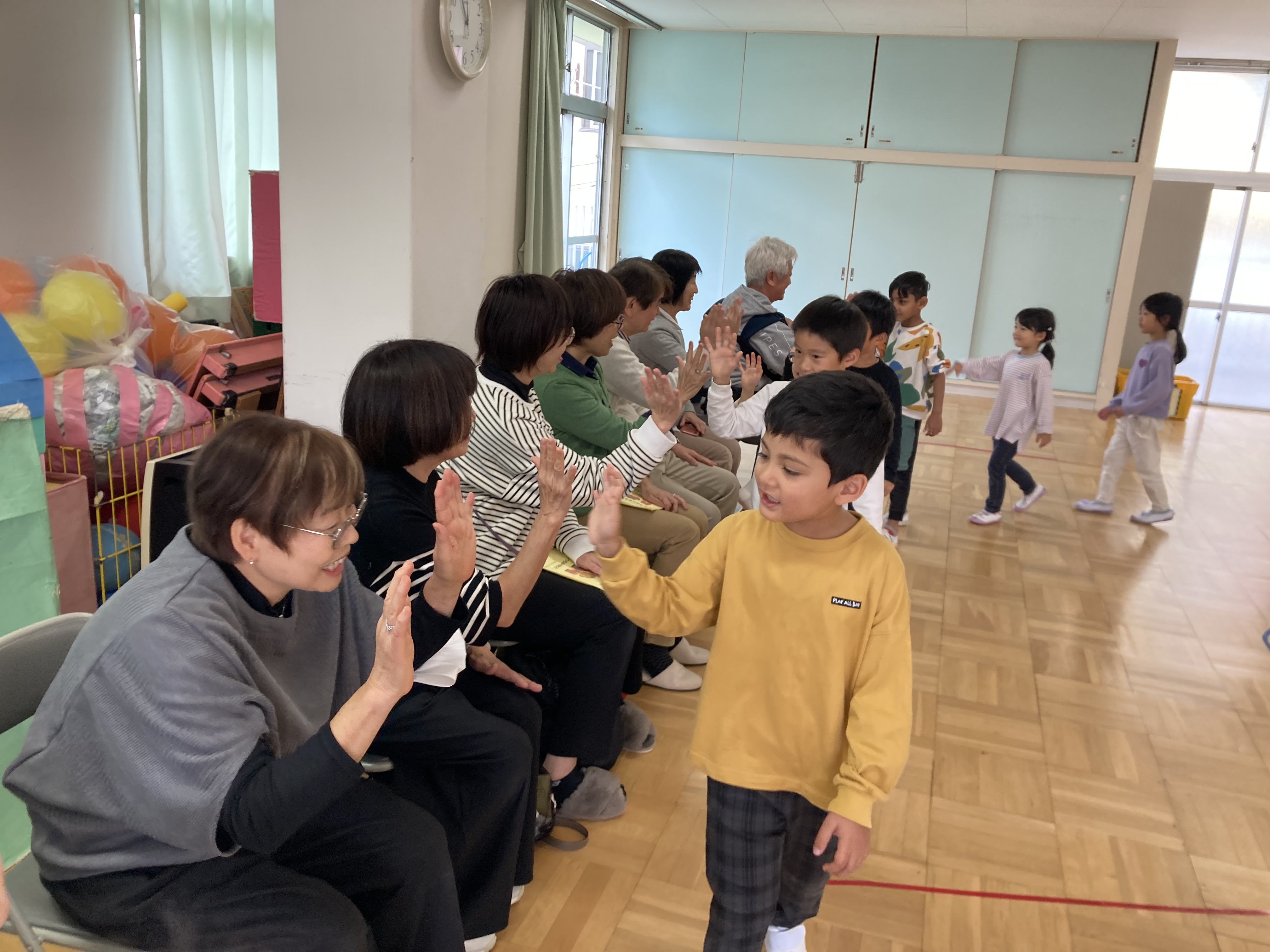 どんぐり組は最初におじいちゃんおばあちゃんの自己紹介、そのあと運動会の競技発表をしてから