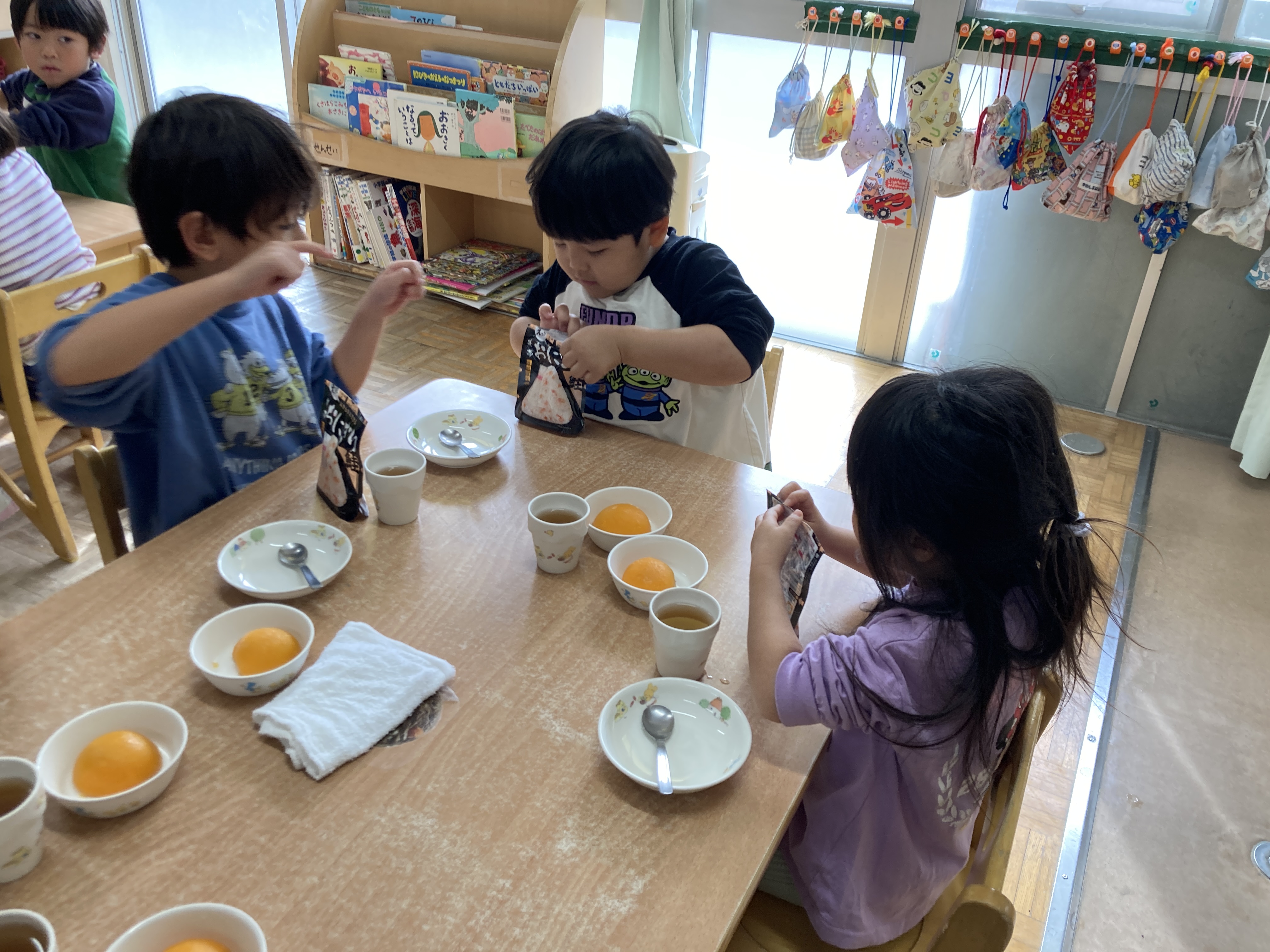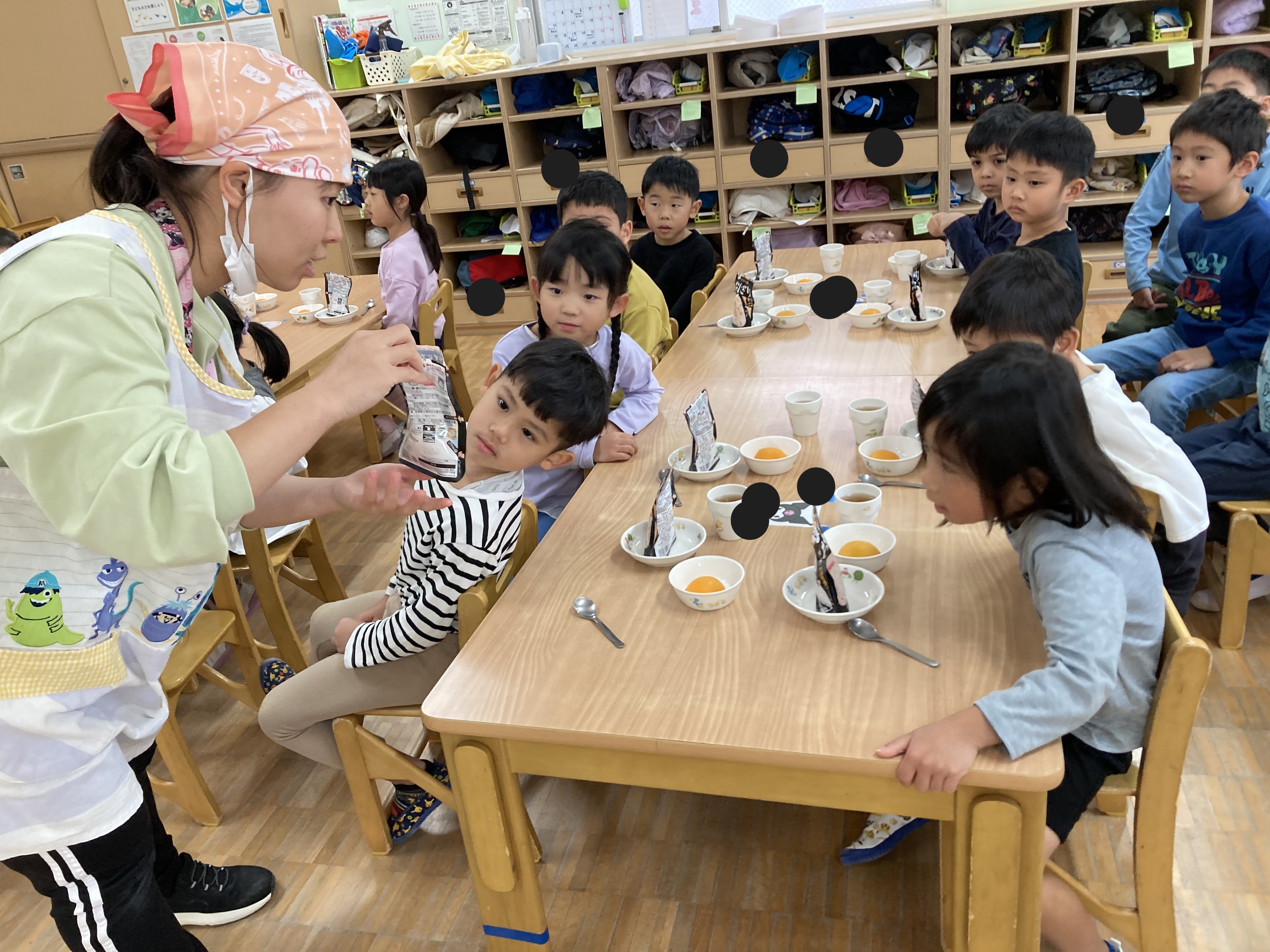 袋から出すのが少し難しかったのですが、幼児クラスは自分達で出すことが出来ました。