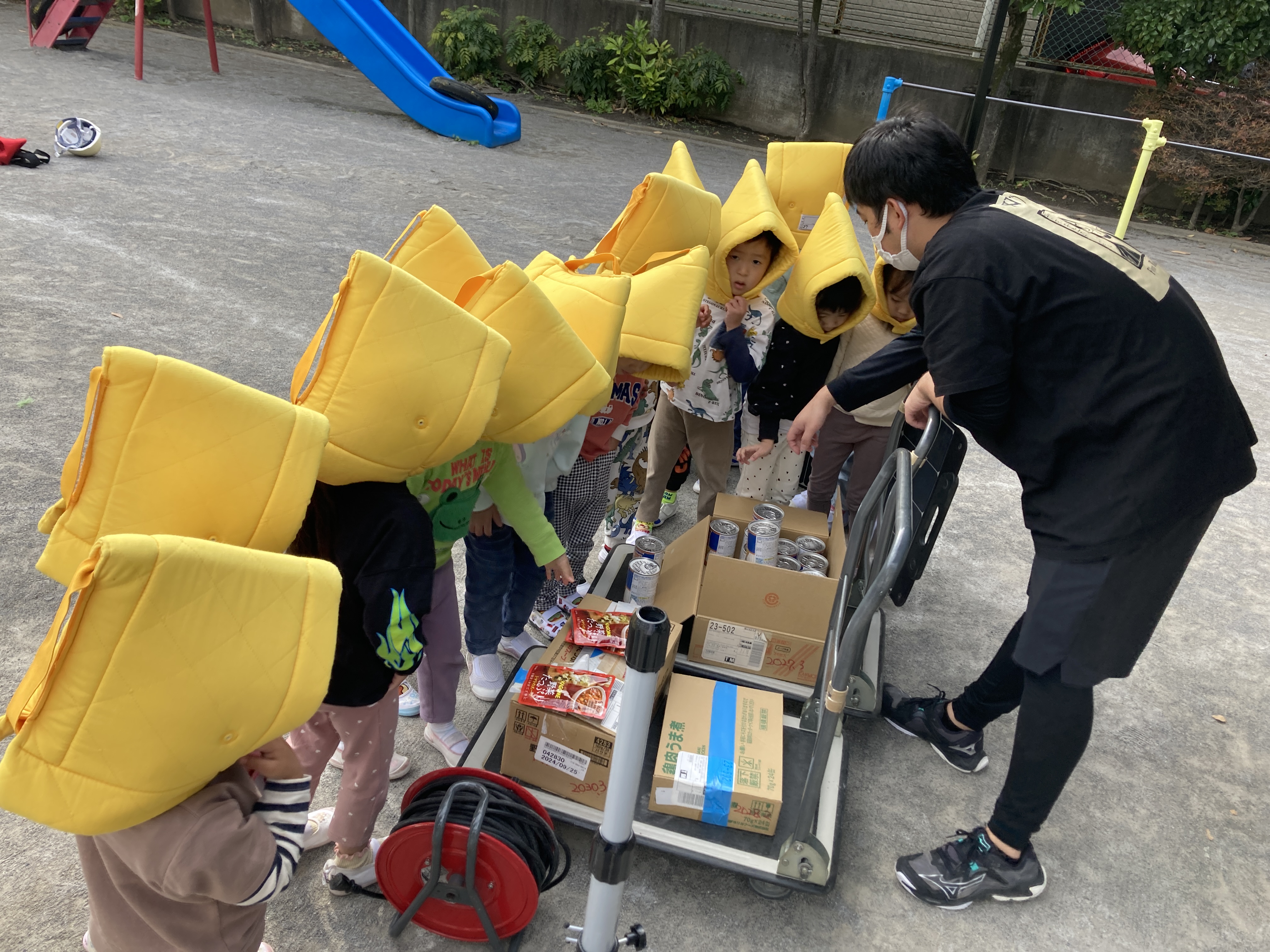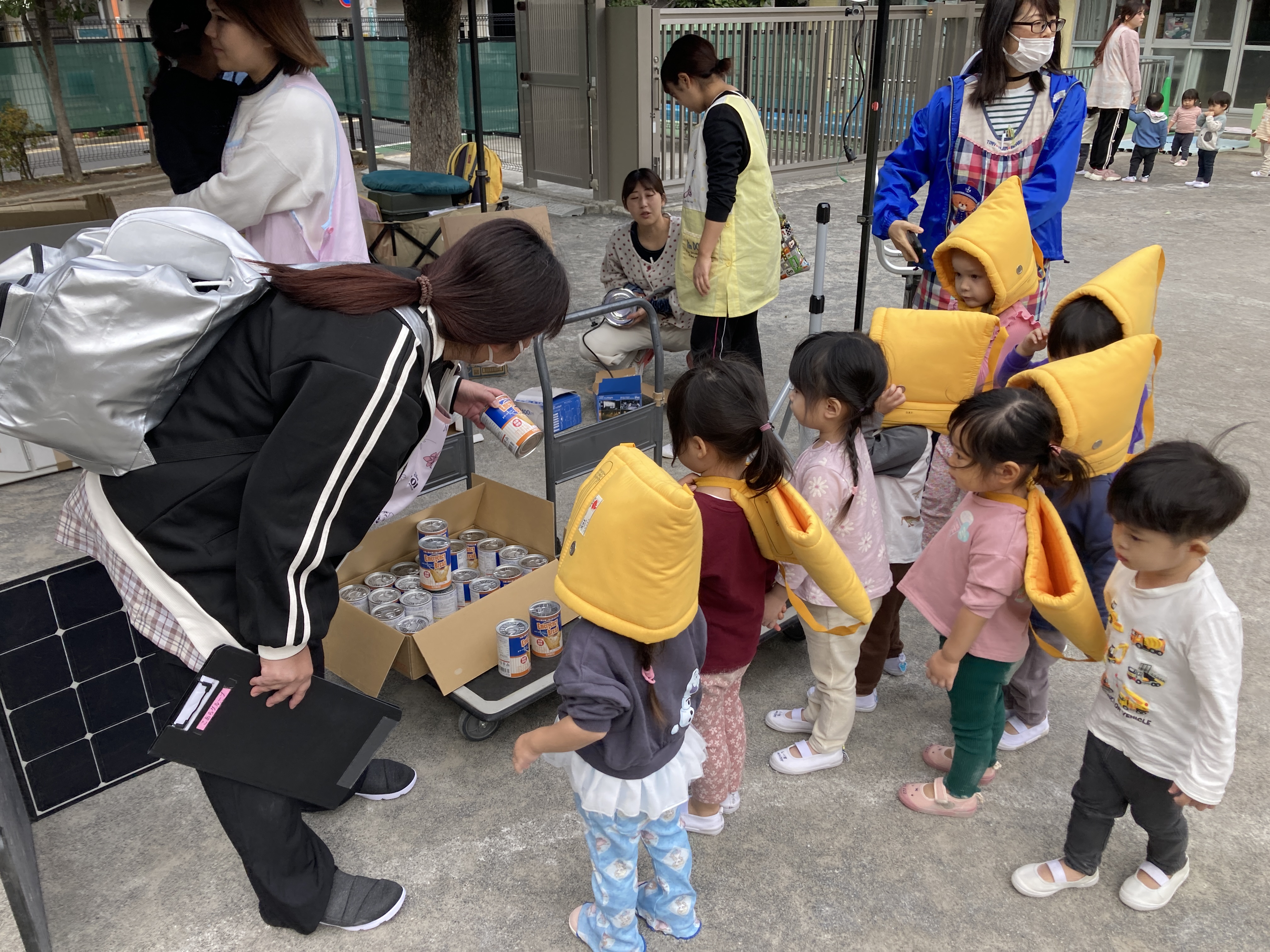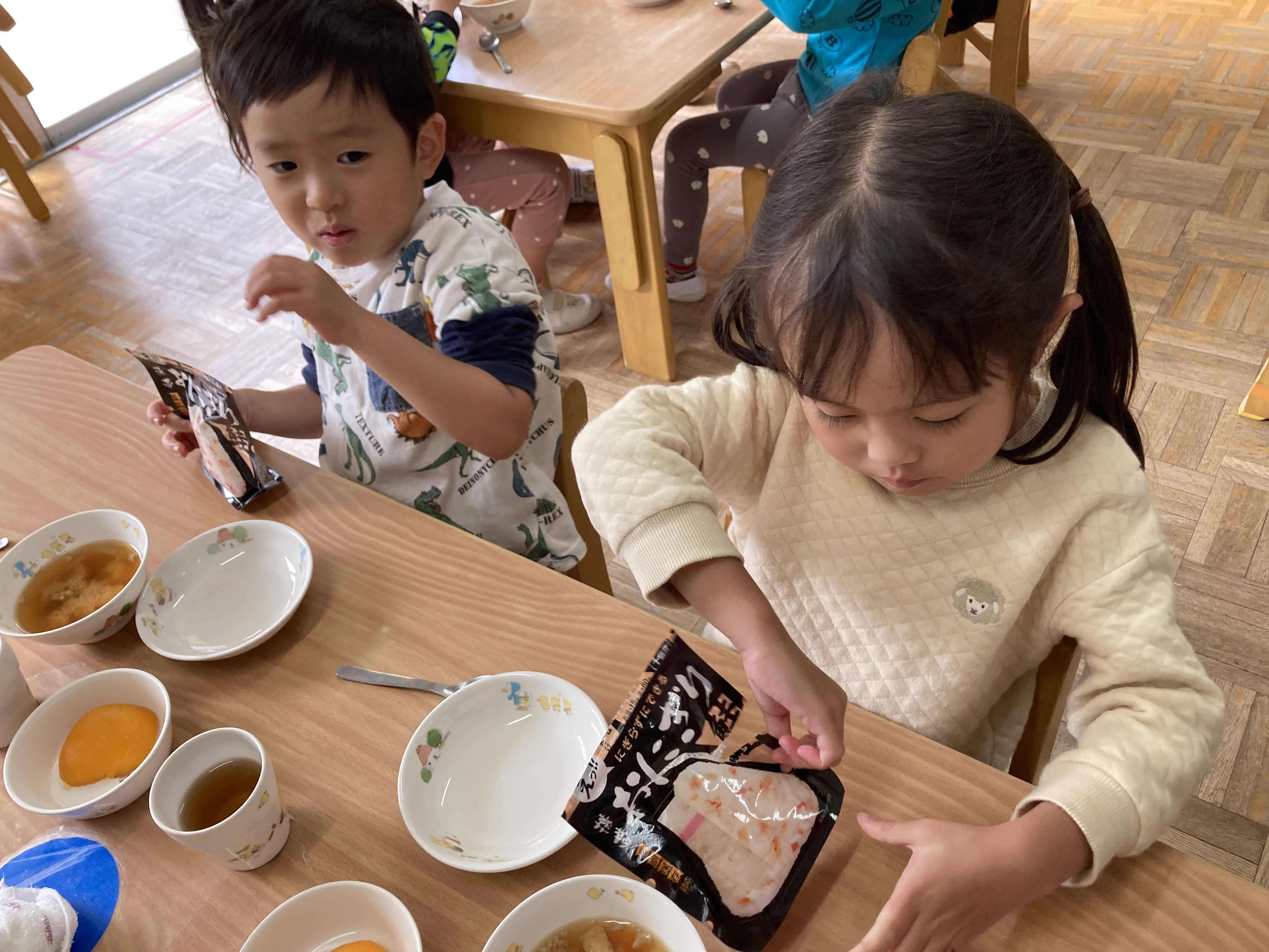 避難訓練後は、給食で職員含め全園児が非常食体験をしました!