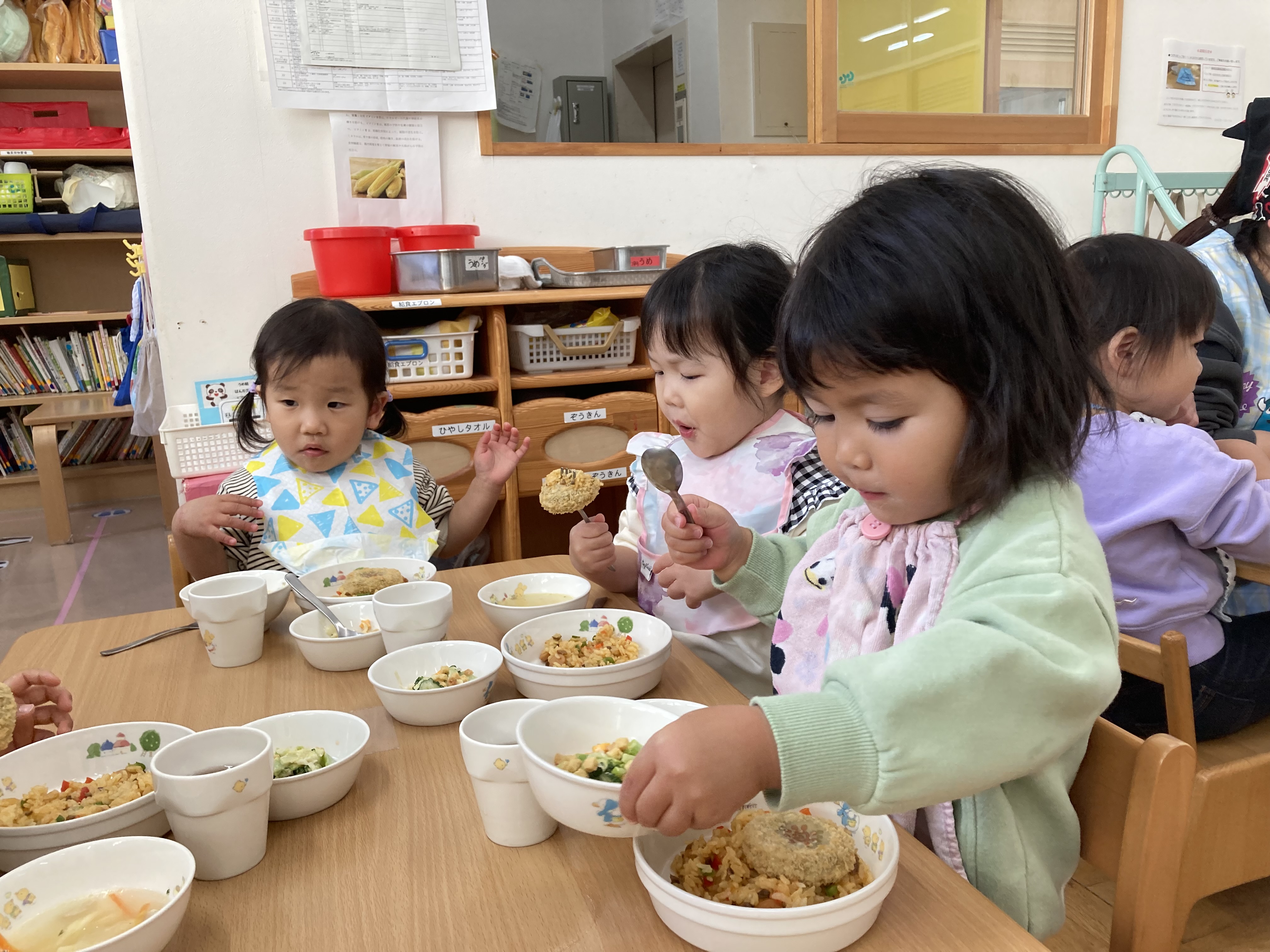 また、おなじみになってきたおひさまコロッケも「あ!保育園のマーク!」と発見!