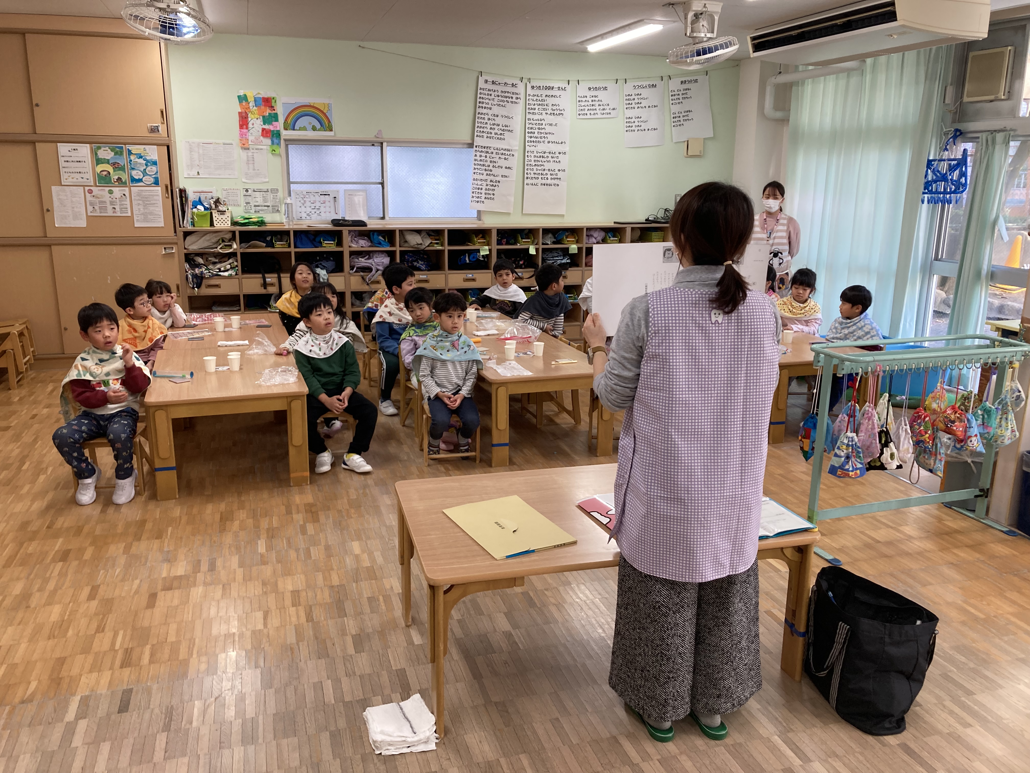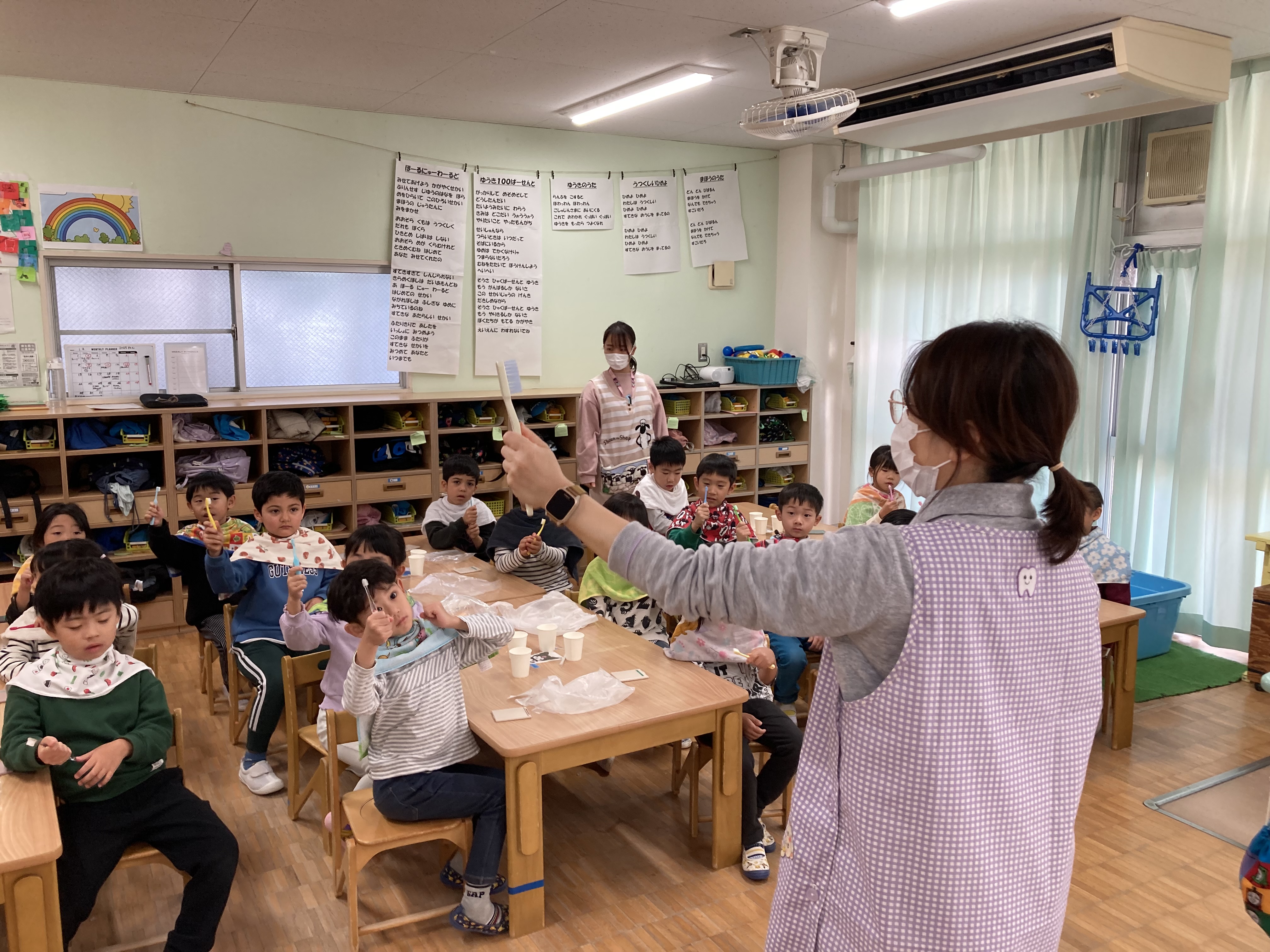 先日、歯科衛生士さんが保育園に来てくれて、歯磨き指導をしてくださいました☆