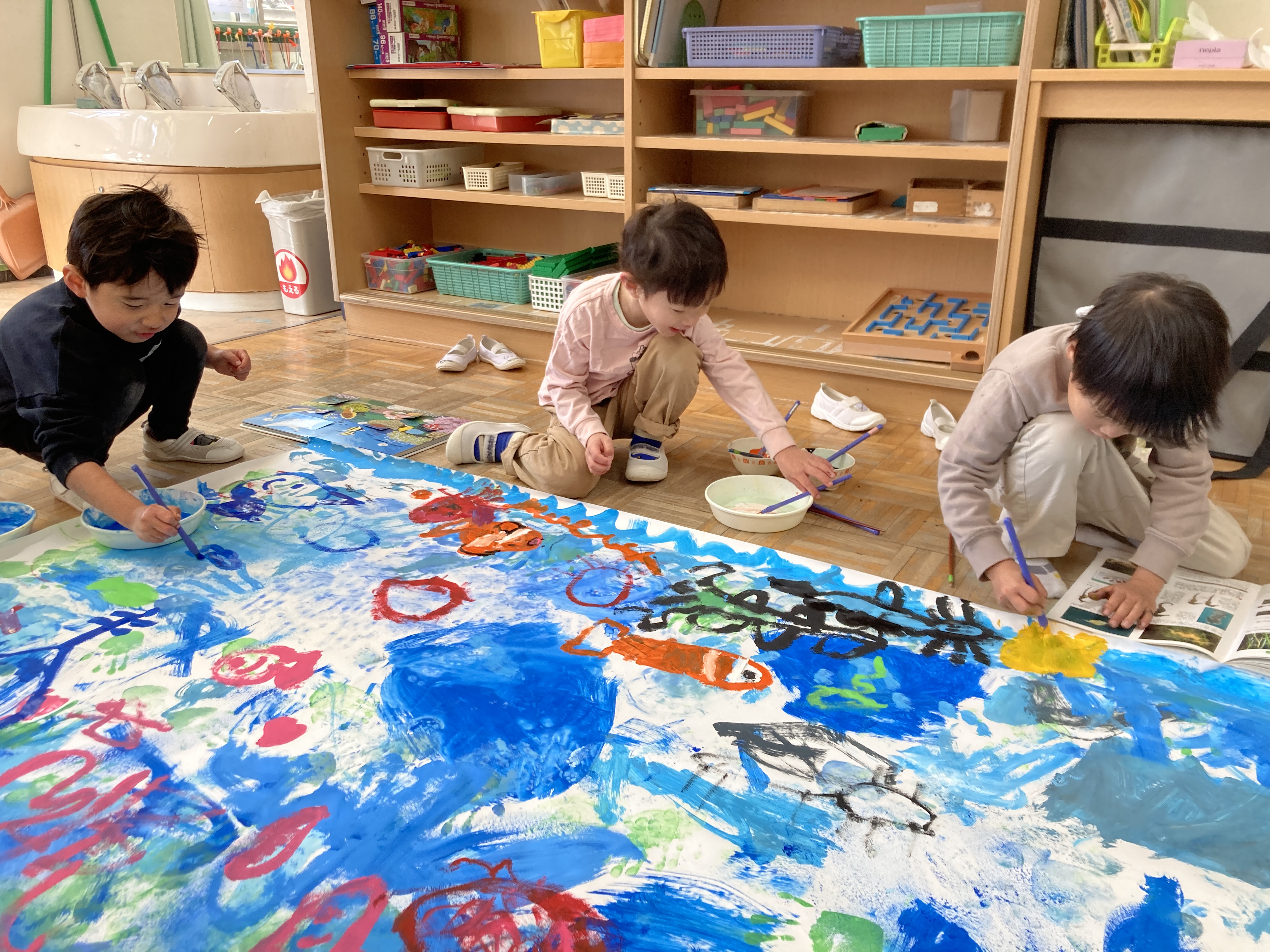 大喜びの子ども達!この喜びをぜひ園のみんなに感じてほしいと子ども達で水族館作りがスタート!