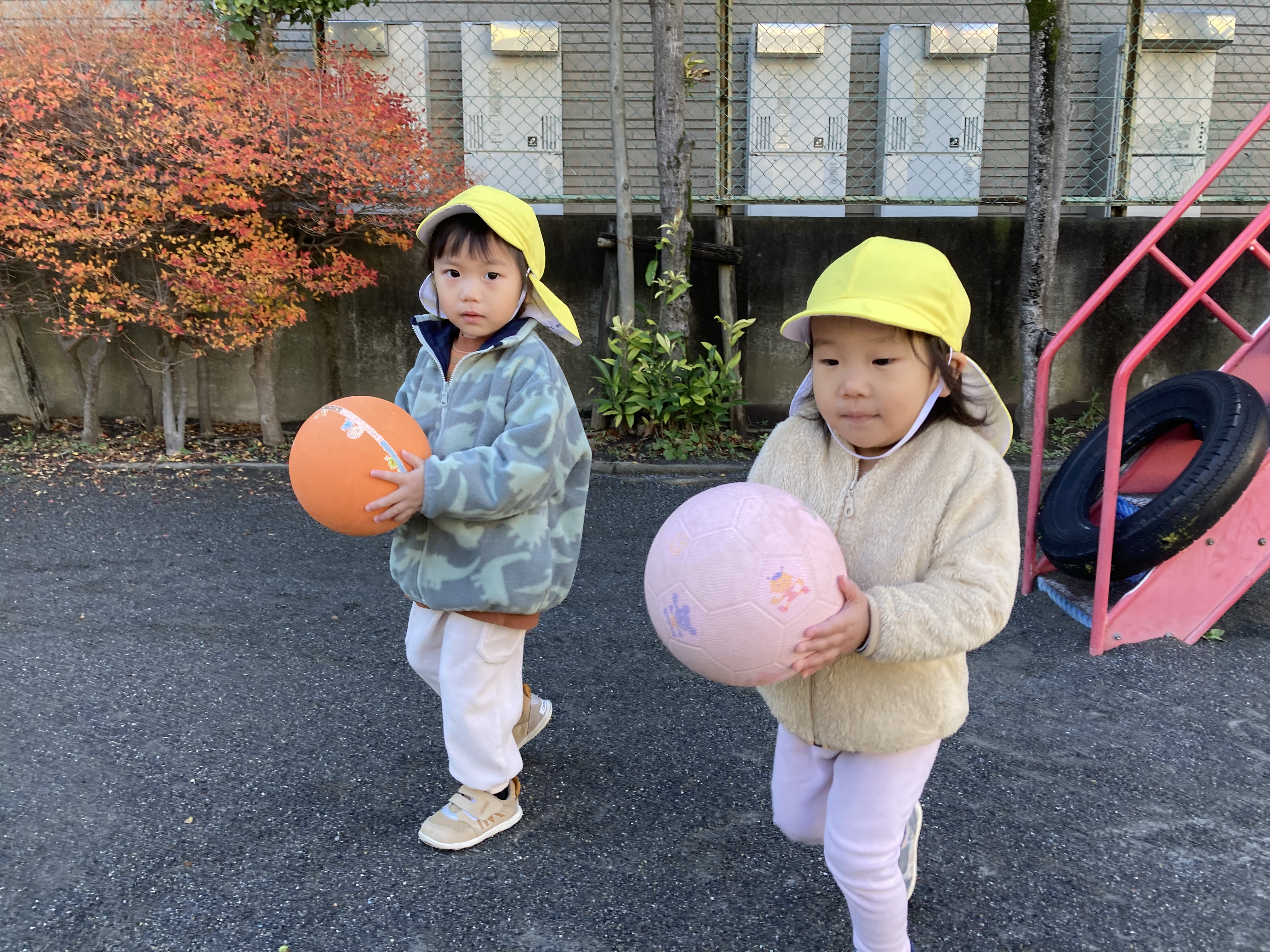 電車ごっこやバスごっこをしたり、地面に転がして遠くへ飛ばしてみたり、様々な遊び方で楽しんでいます♪