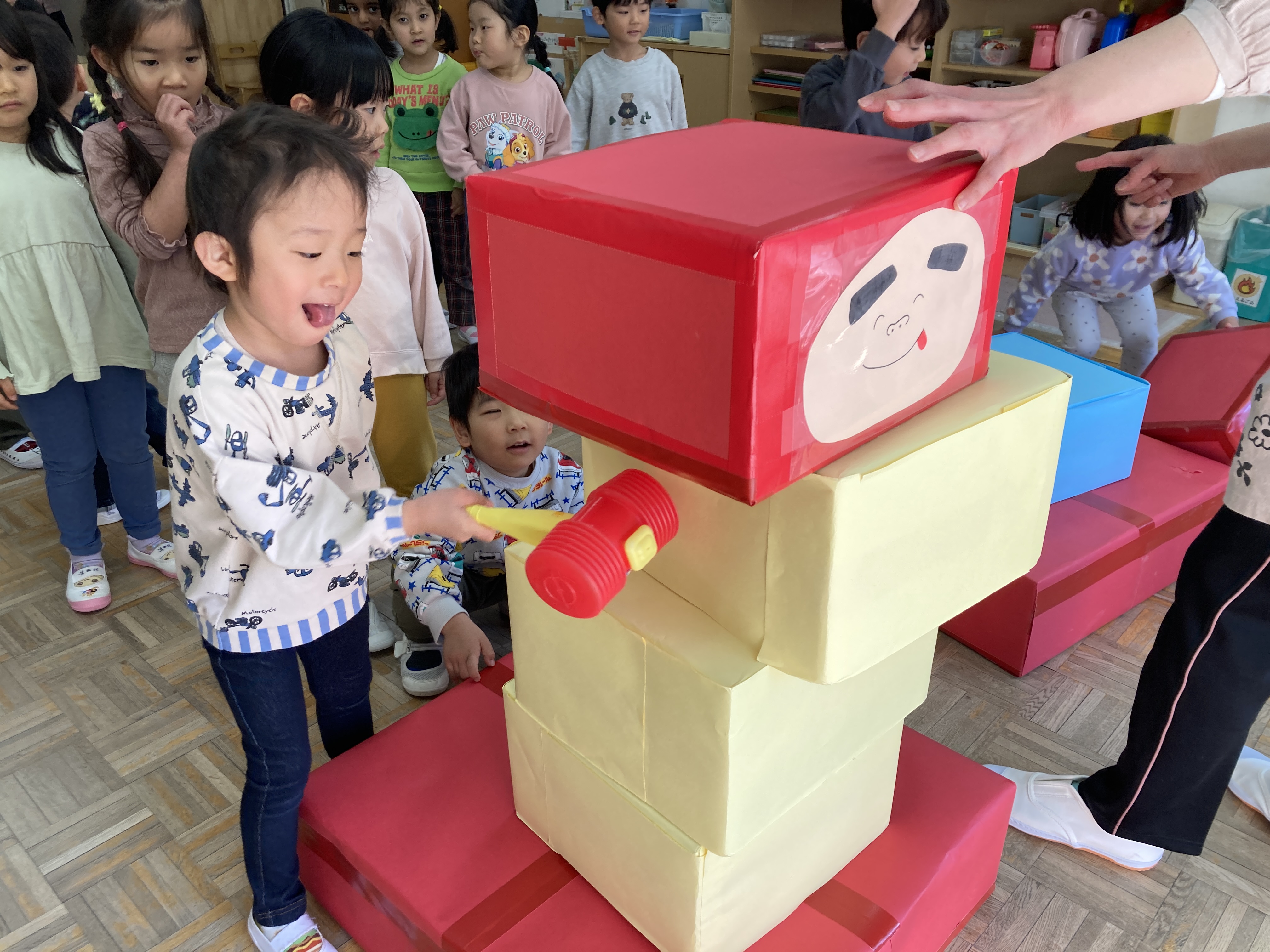 あけましておめでとうございます。 福笑いやだるま落としなど、正月ならではの遊びを楽しみました!