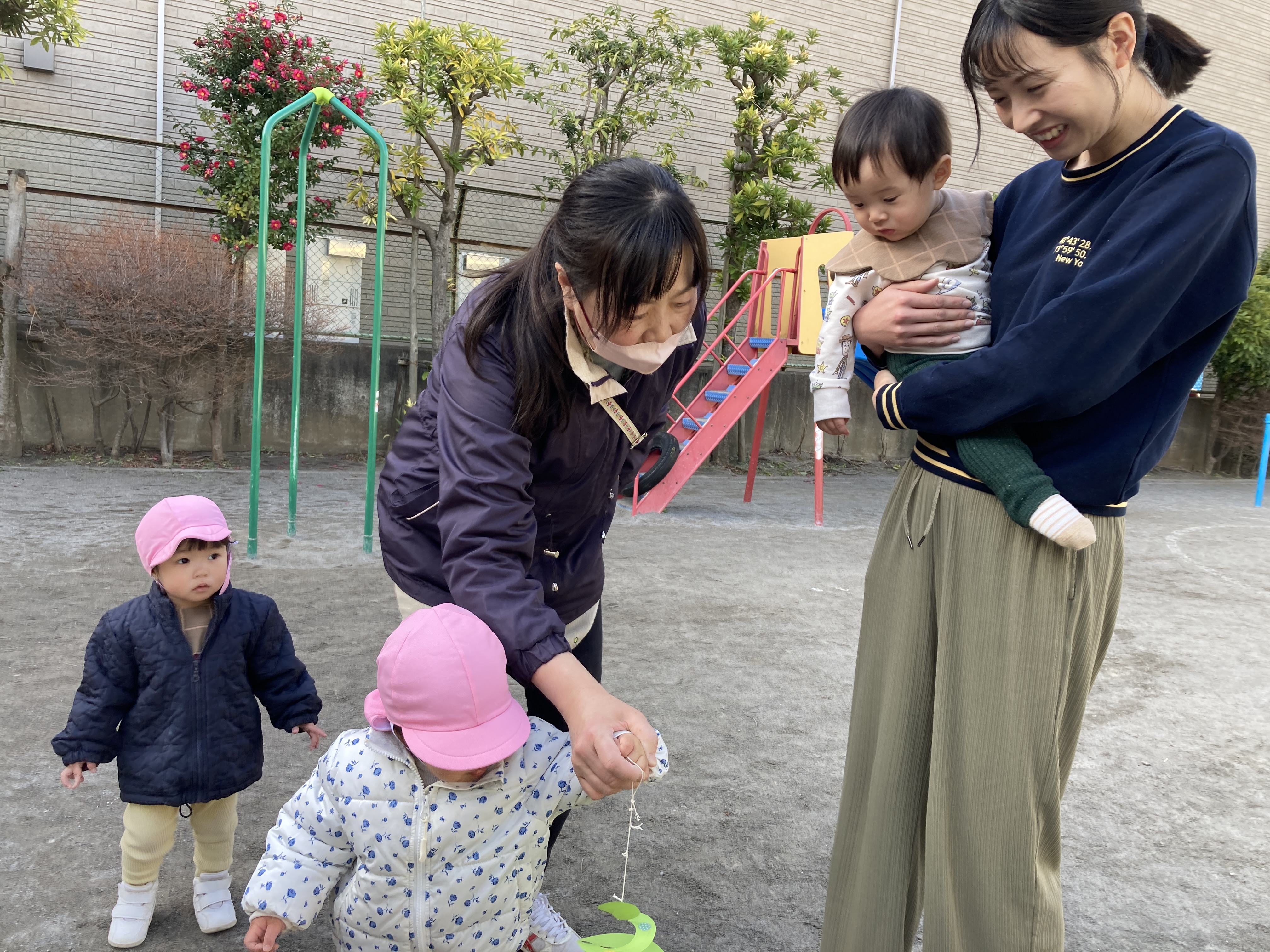園庭に出てくるくる凧で遊びました!