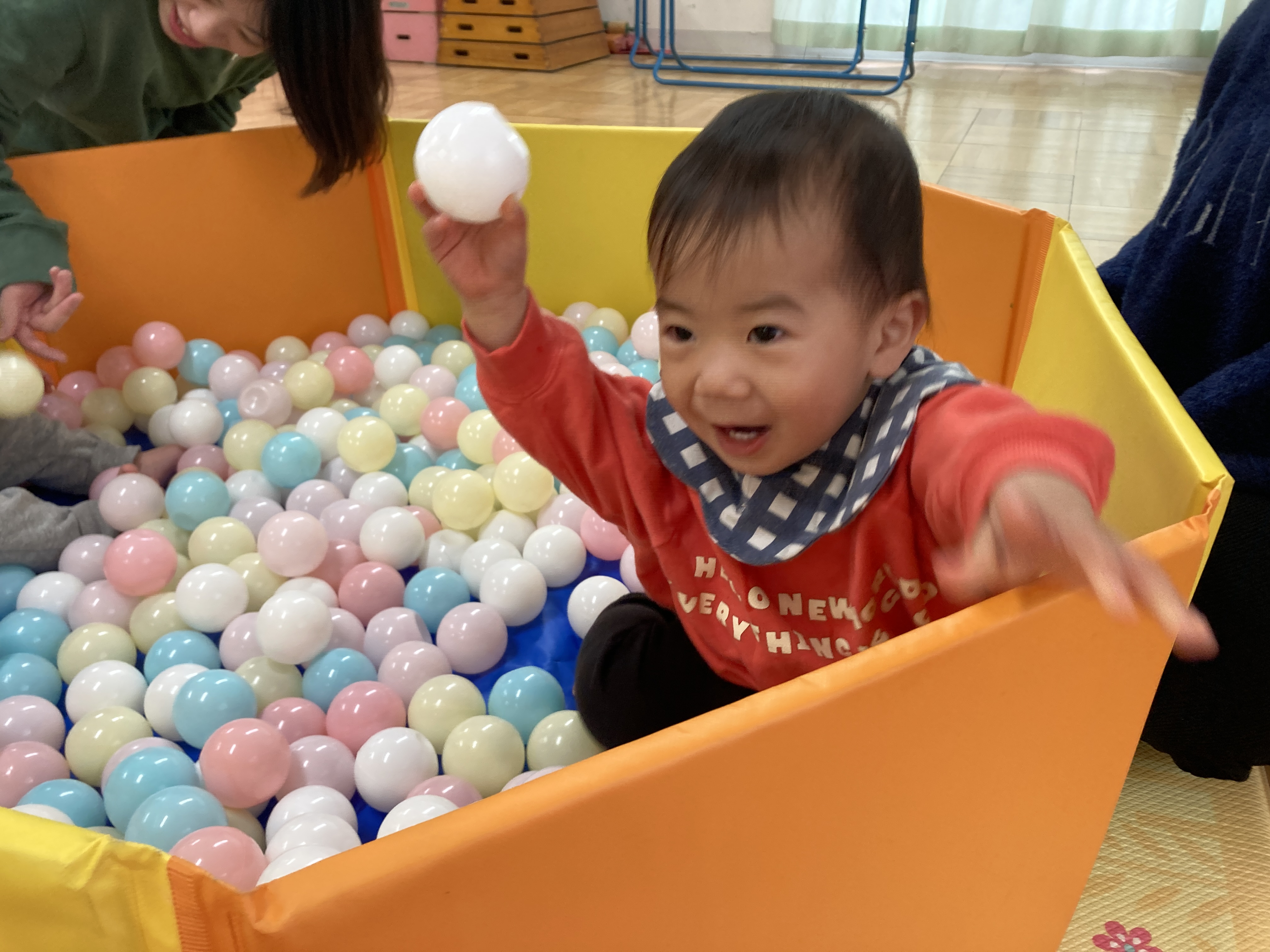 途中で1歳児もも組のお友だちも遊びに来てくれたので、一緒に遊ぶことが出来ました。