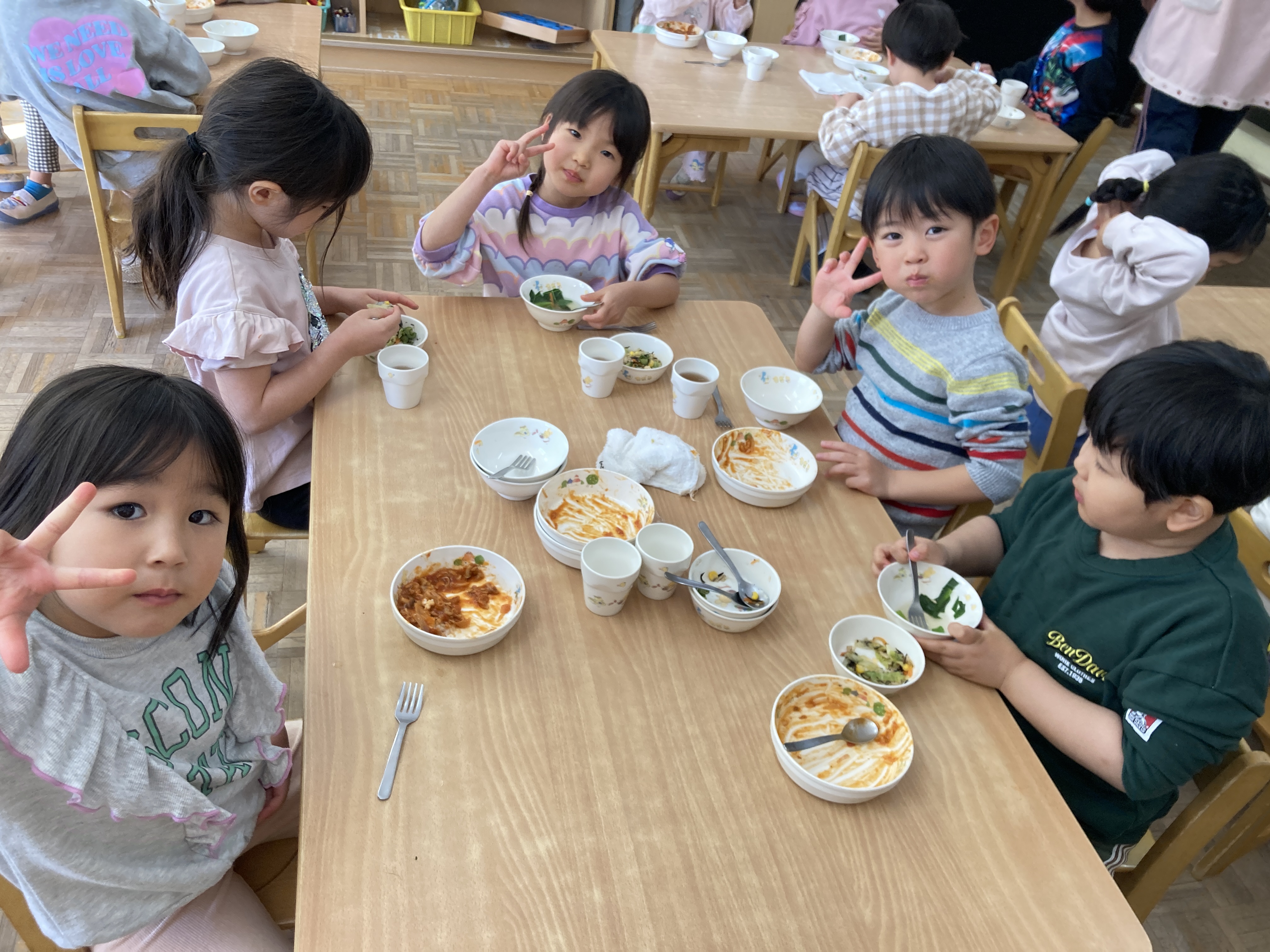 子ども達は「赤は肉と魚だね」「緑は野菜や果物だね」「黄色はパン・ごはん!え?!じゃがいもは野菜じゃないの?」と様々な意見が上がりました。