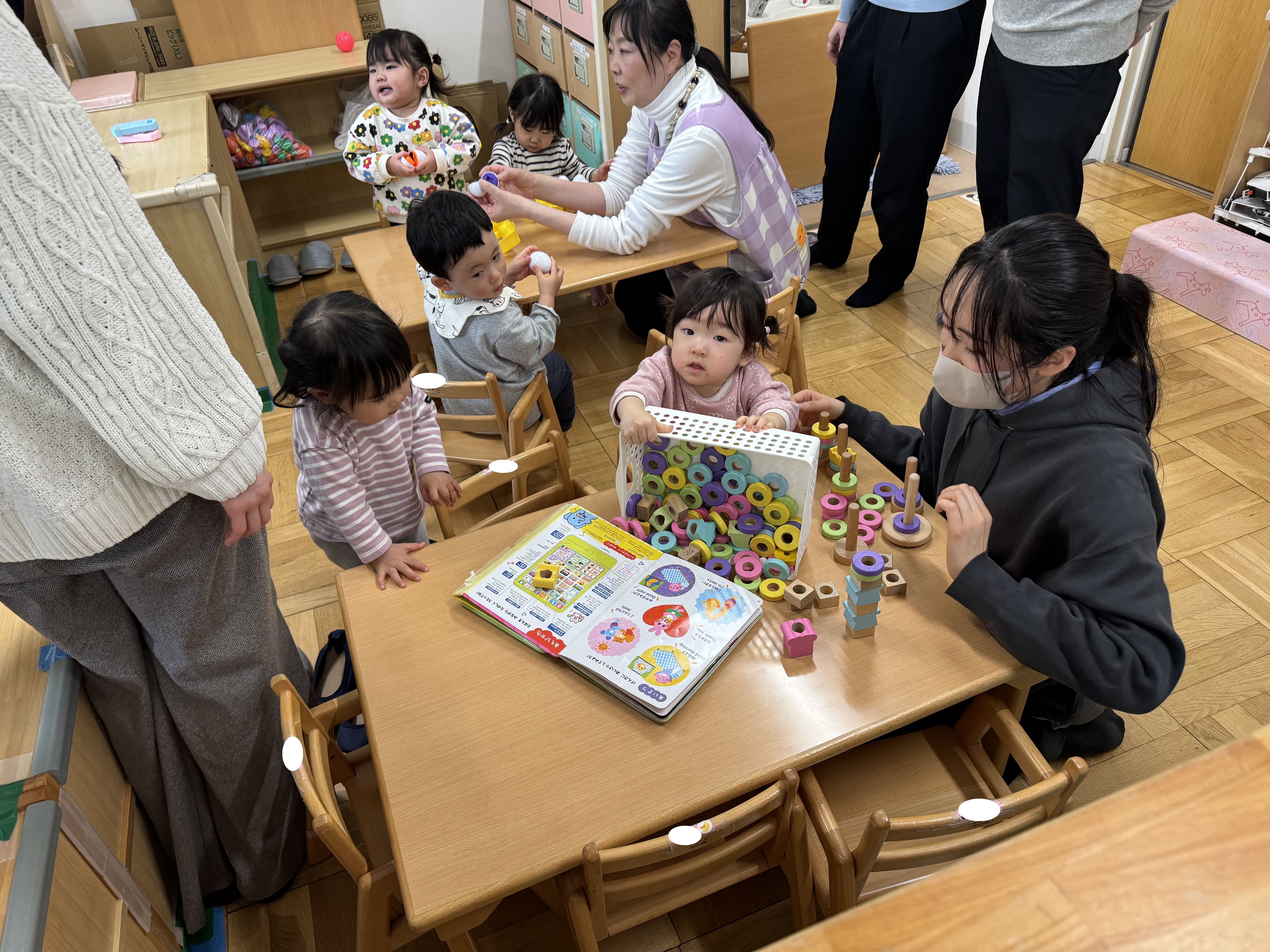 西葛西おひさま保育園では1歳児もも組・2歳児うめ組の一緒に遊ぼうねの会が2日間に分けて開催されました☆