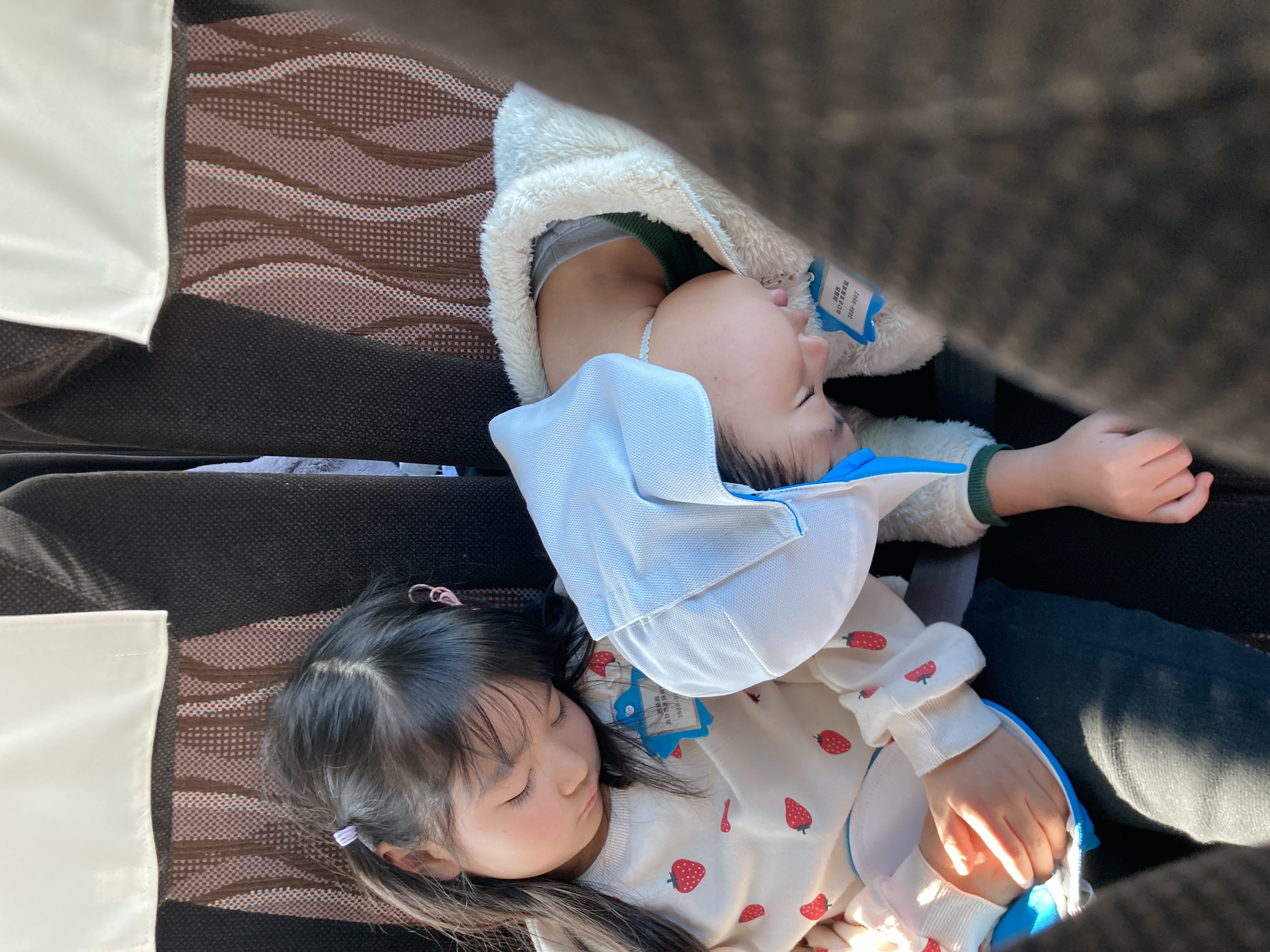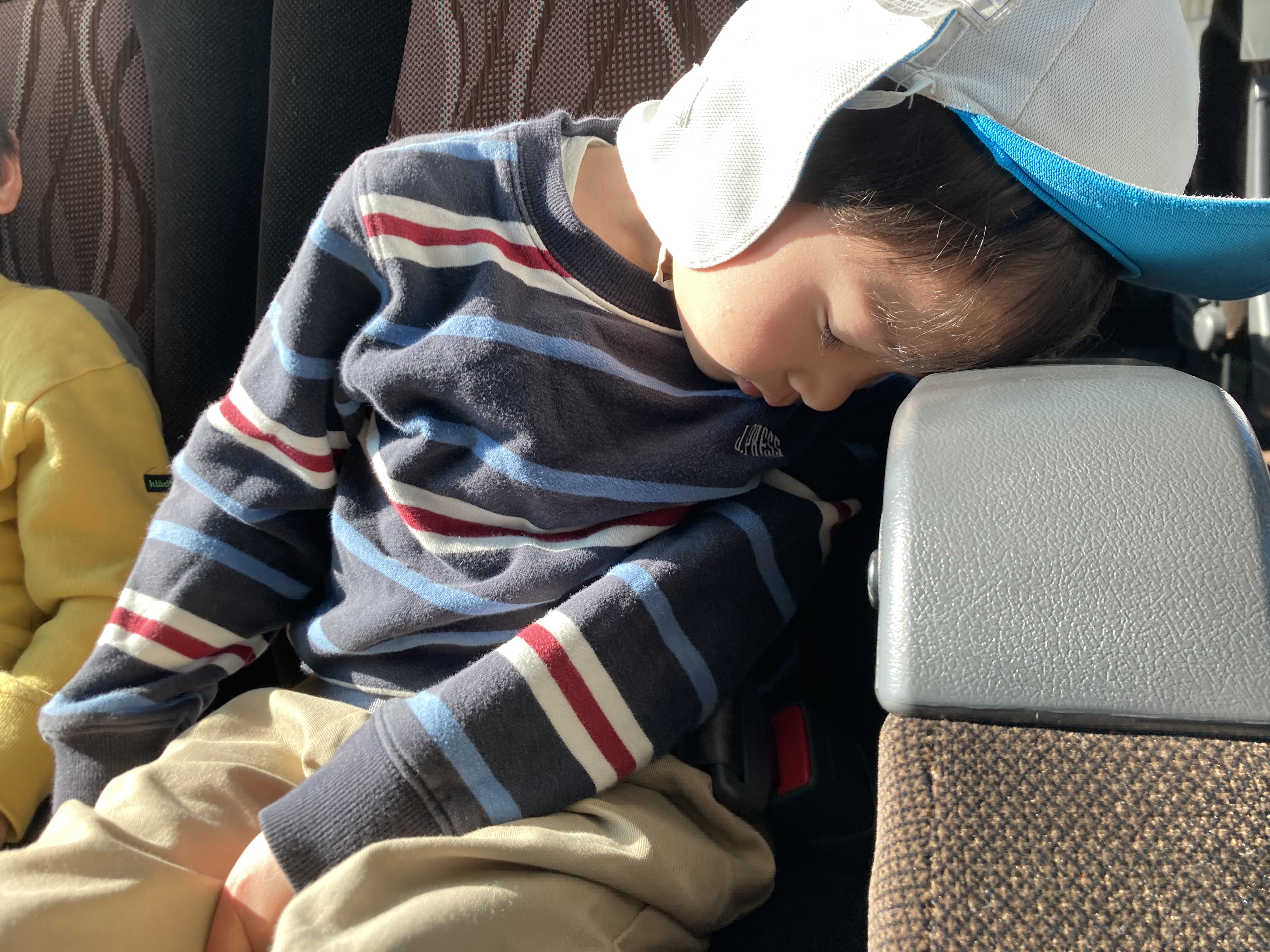 たくさん遊んだので帰りのバスはすっかり夢の中にいる子も…