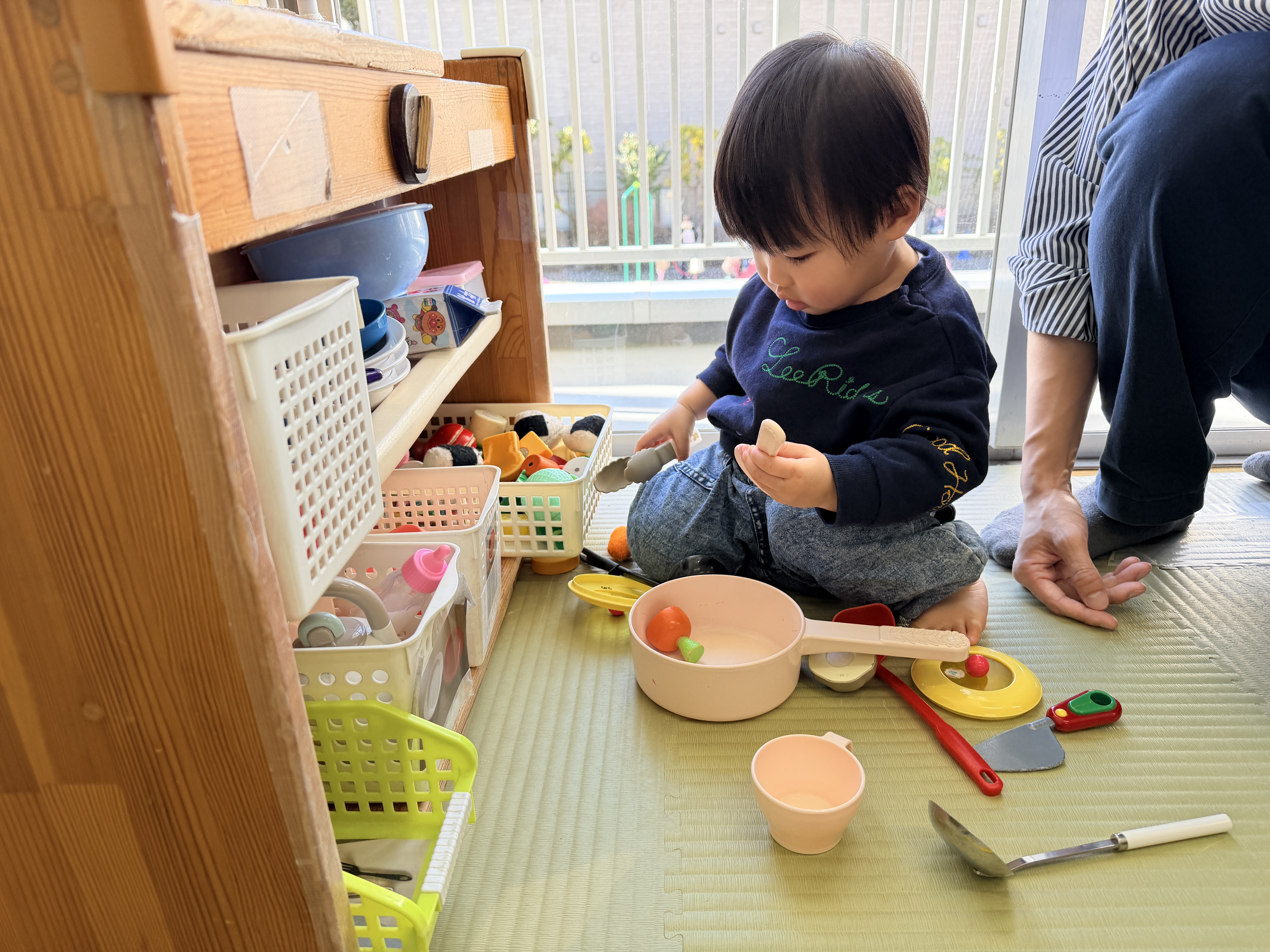 家にはないおもちゃに遊び方を模索したり、大好きなままごとでお料理を始めたりと、いろいろな姿を見せてくれました。
