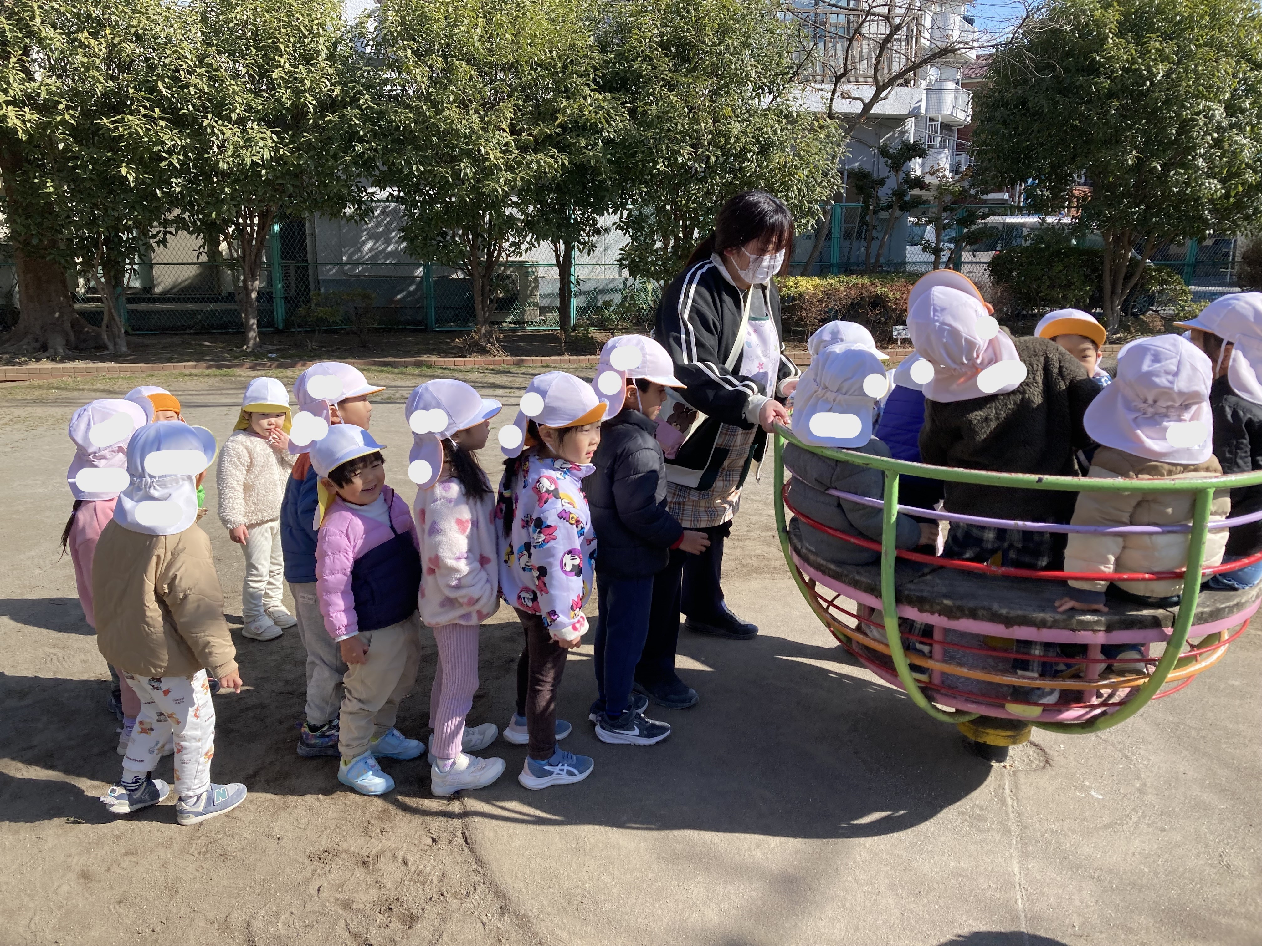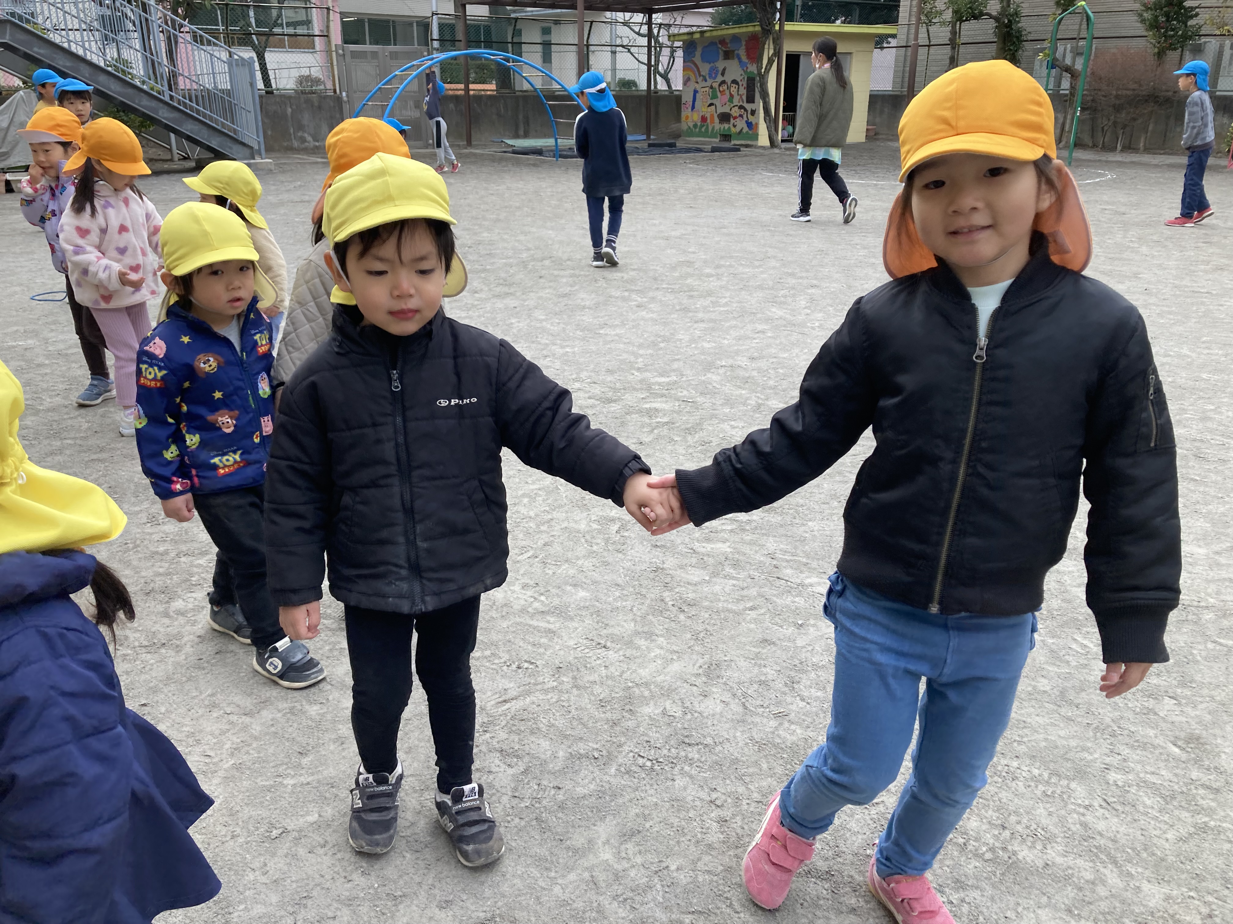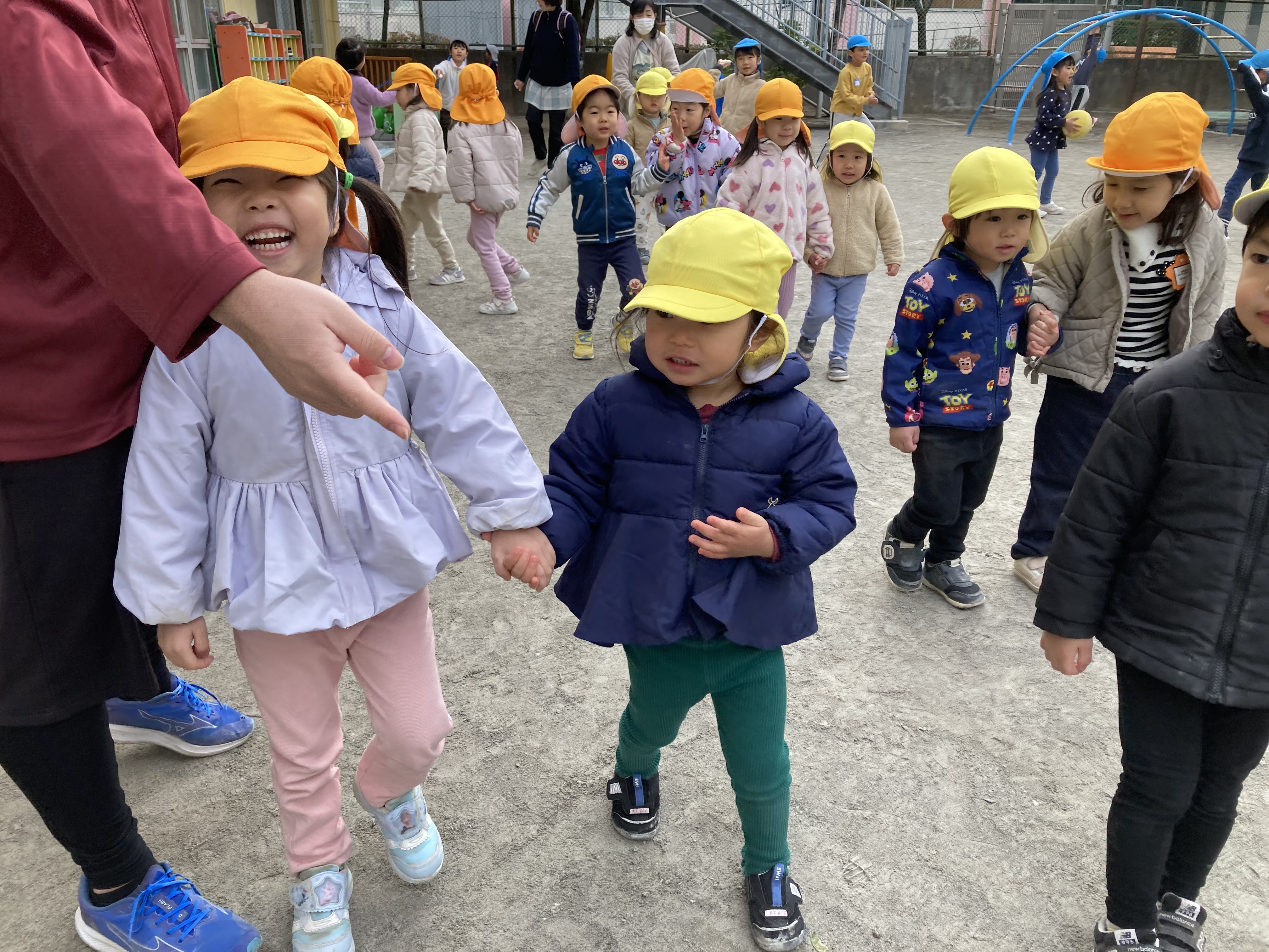 まずは1つ上の3歳児クラス、くるみ組と一緒に『馬頭橋児童遊園』へ。