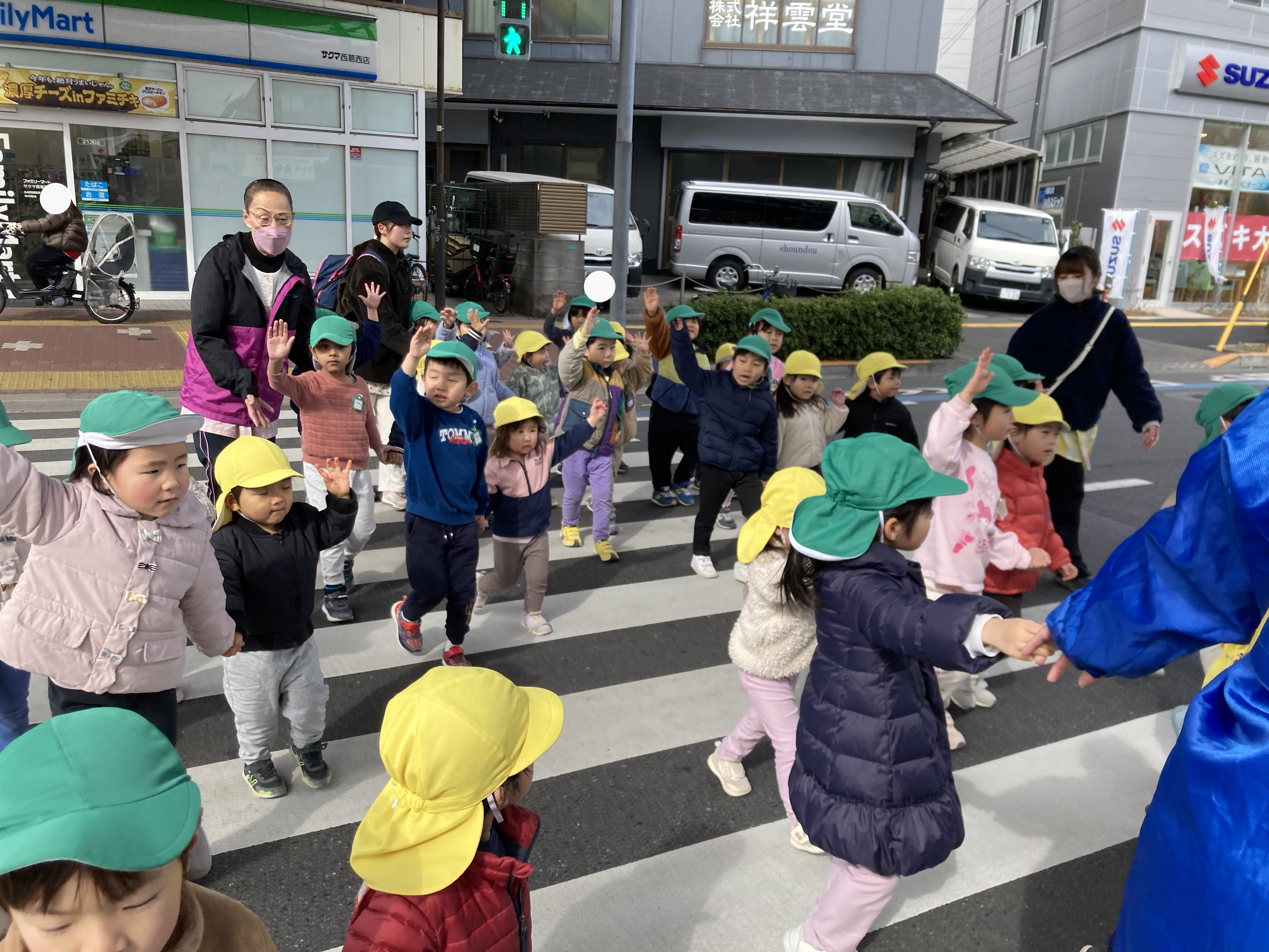 信号待ちでもしっかりと手を繋いでくれる、優しいお兄さんお姉さん!頼もしいですね。