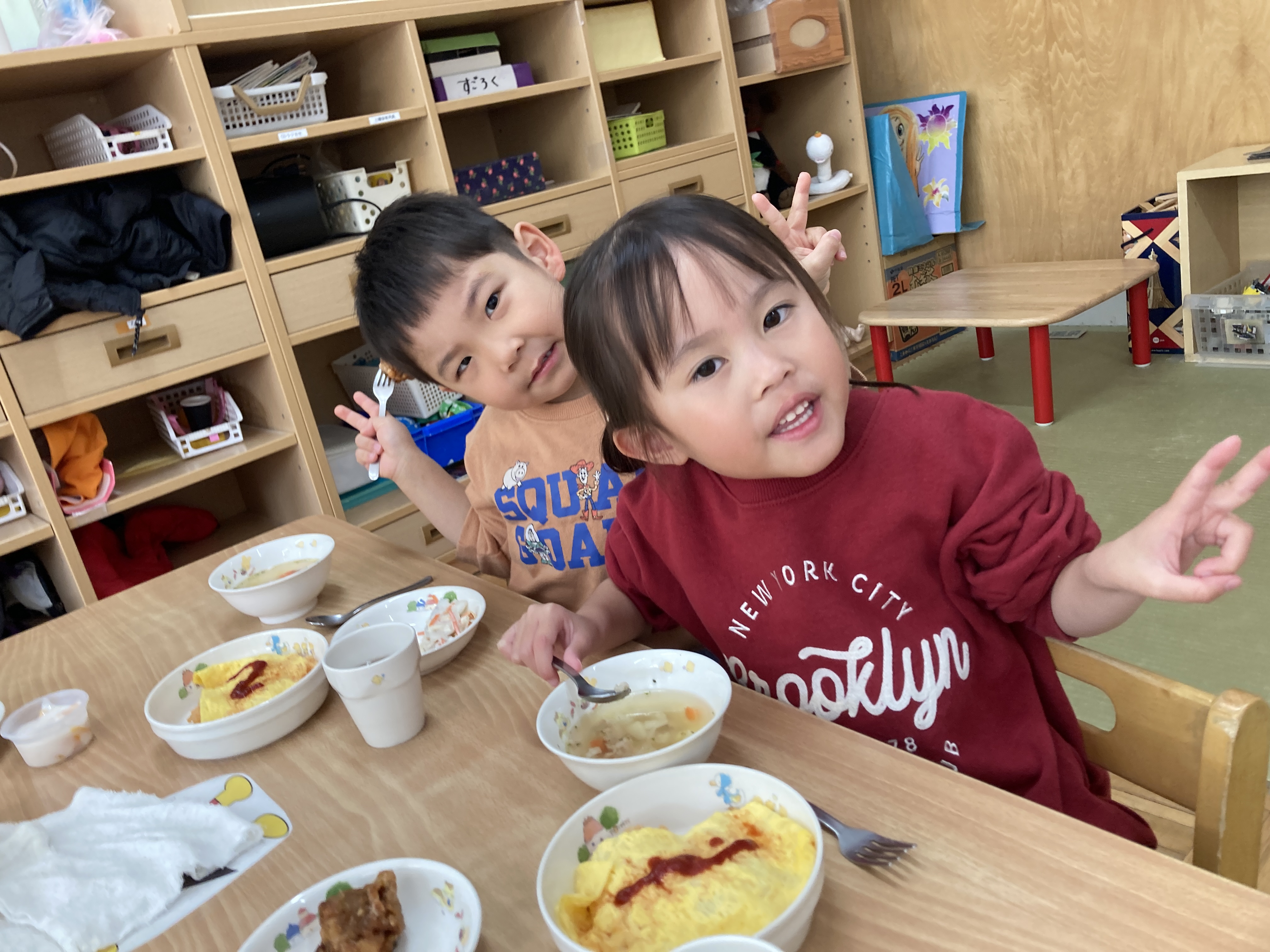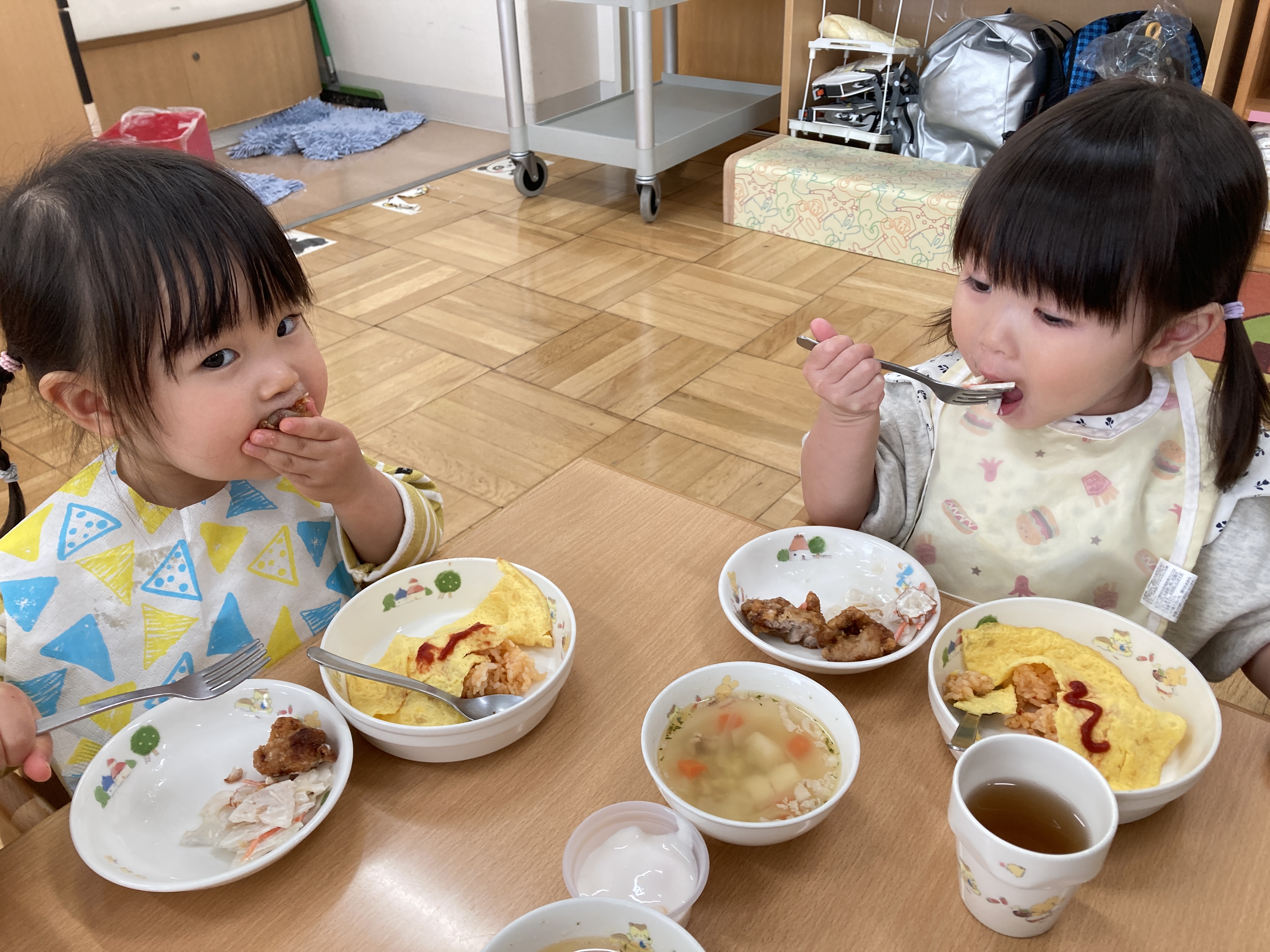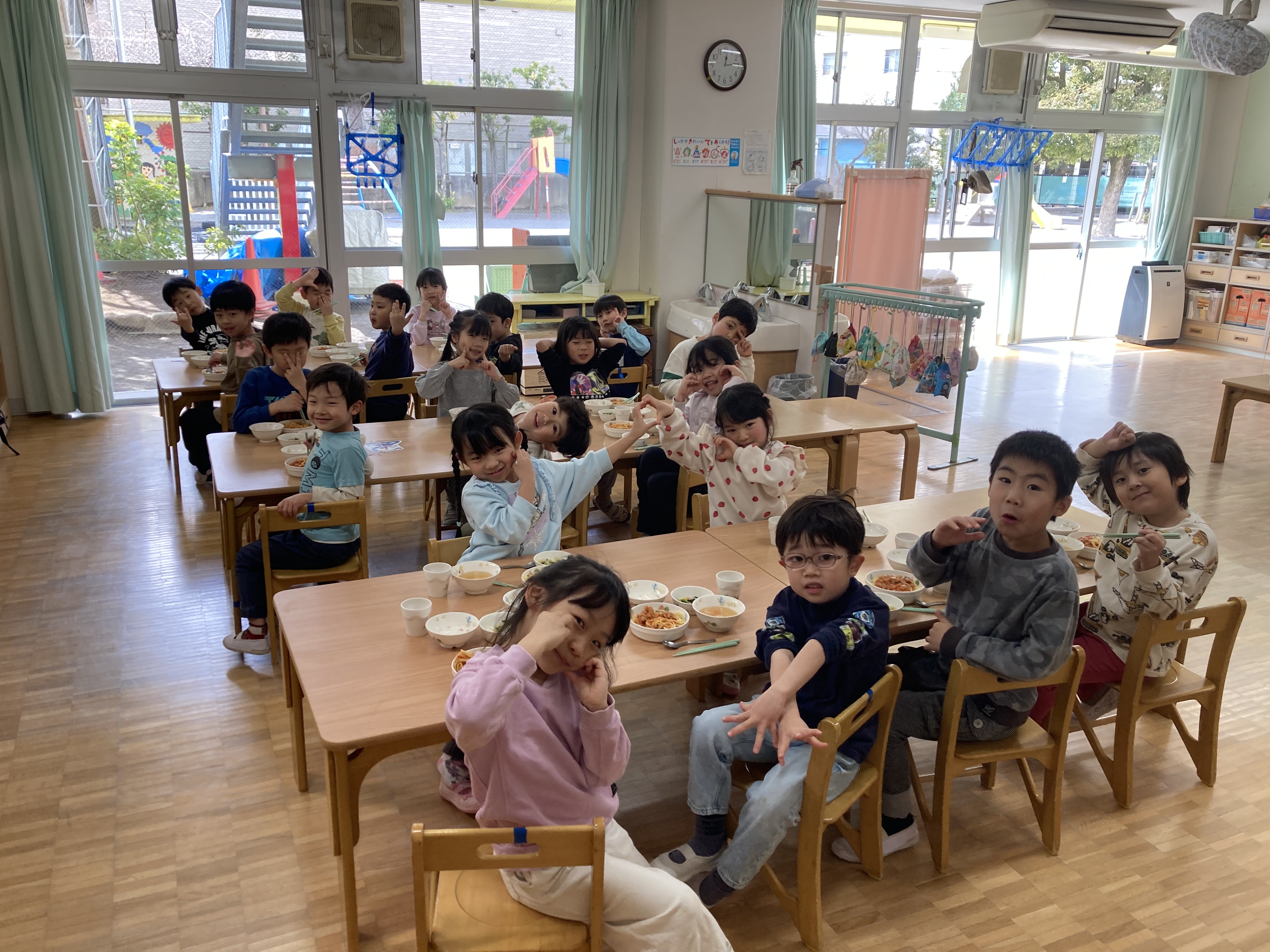 チキンとトマトのパスタは今まであまり出てこなかったメニューなので、子ども達は「おいしそー!!」と嬉しい反応を見せてくれました。