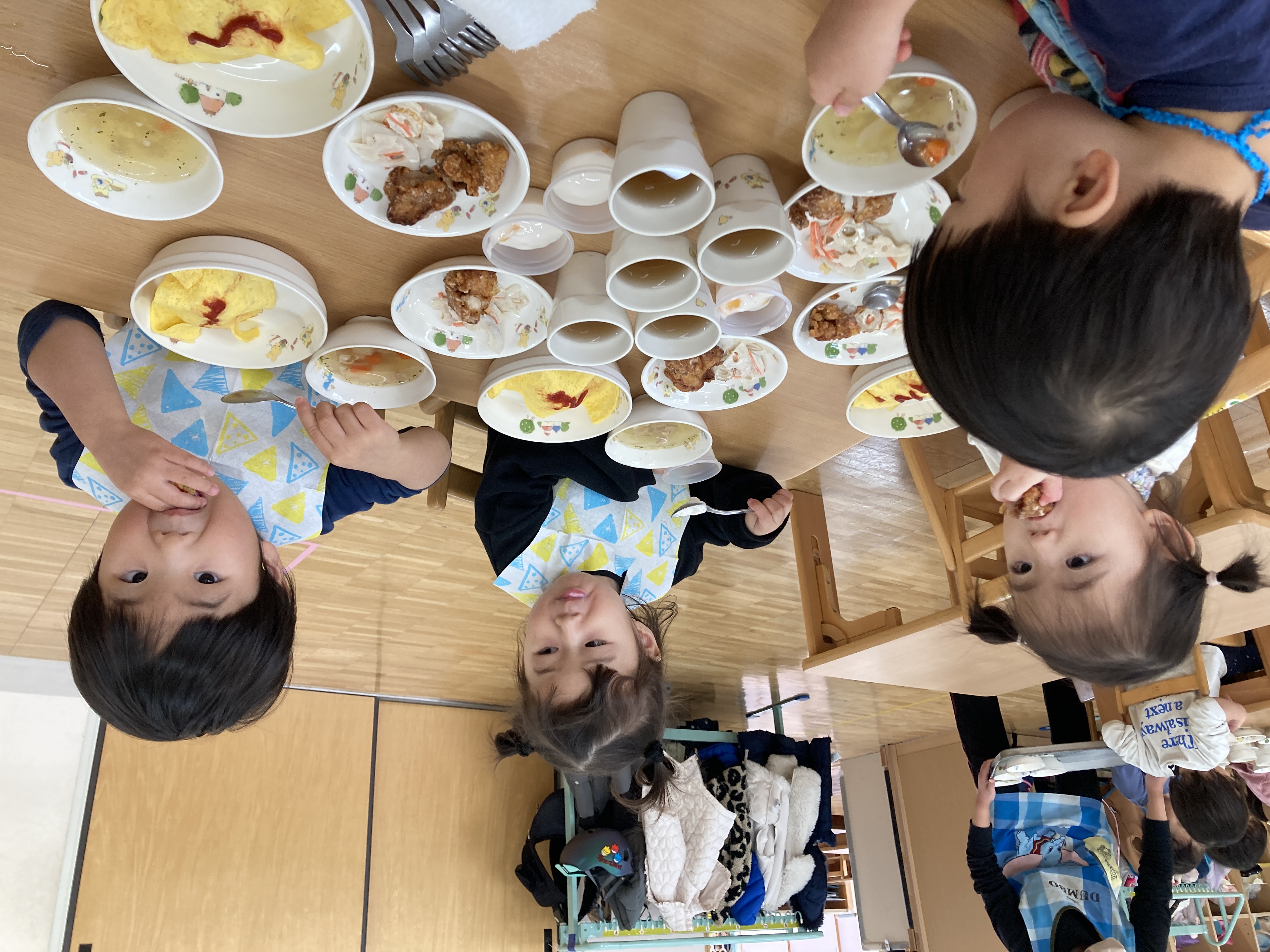 ABCスープはアルファベットの形のマカロニが沢山入っており、幼児クラスではアルファベットが何かを言える子も・・・!ますます食事が楽しくなりますね。