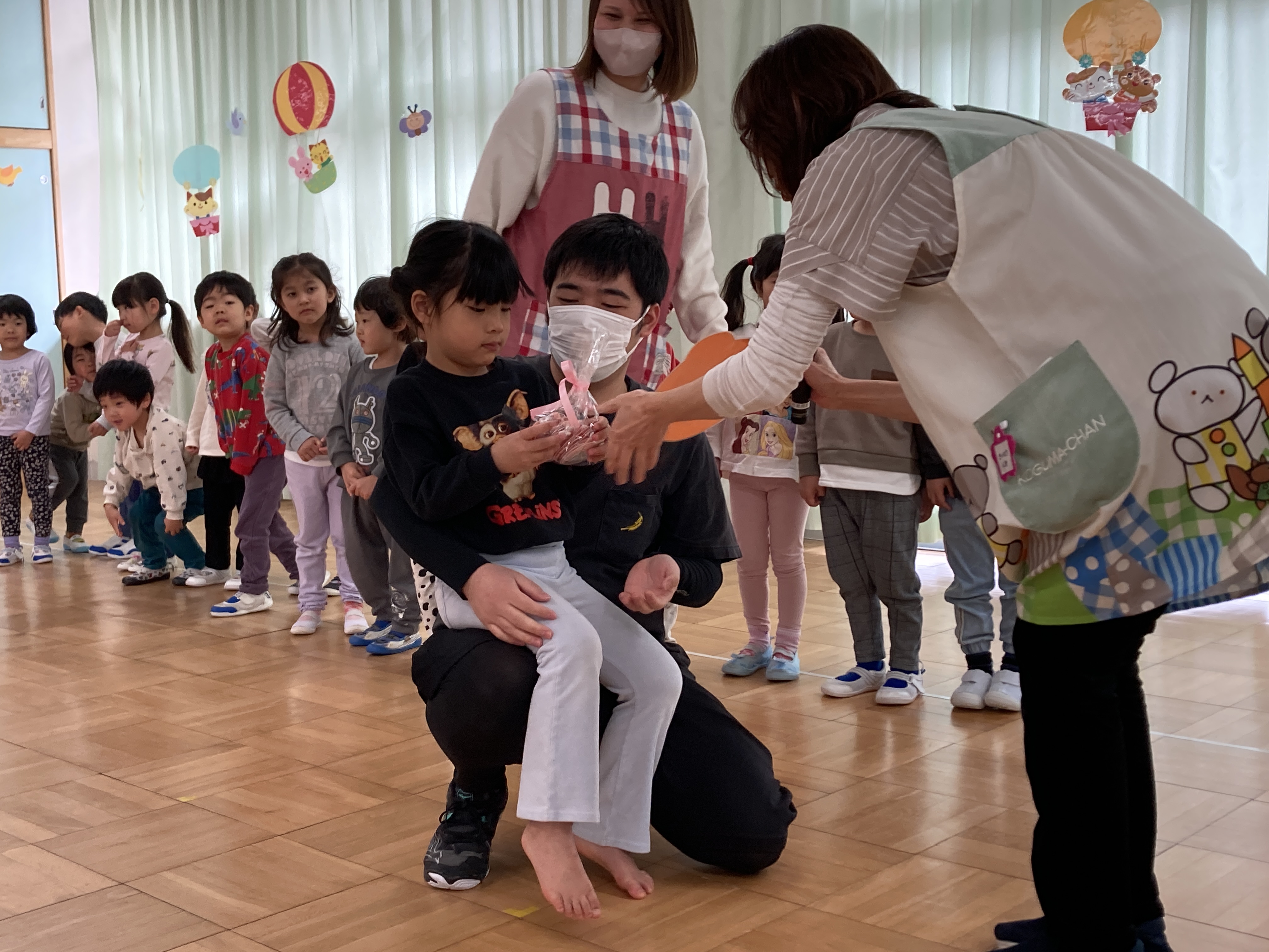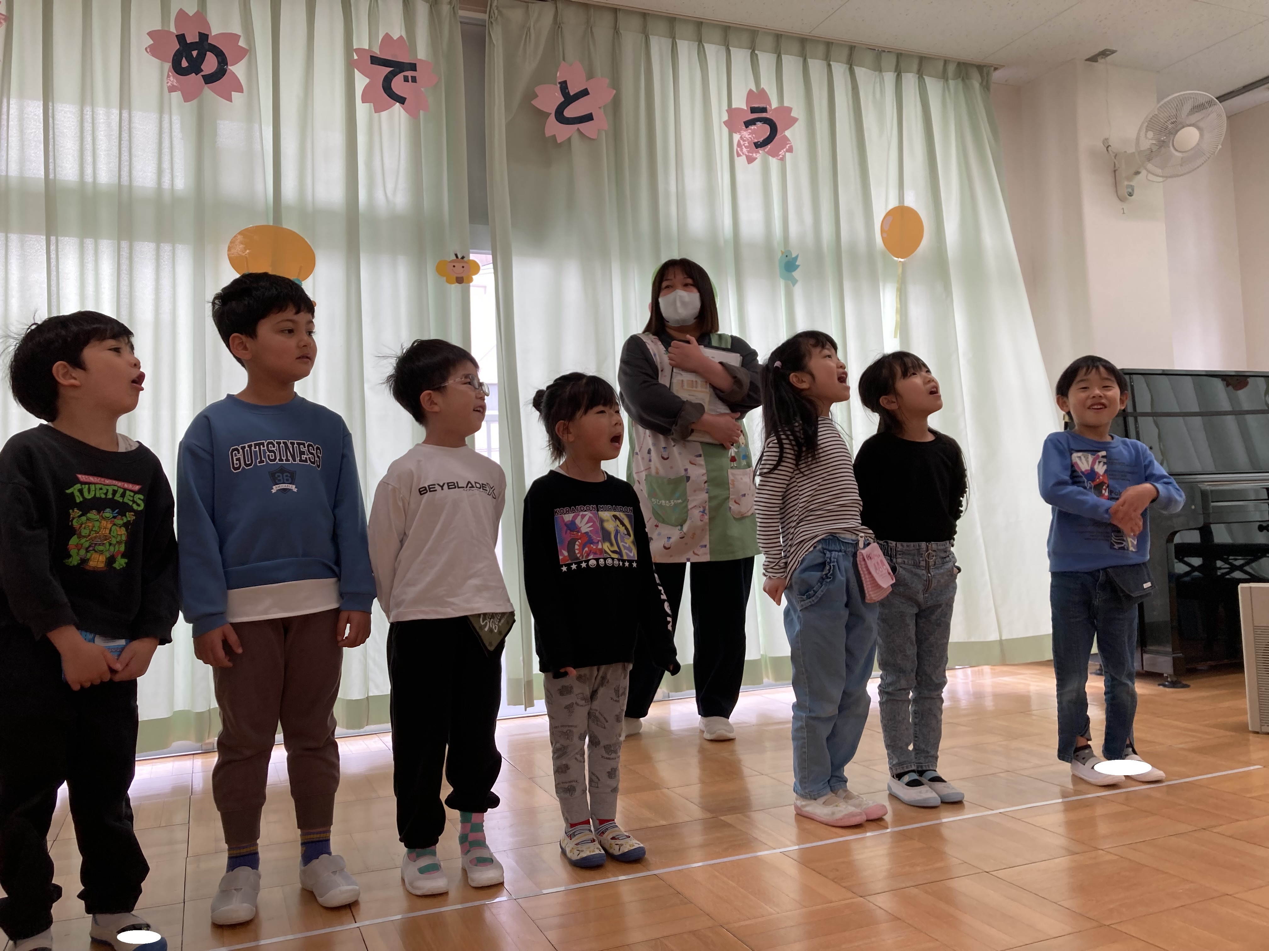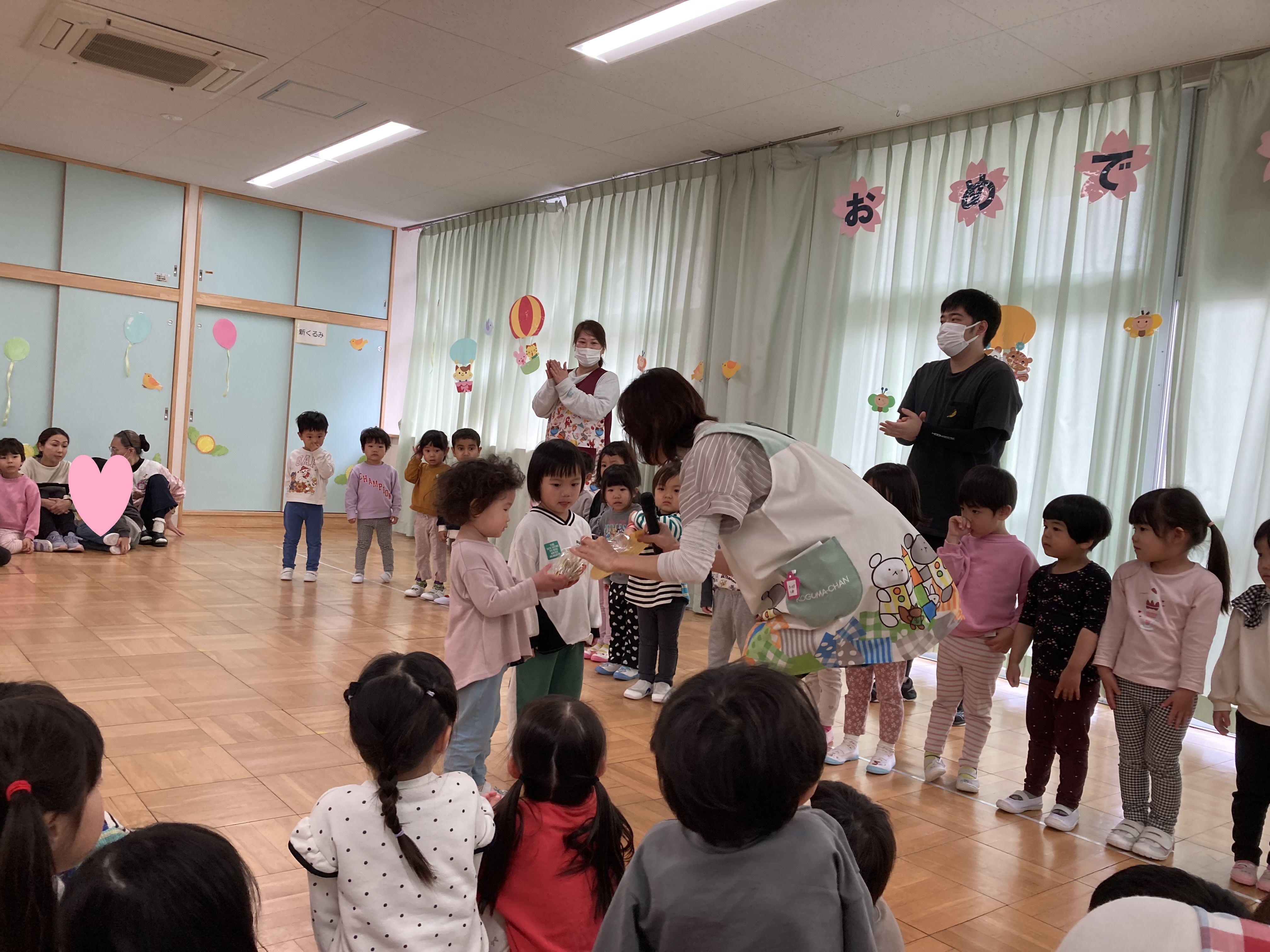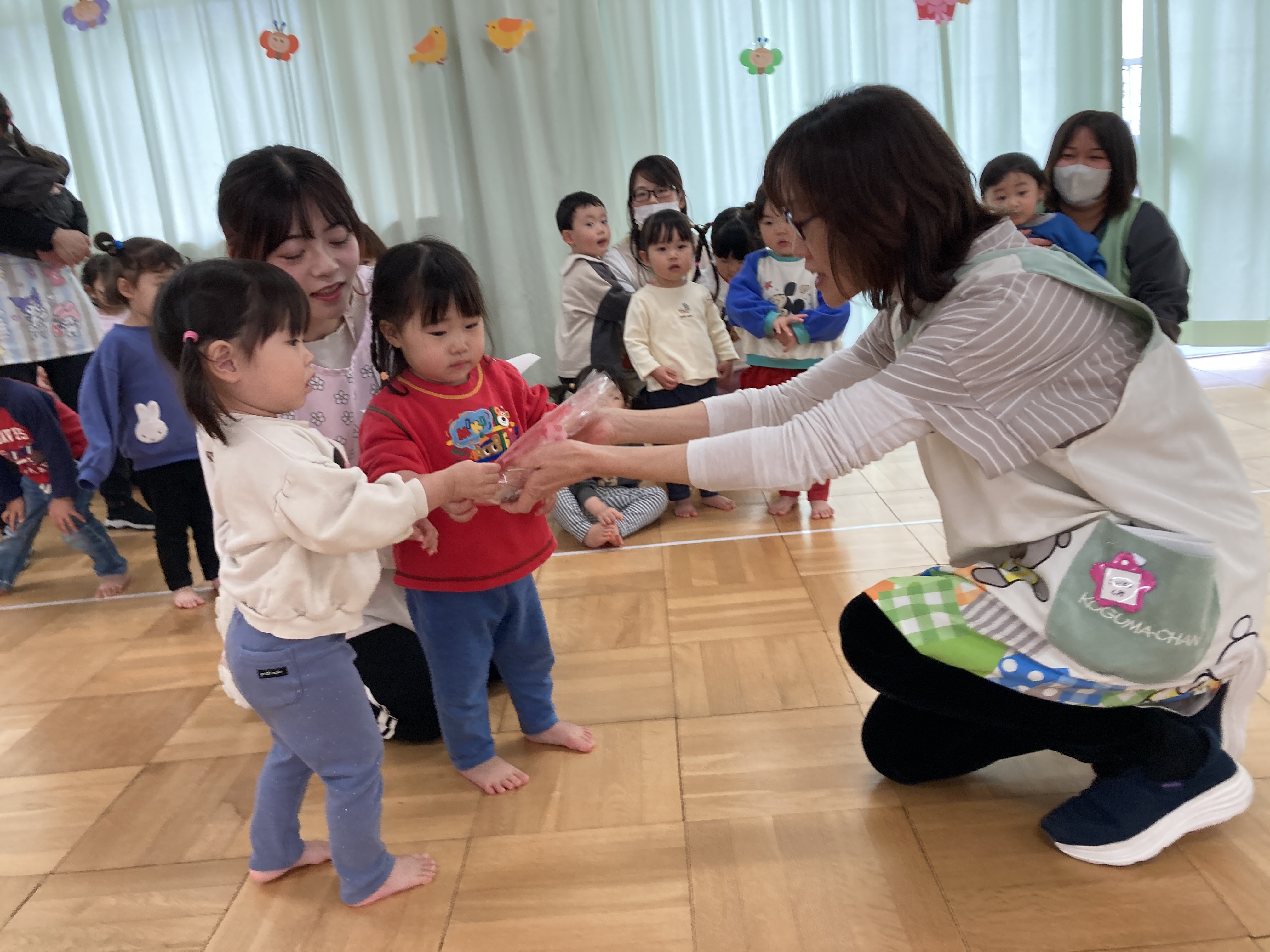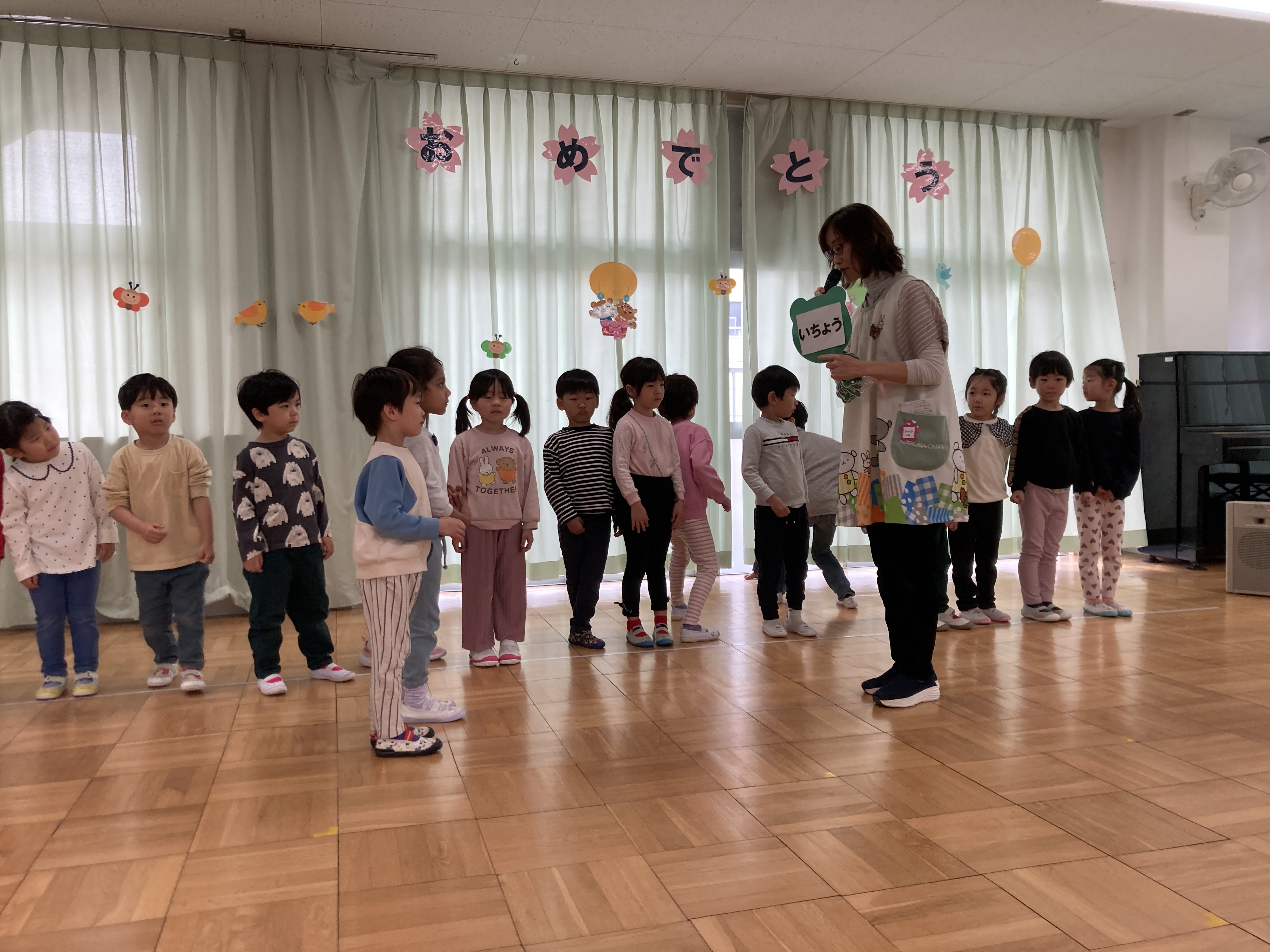 お名前を呼ばれるとドキドキしながら前に出たり、恥ずかしくなって先生と一緒に行ったり…