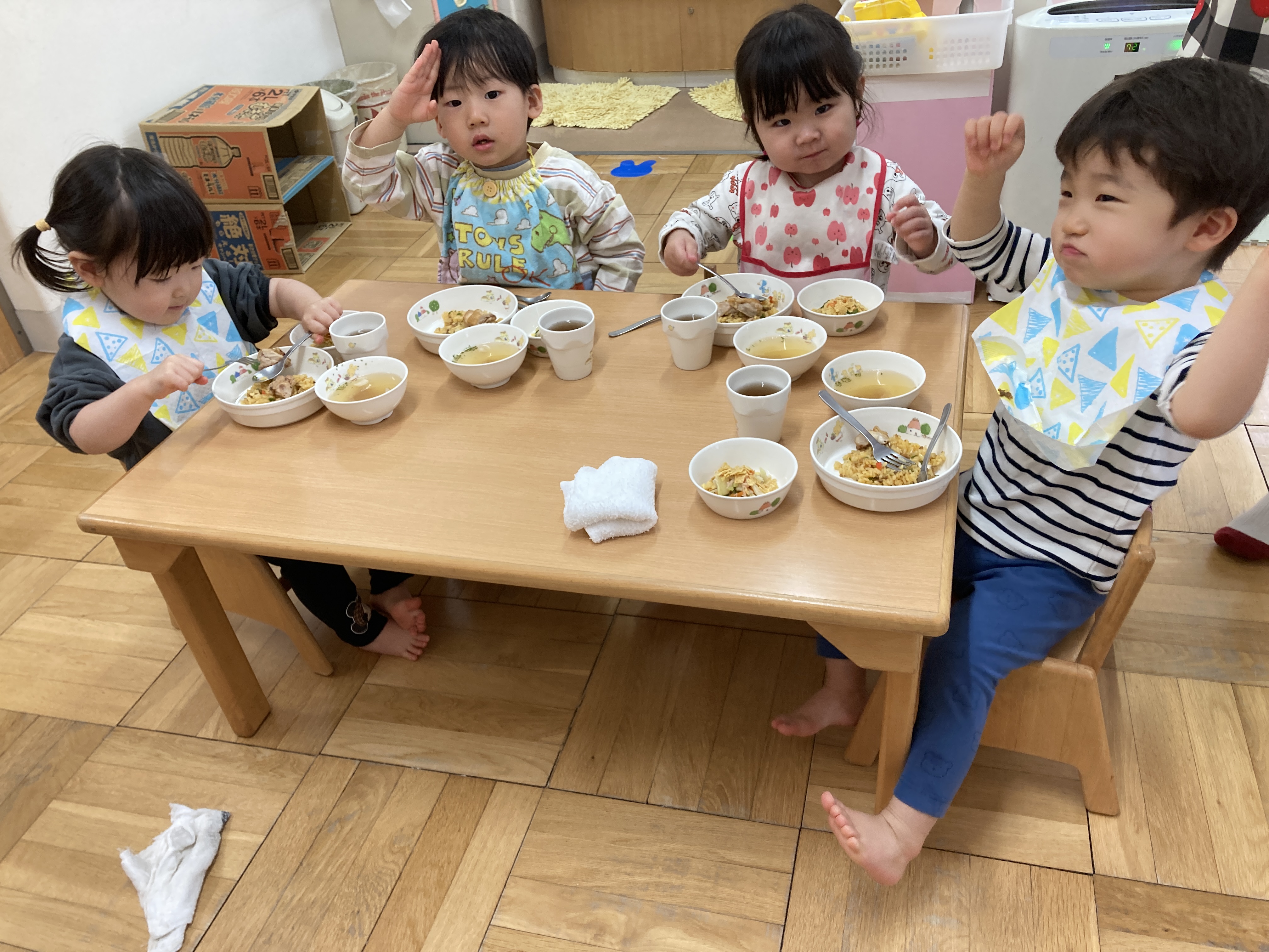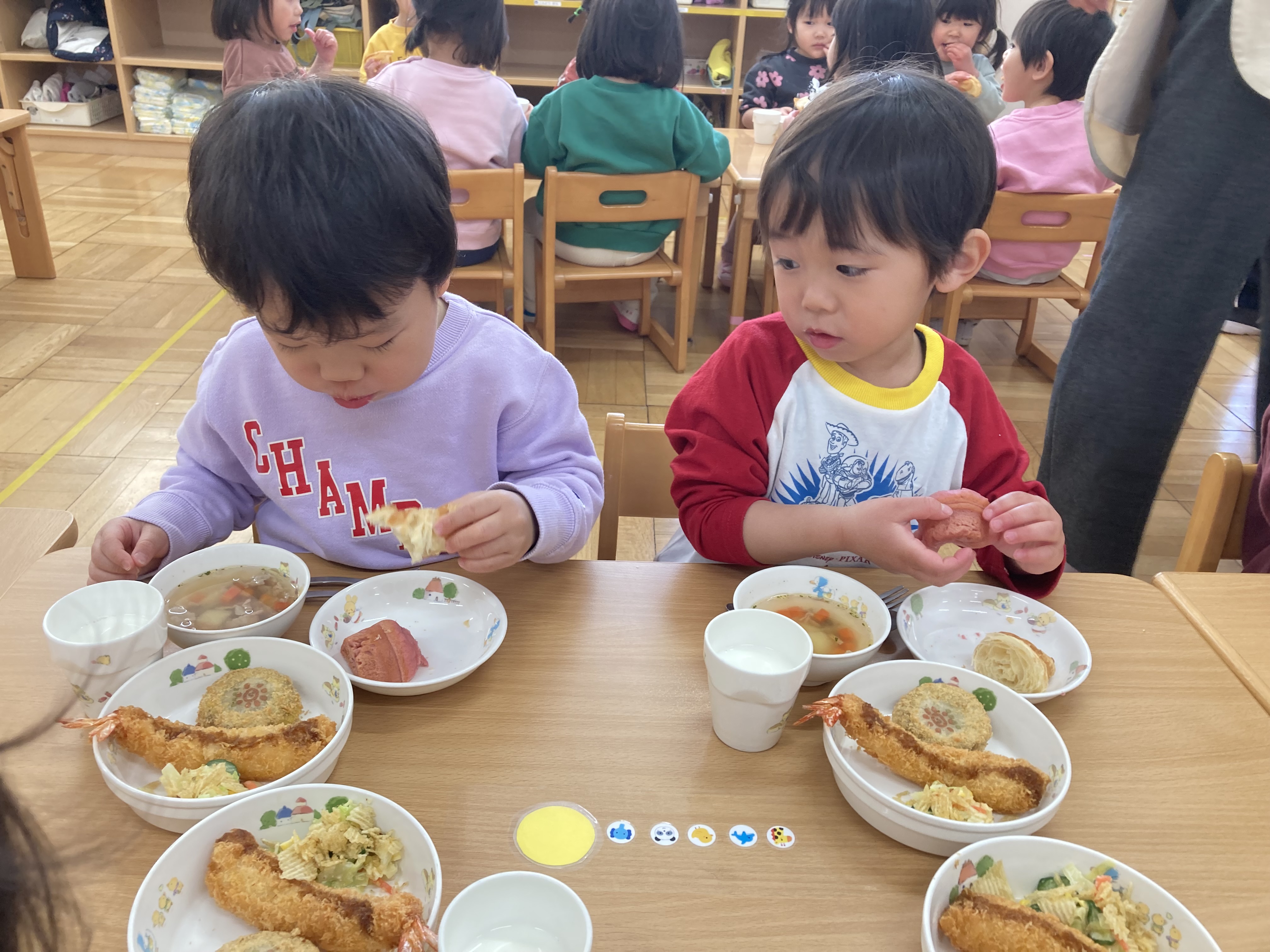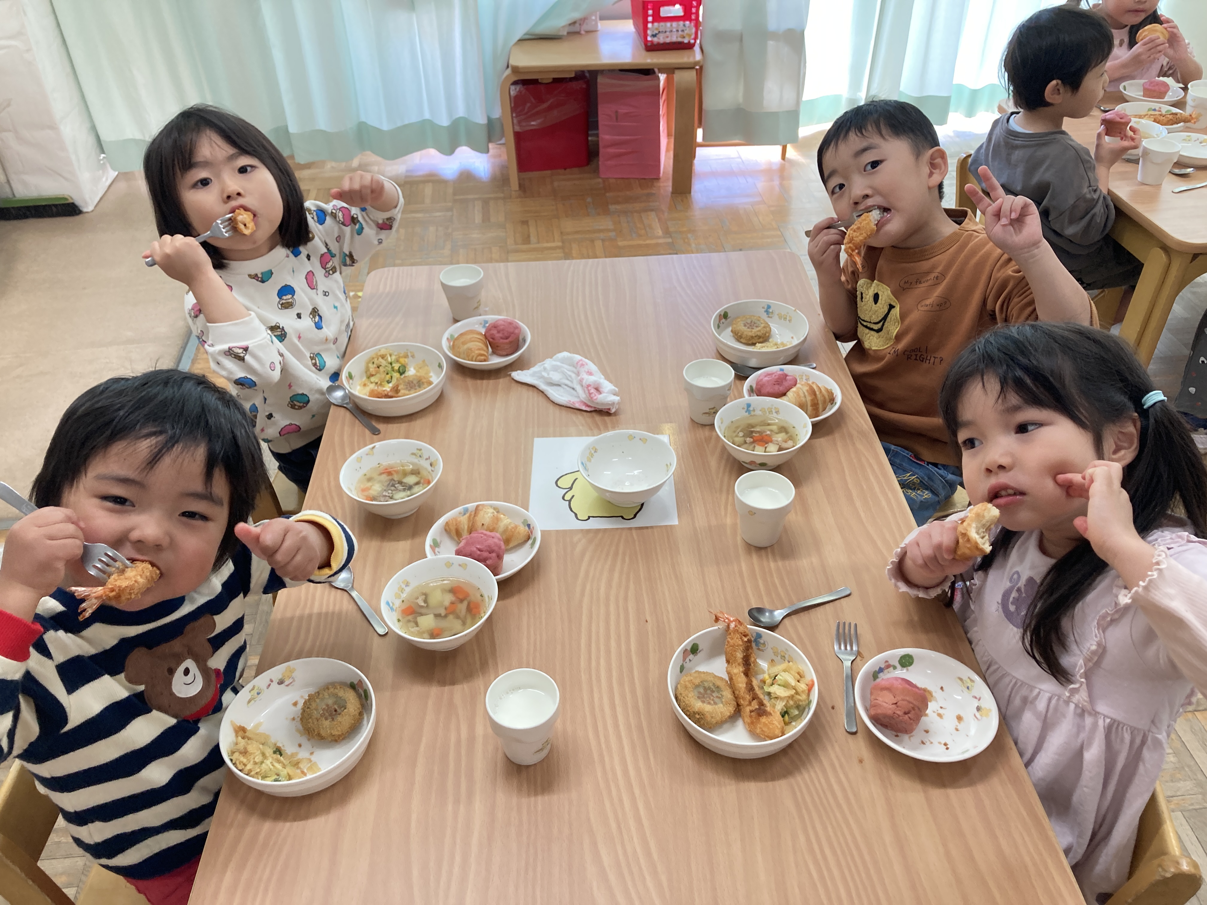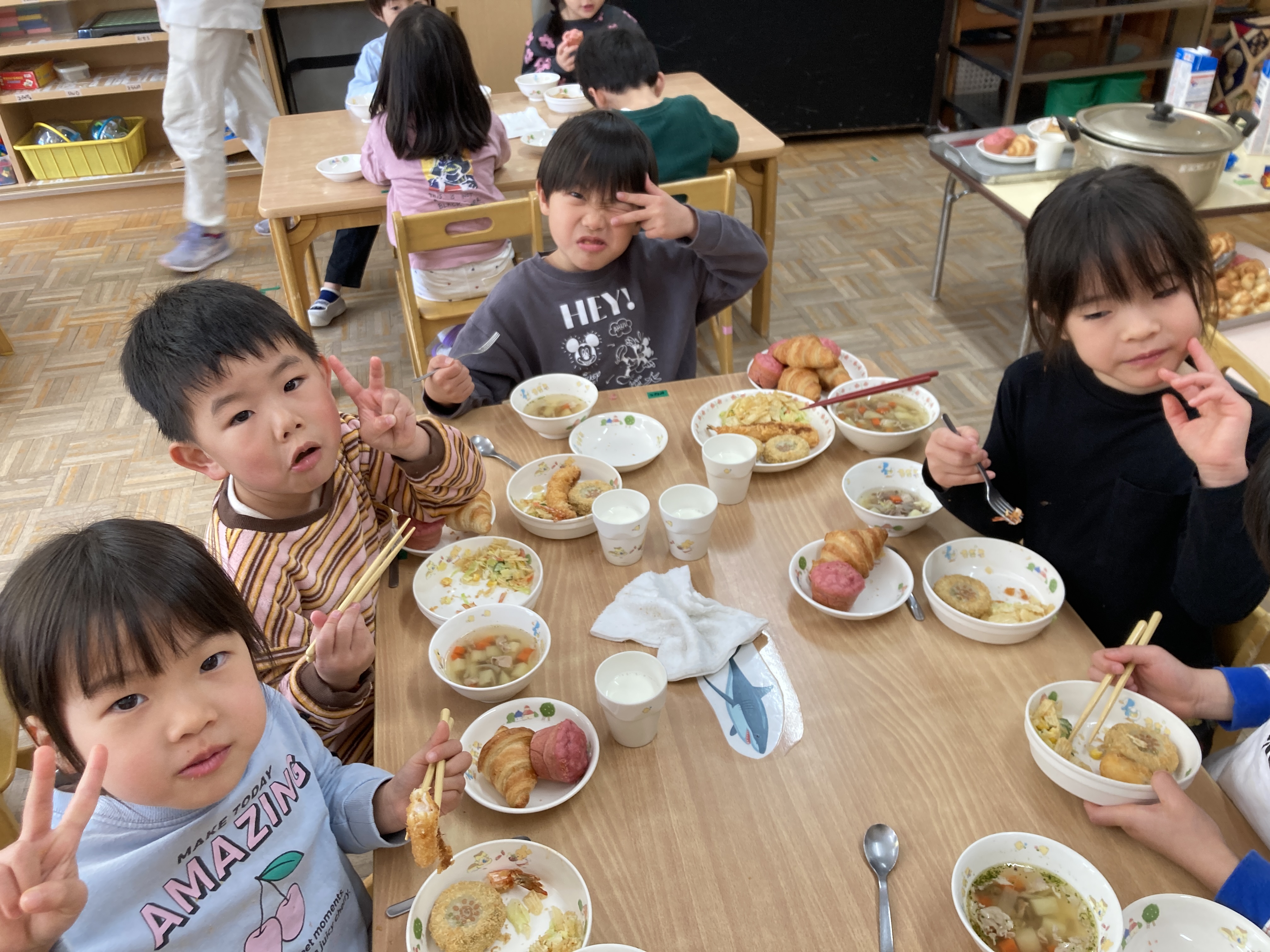 スープの中のアルファベットも「これ知ってるー」とお話しながら楽しい給食の時間のなりました。