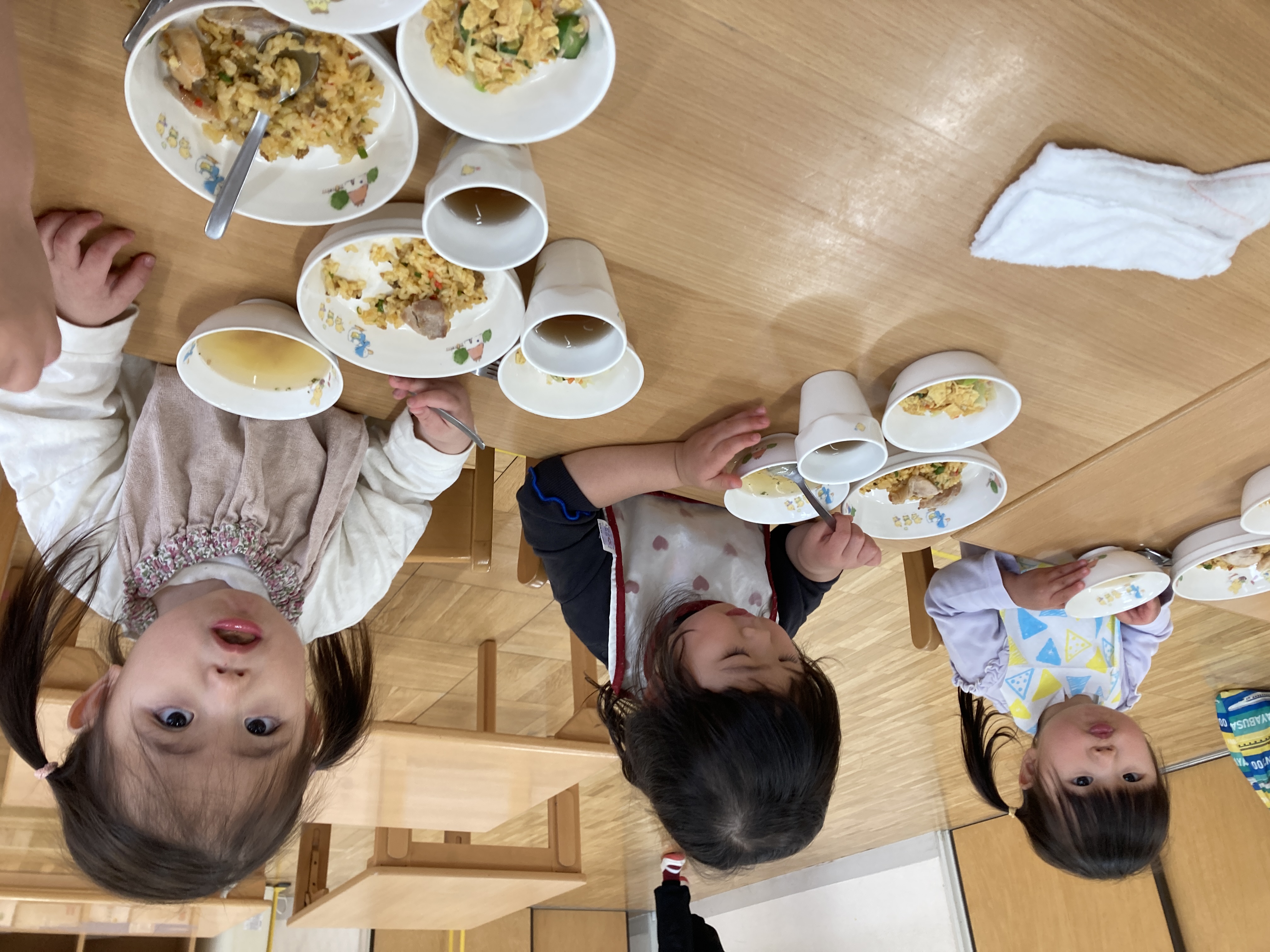 「今日で最後だね~」と給食中もモグモグ。。。