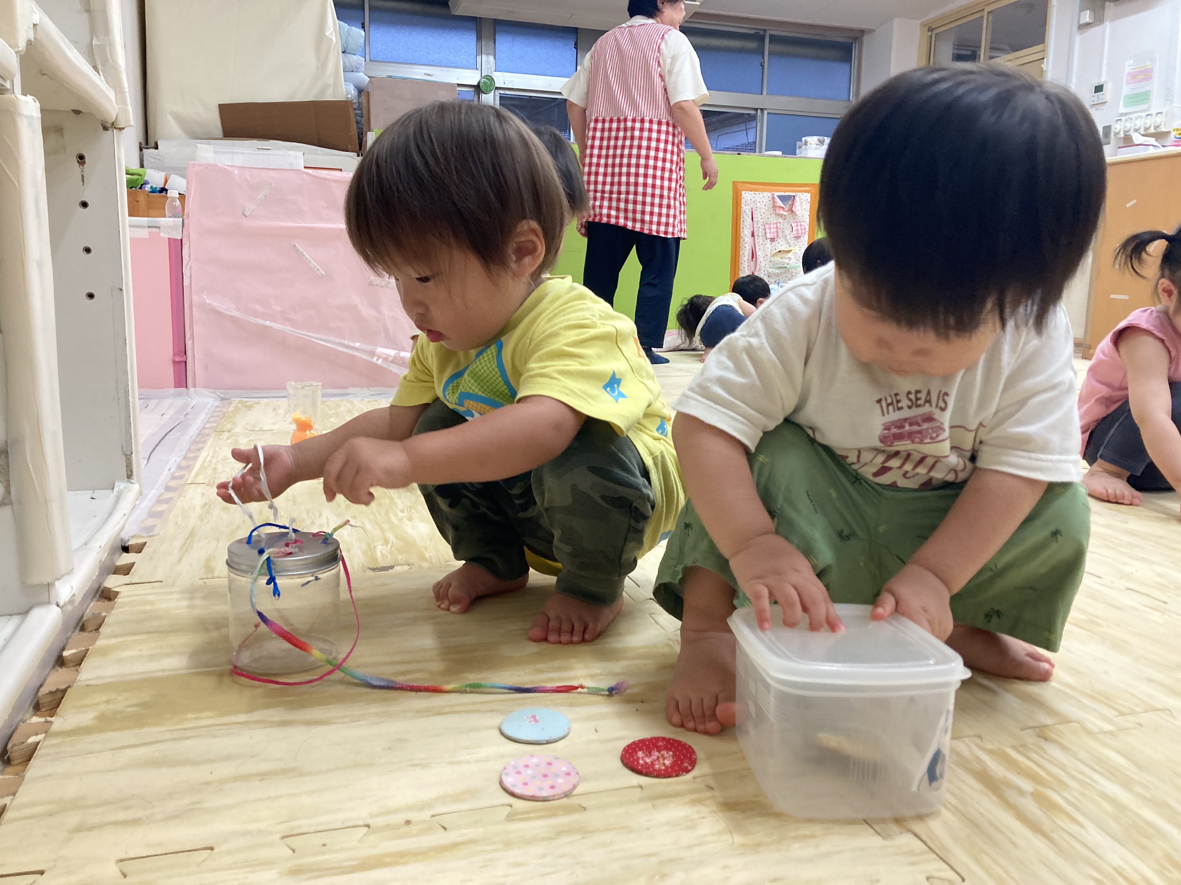 乳児では既存のおもちゃだけではなく、手に触れるぬくもりを大切に、子どもの「今」に合わせた手作りおもちゃなどで一人ひとりの興味や可能性を丁寧に伸ばしています!