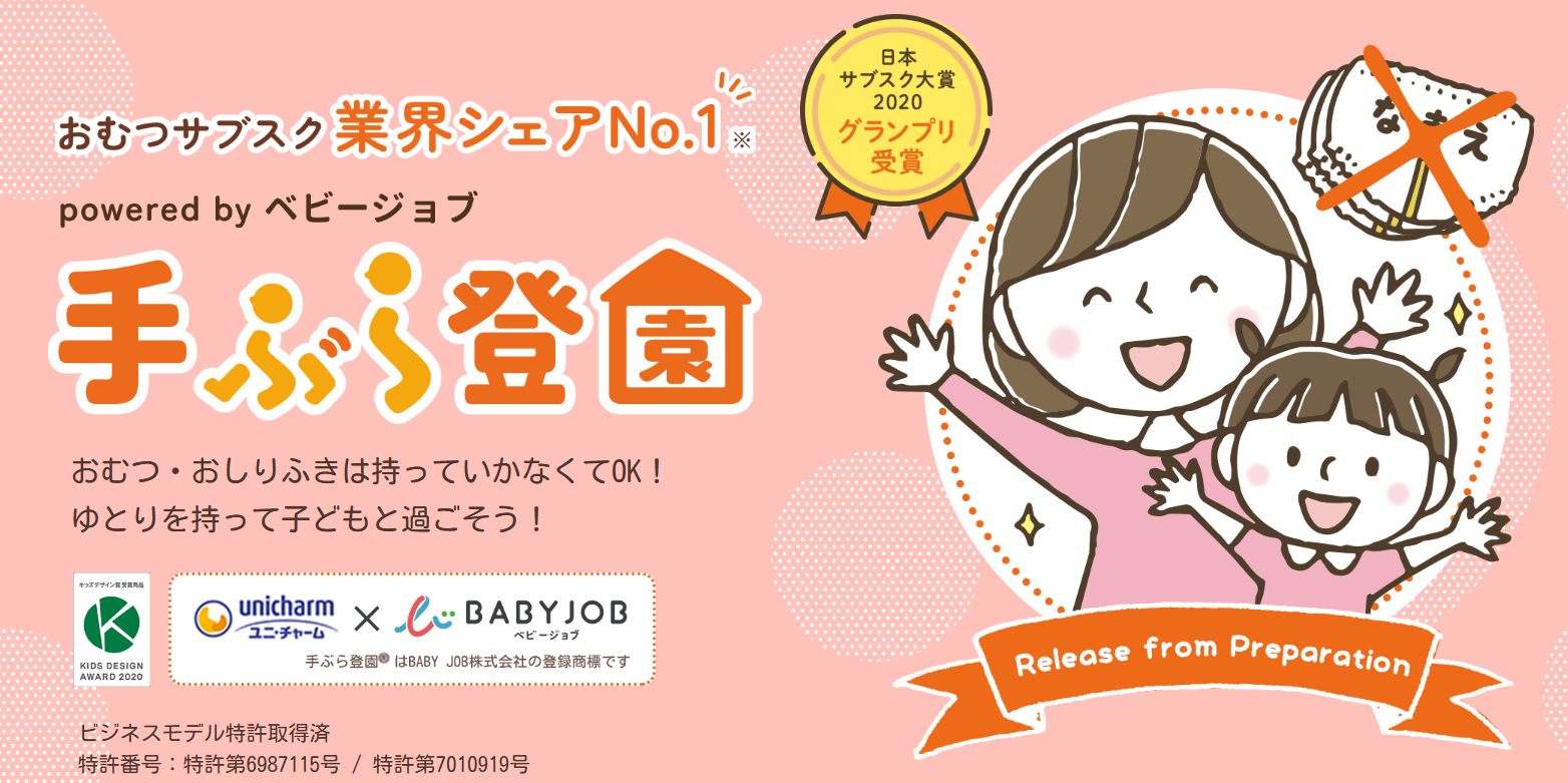 オムツとエプロンは、月定額で使いたい放題!子育てと仕事の両立で忙しい毎日の中で、オムツ1枚1枚に名前を書いたり、エプロンの洗濯の手間を省くことも出来ると保護者の方にも好評です。