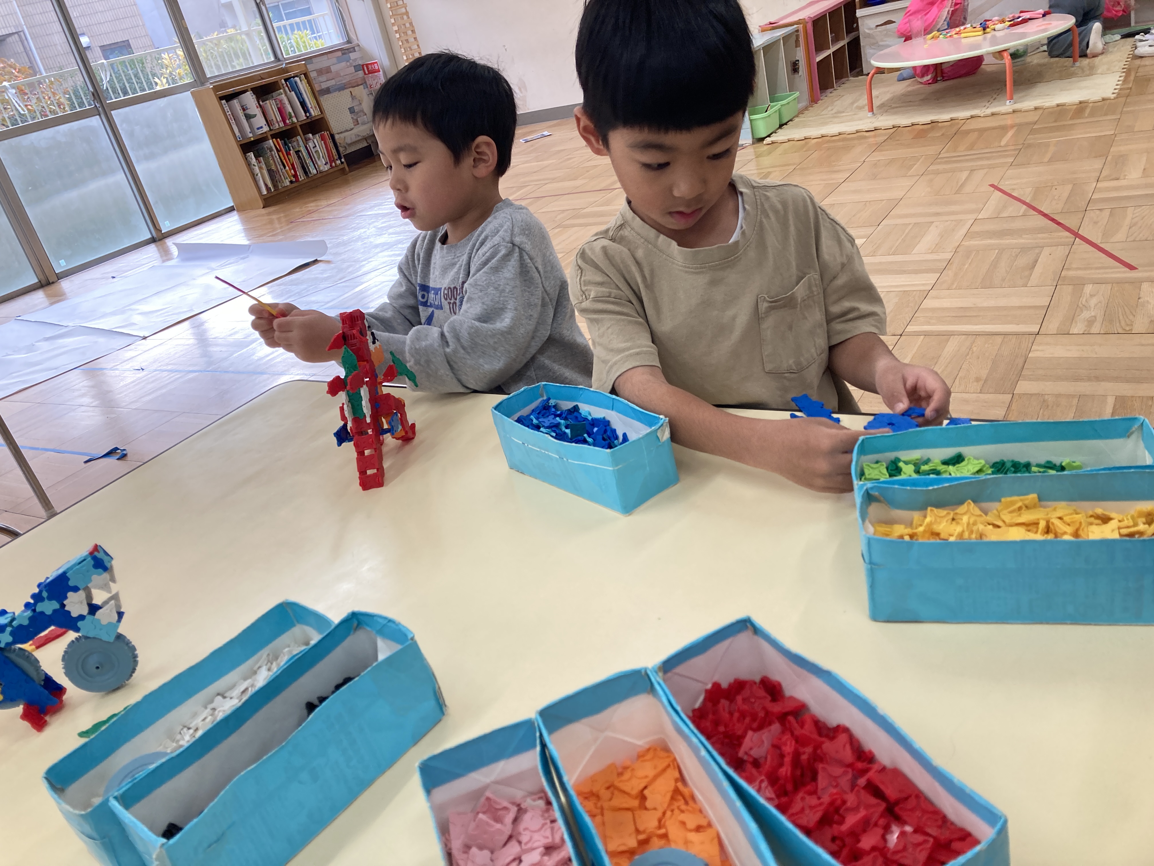 作る時は真剣に作り、遊ぶときは笑顔いっぱいの子どもたちです。