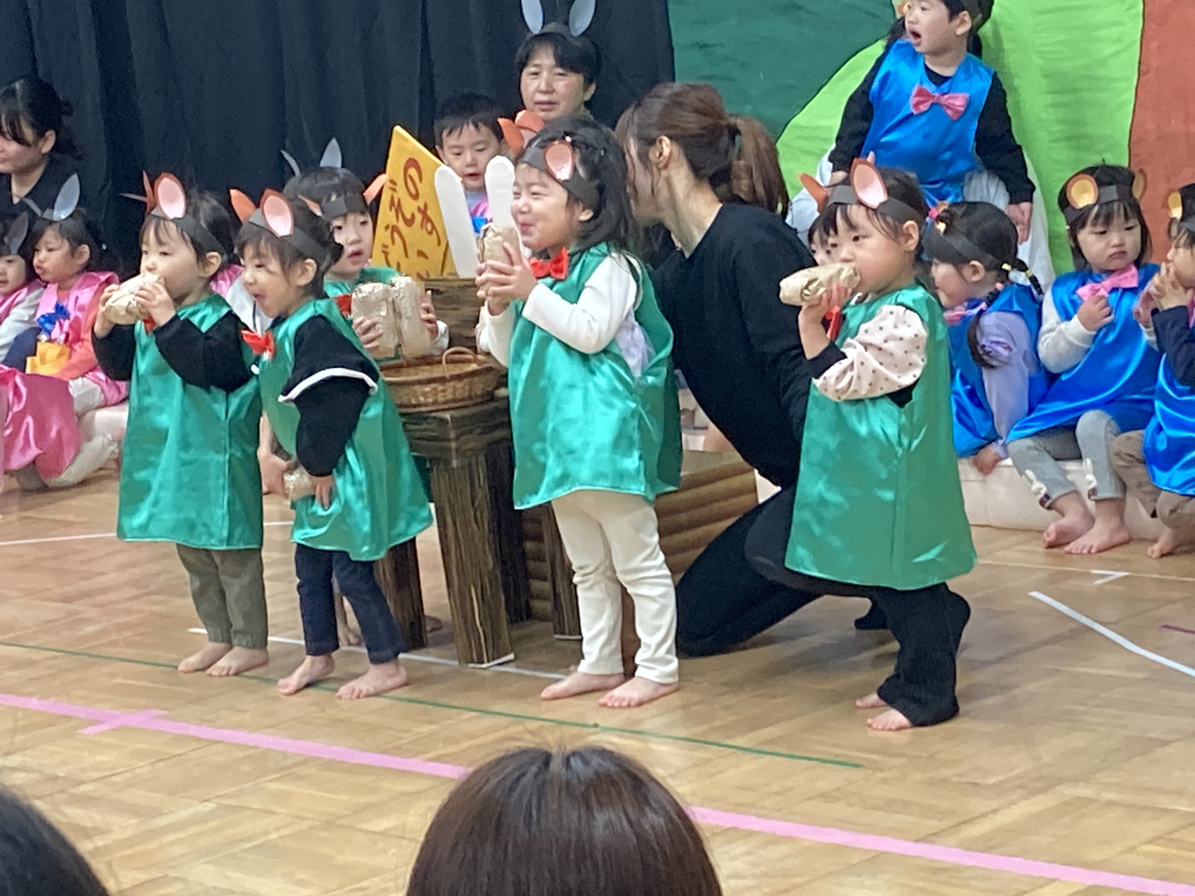 2歳児は”どうぞのいす”をお決まりのフレーズを言ったり、動物になりきって登場してくれたりととても可愛い姿を見せてくれました。