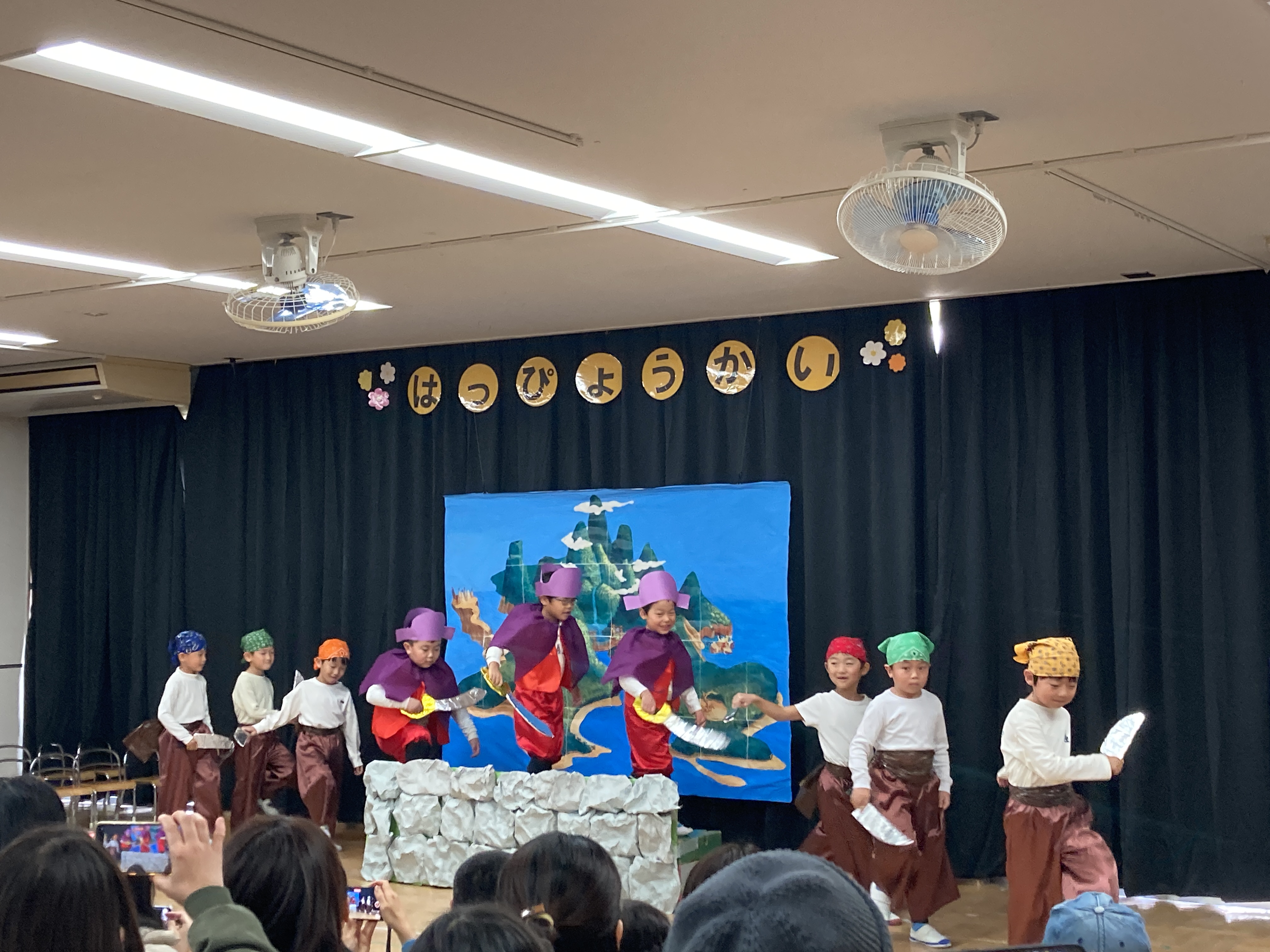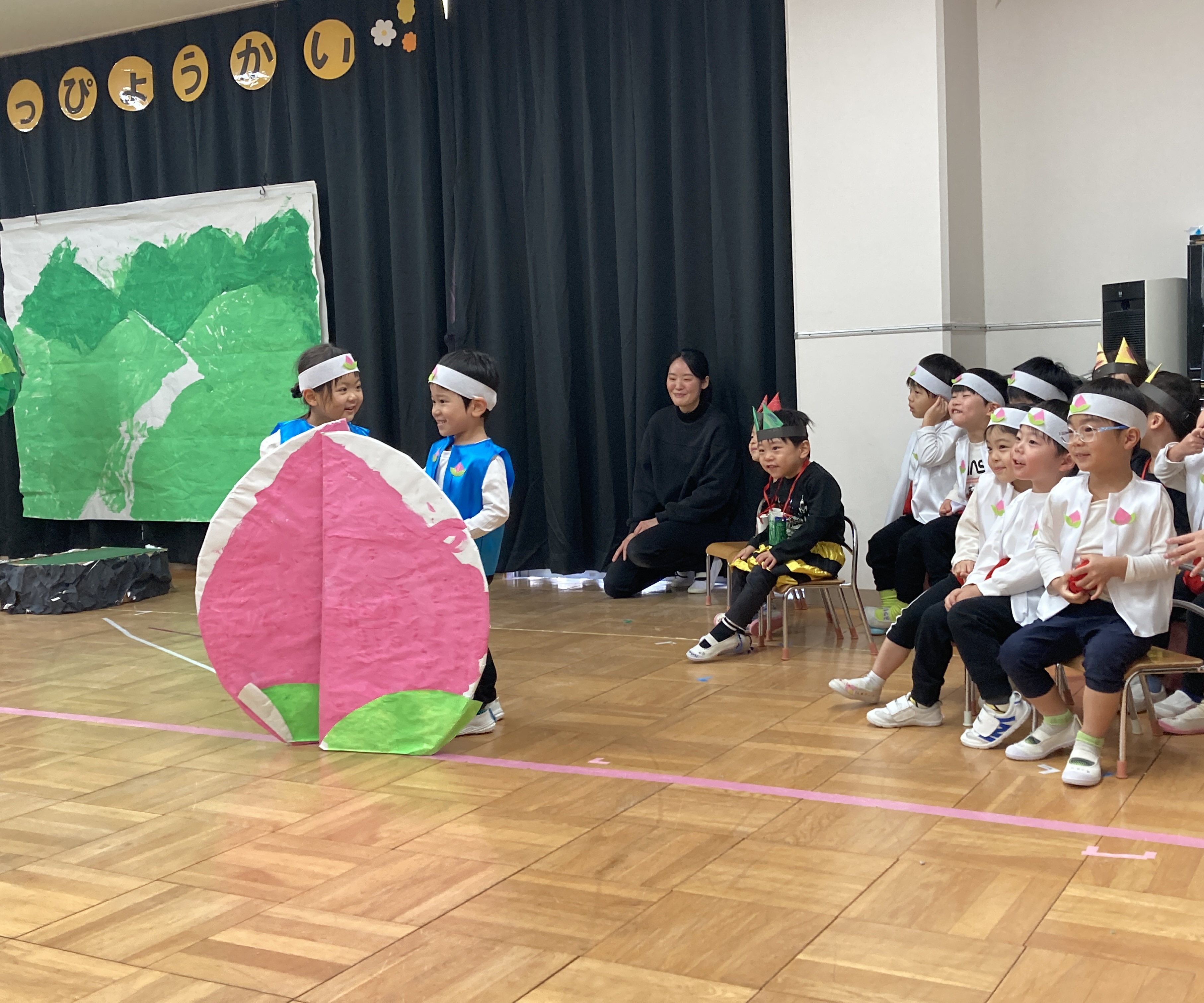 3歳児は、大好きな絵本”ももたろう”を堂々と保護者の方の前で披露してくれました。