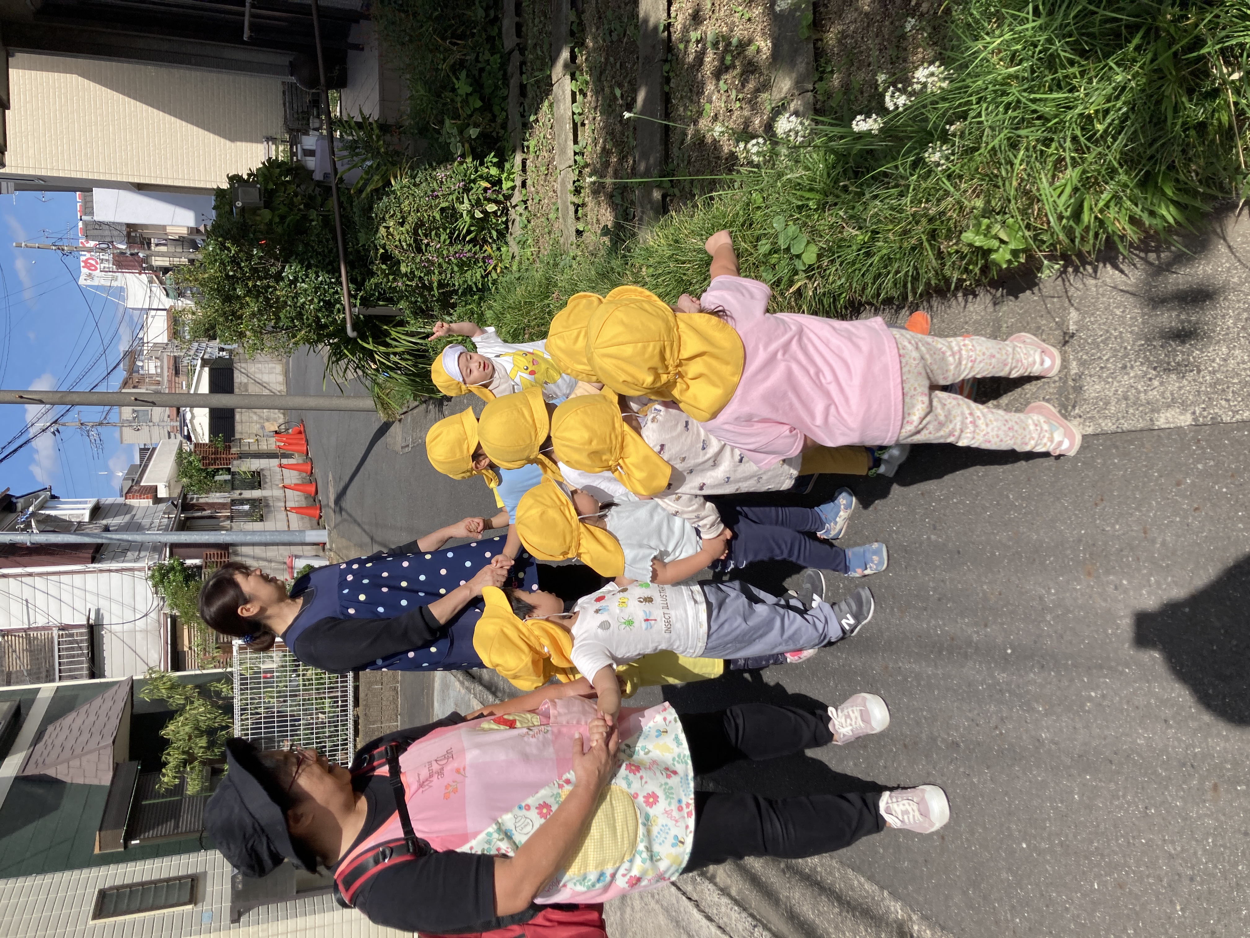 涼しくなり、お天気の良い日はお散歩に出かけることを楽しみにしている あひる組の子どもたちです!