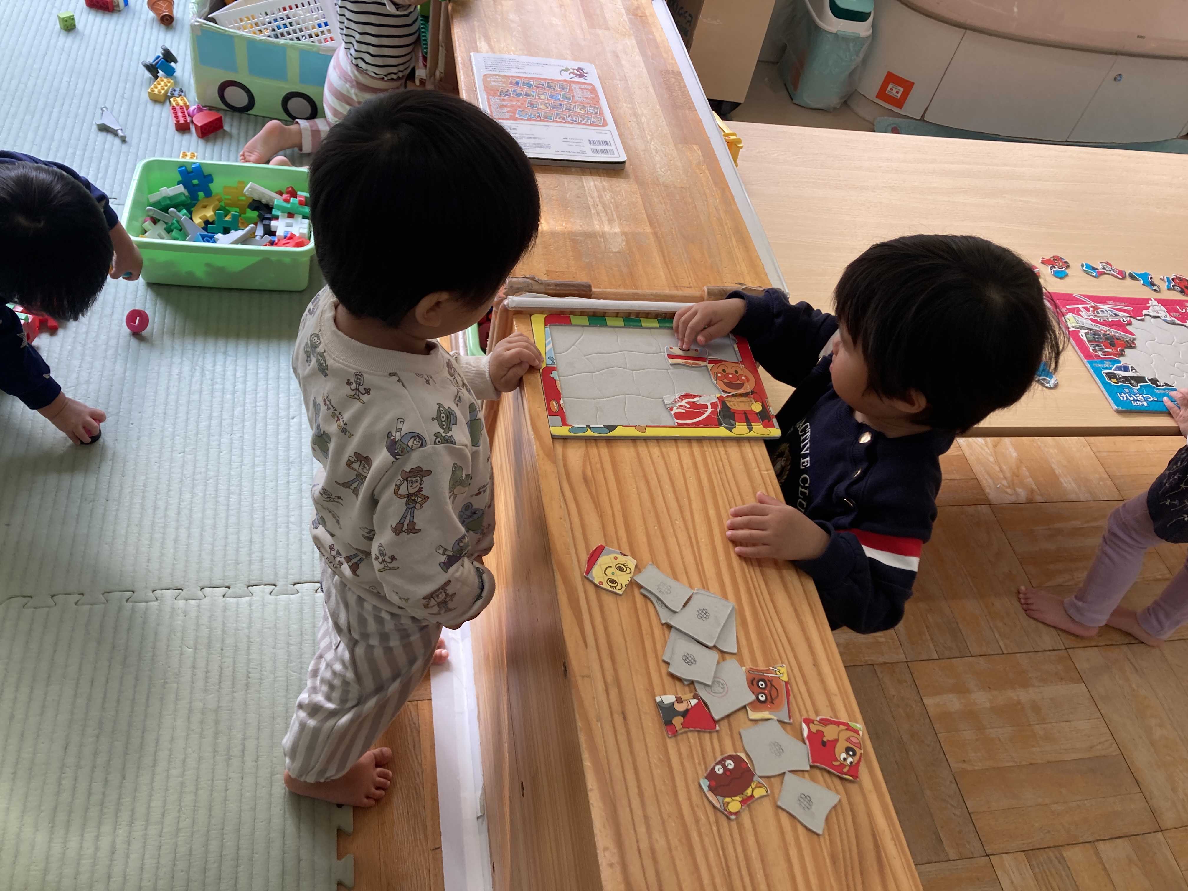 最近は「お友だちと一緒に遊びたい!」という気持ちが出てきて子ども同士の関わりが増えてきました。