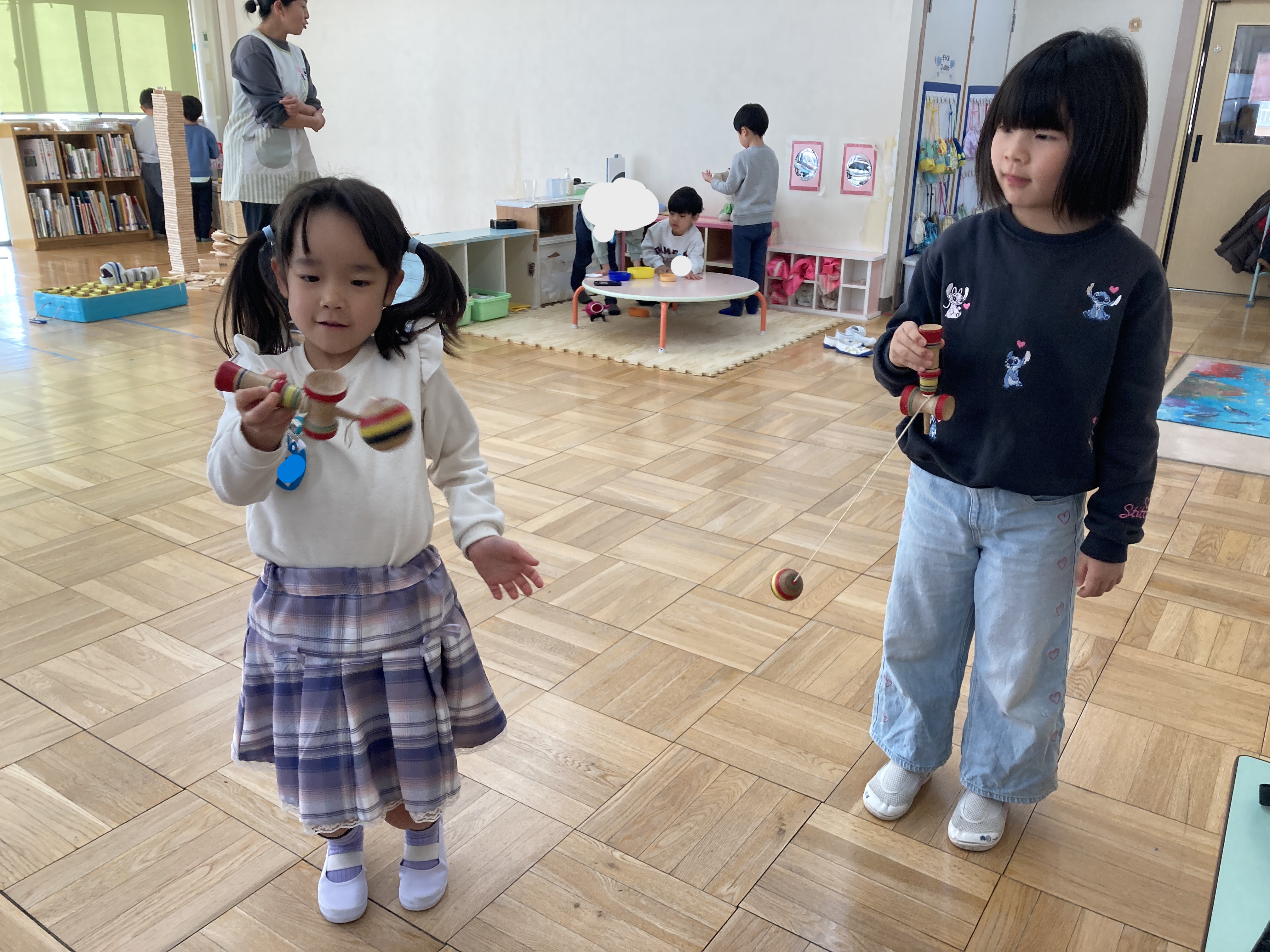 お部屋で羽根つきや、福笑い、けん玉や、こま回し