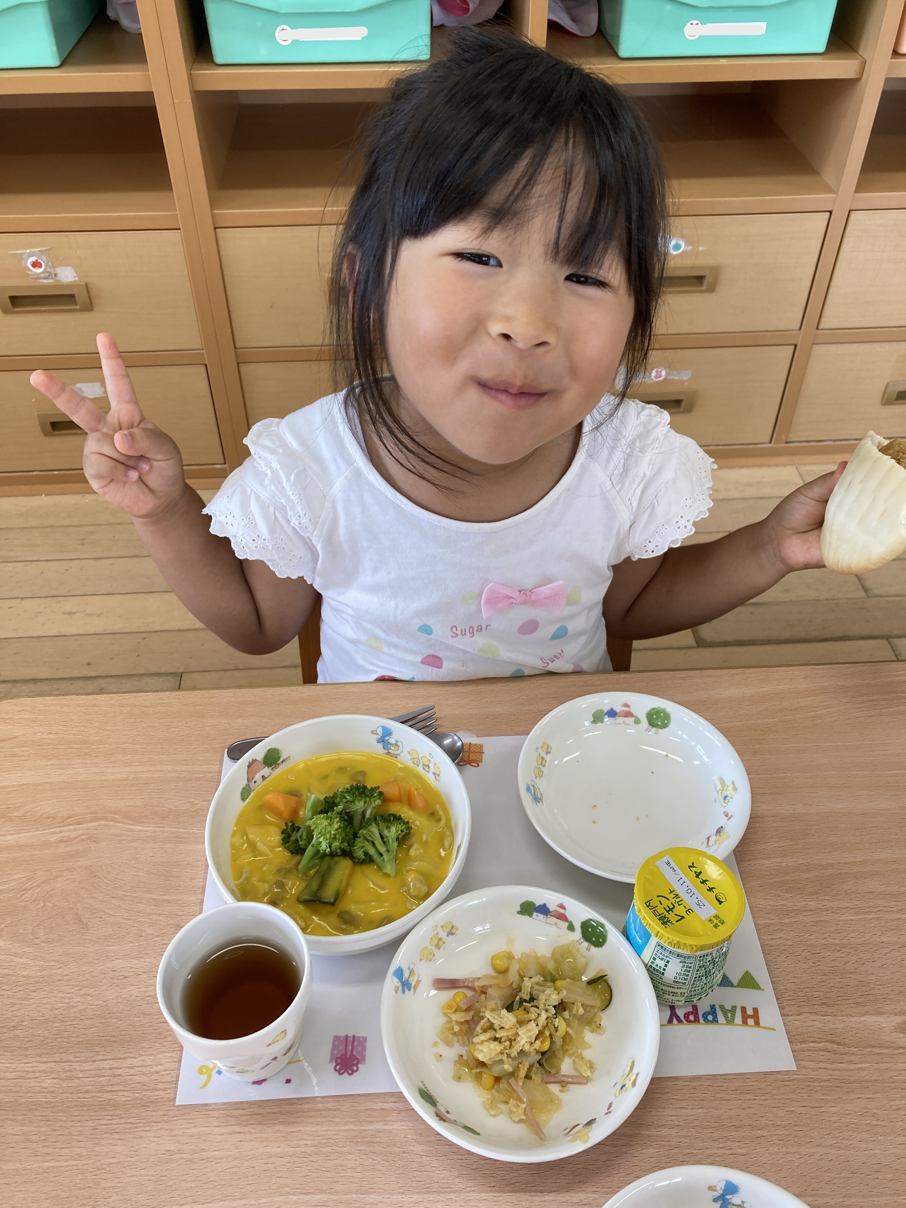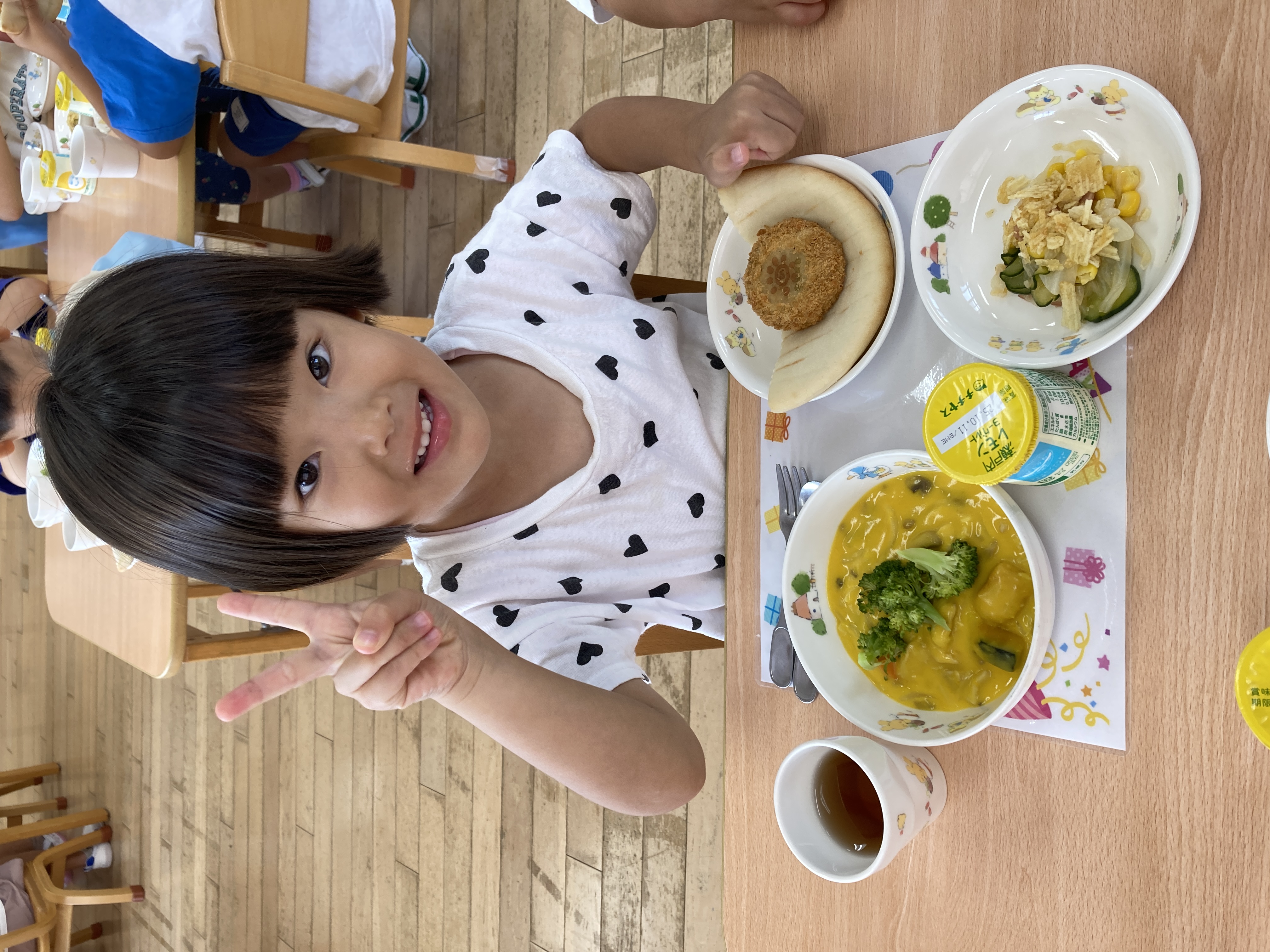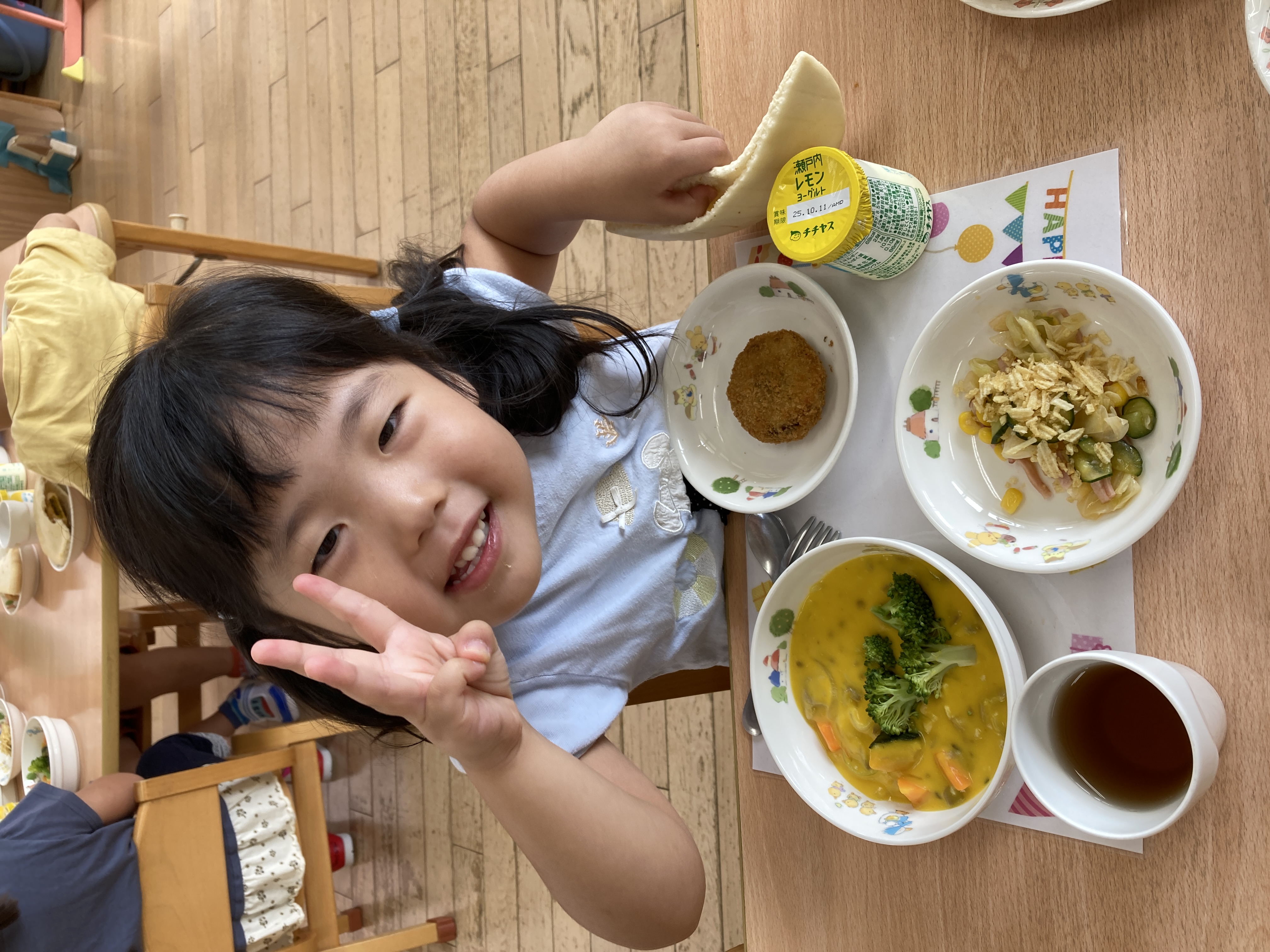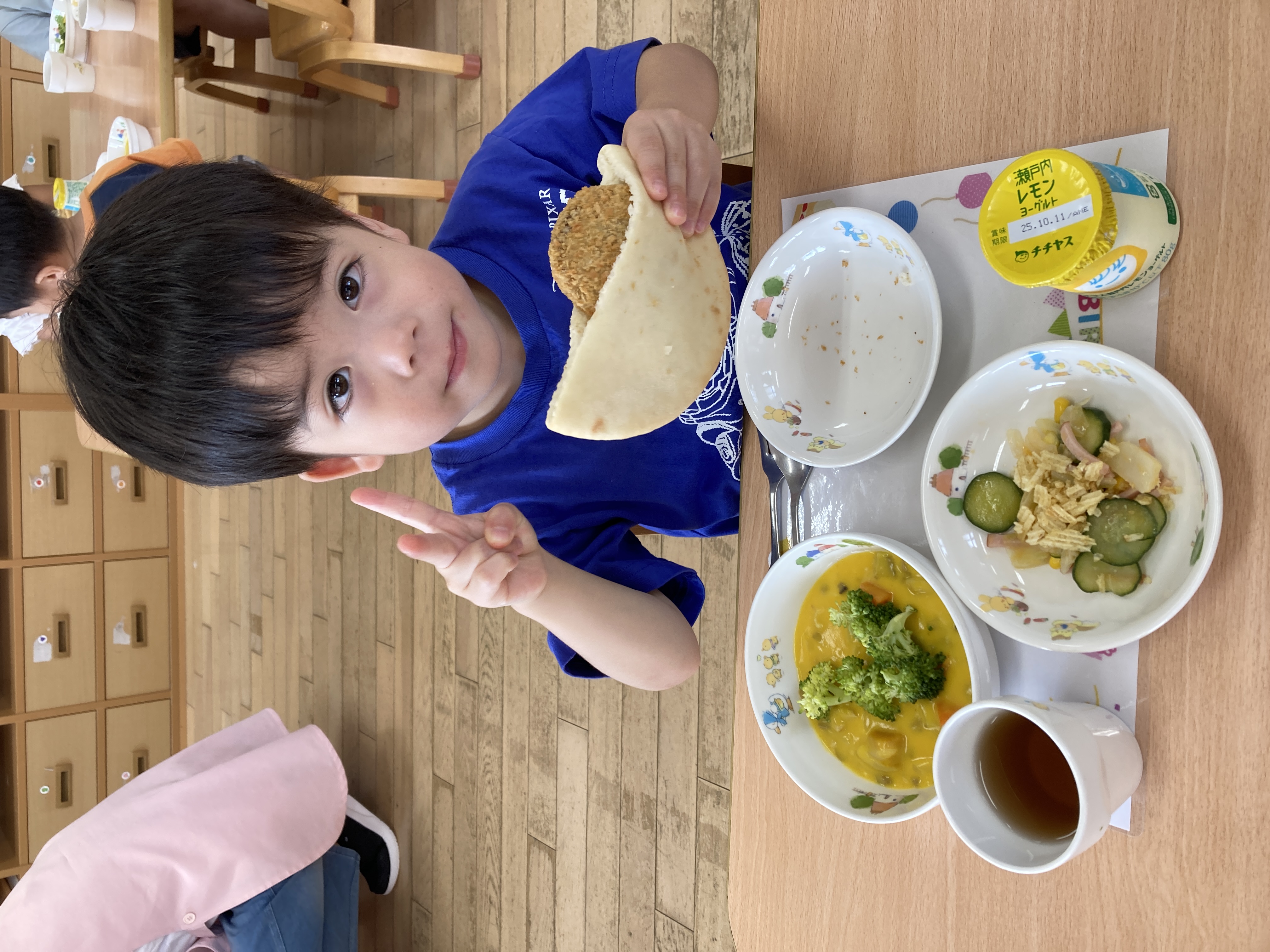 デザートのチチヤス瀬戸内レモンヨーグルトの「瀬戸内はどこ?」と興味を持つ児もいて、「広島だよ」と伝えると日本地図を見ながら「ここのレモンなんだ」と興味に繋がり、美味しく食べていました。
