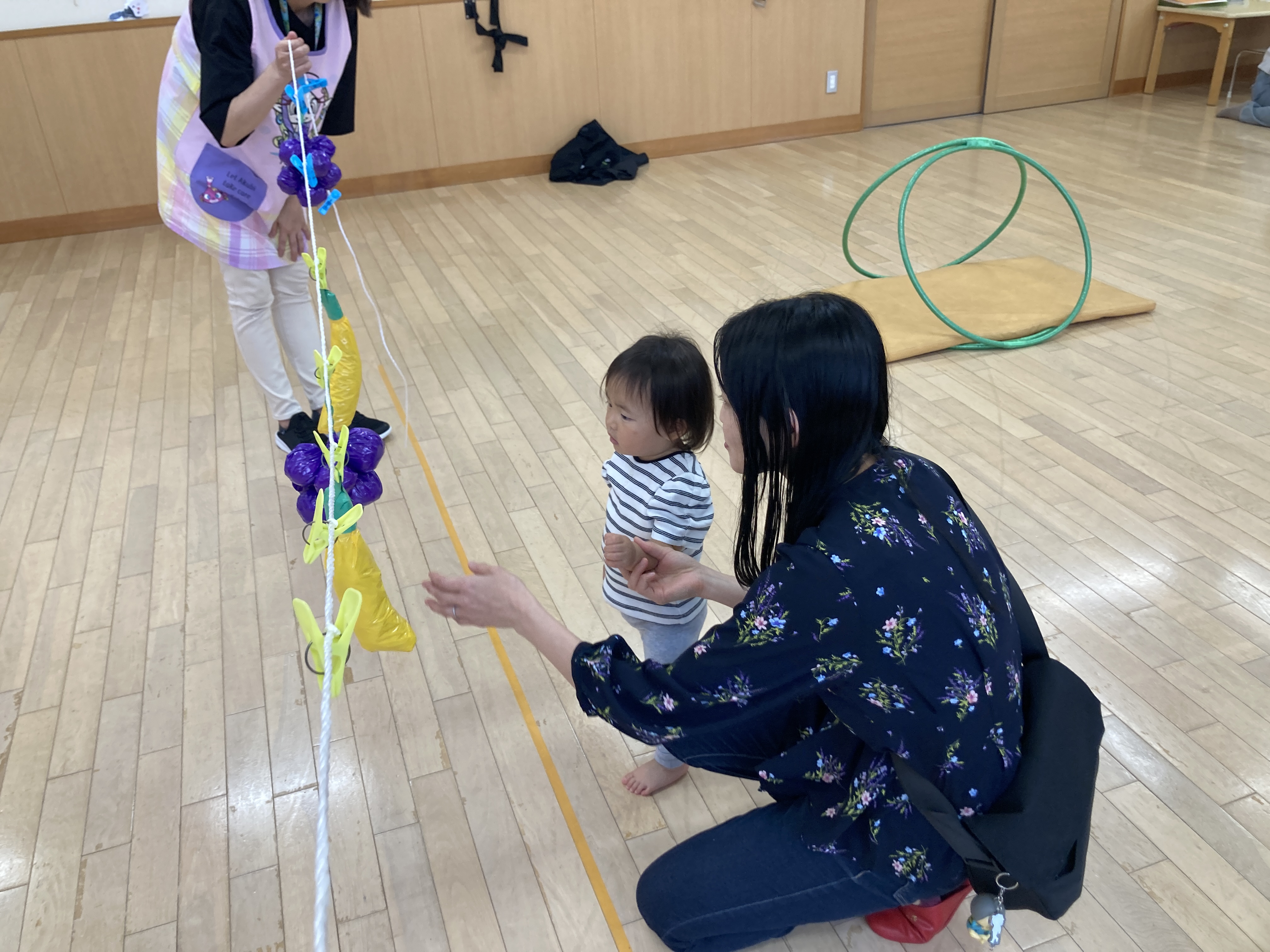 今日はおひさま子育てひろばの「運動会ごっこ」があり、11名のお友達が来てくれました。