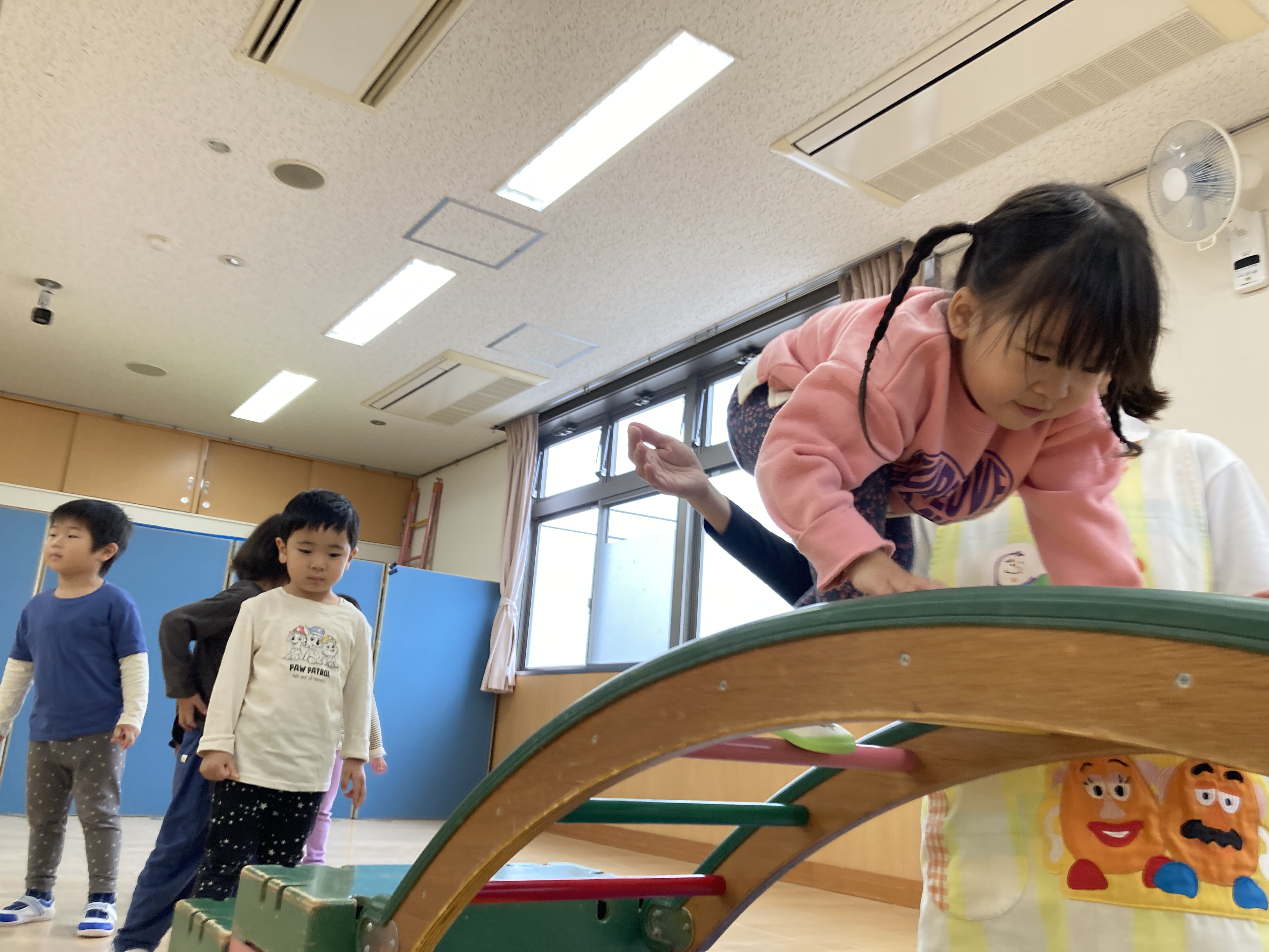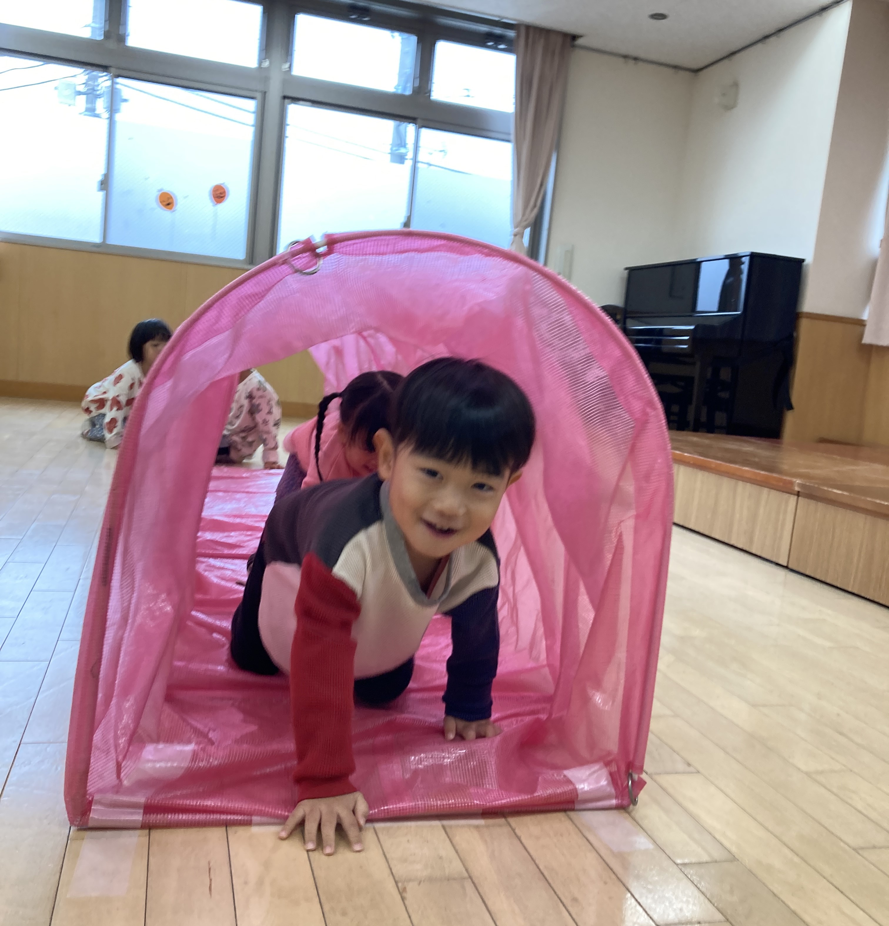 なのでホールで太鼓橋・平均台・トンネルを使って遊びました!