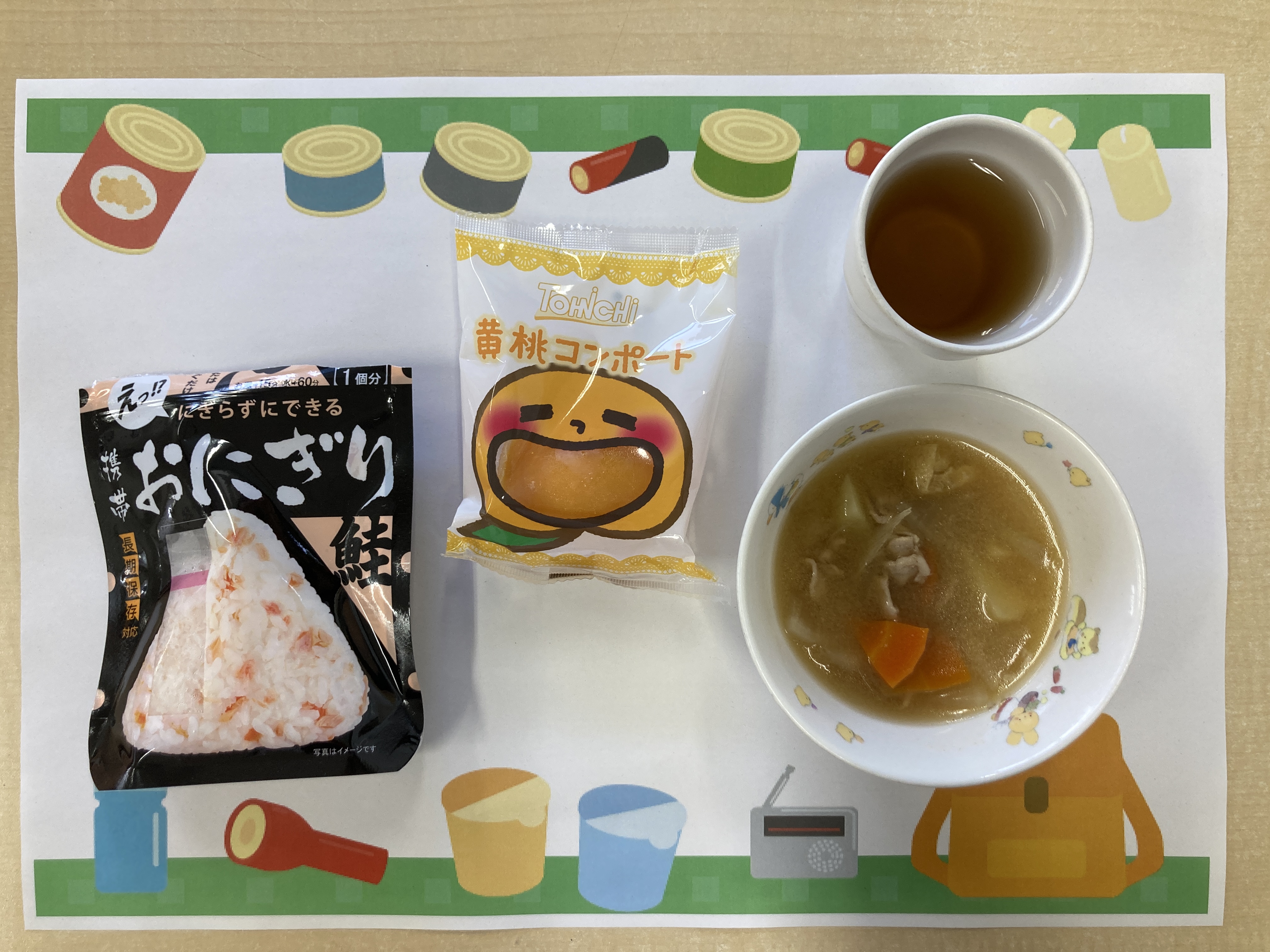 この後、給食で頂く非常食の作り方を聞くと「そーなんだ」「これを食べれるんだ」とびっくりする表情が印象的でした。