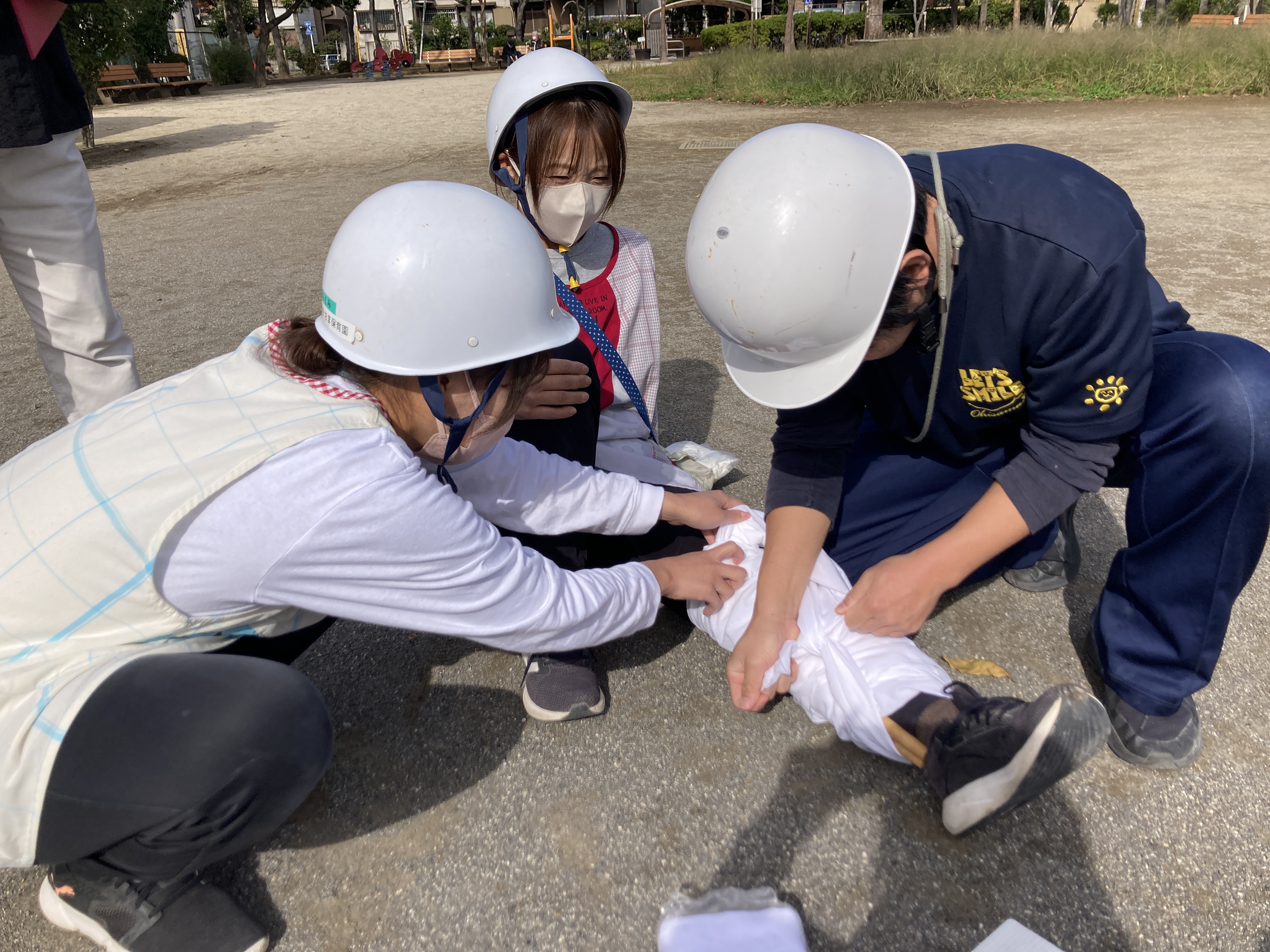 また避難中に職員が怪我をし、応急救護をする様子も見学しました。