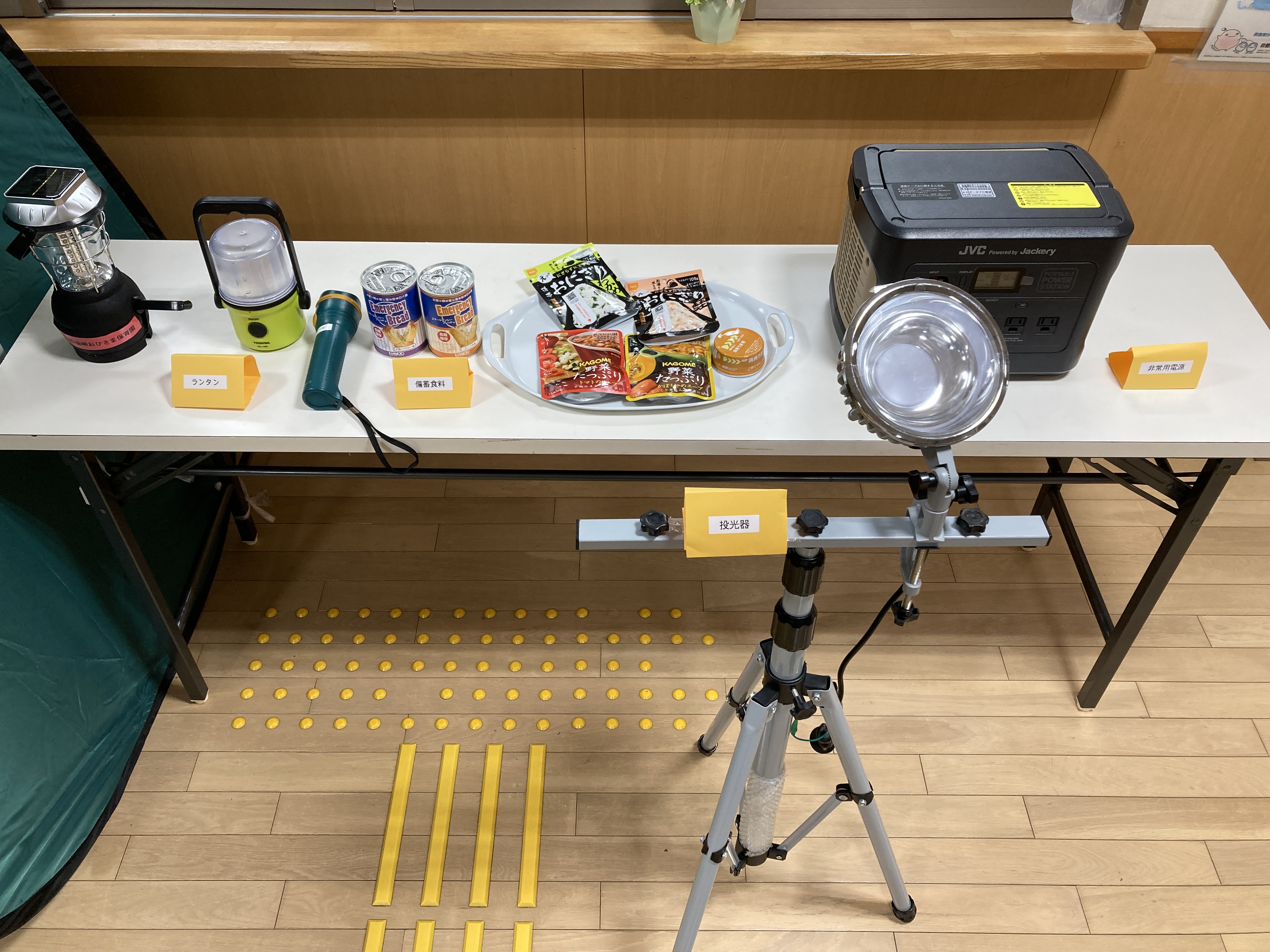 携帯トイレや発電機、ポータブル電源、ソーラーパネル等用品も実際に触れて体験。