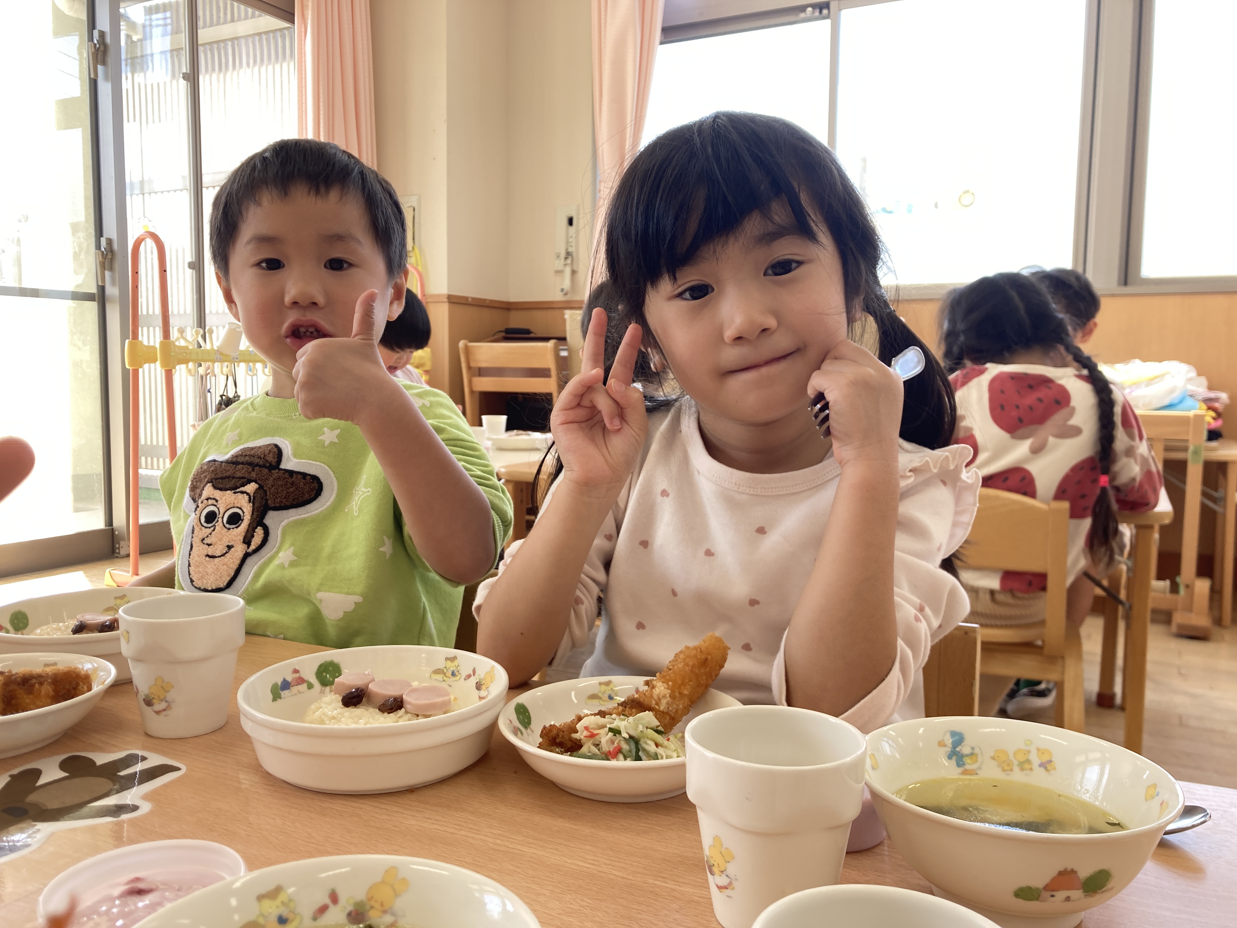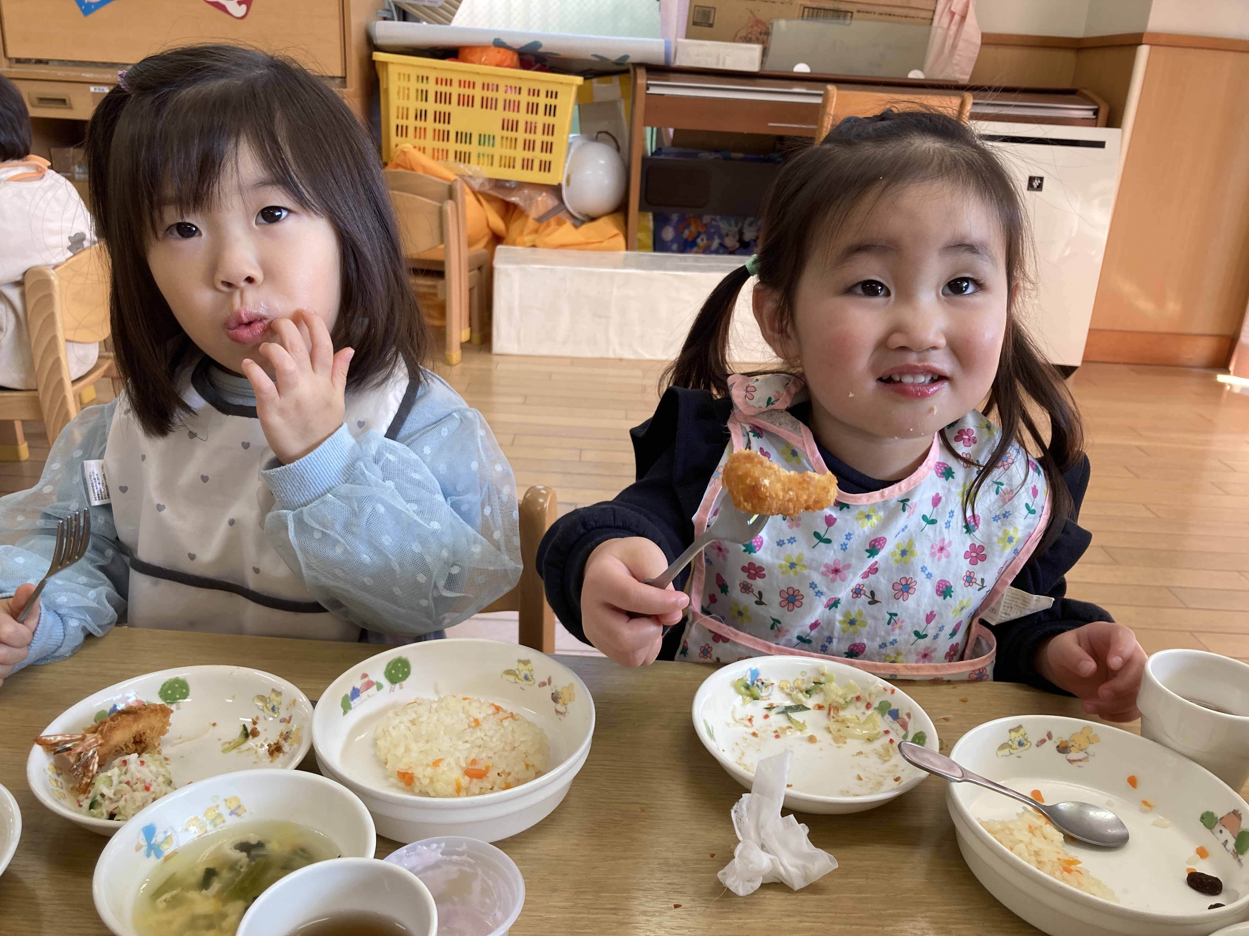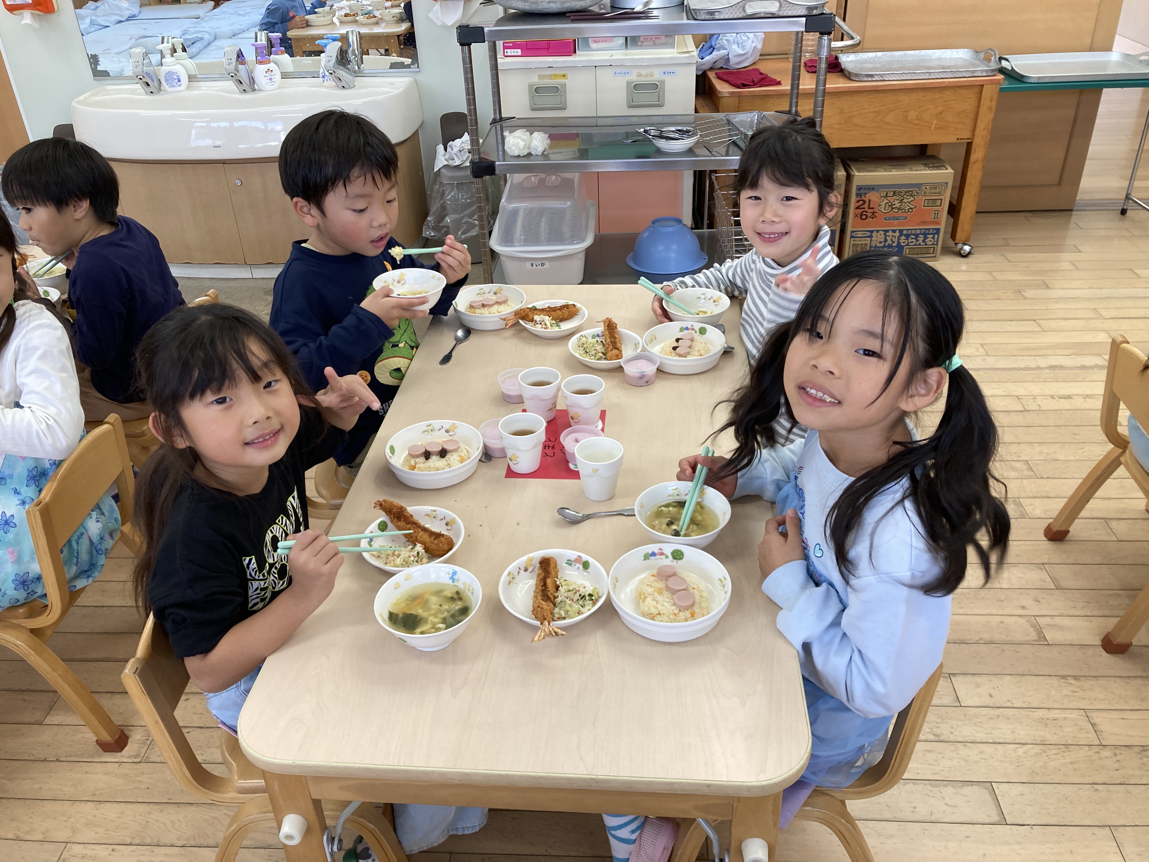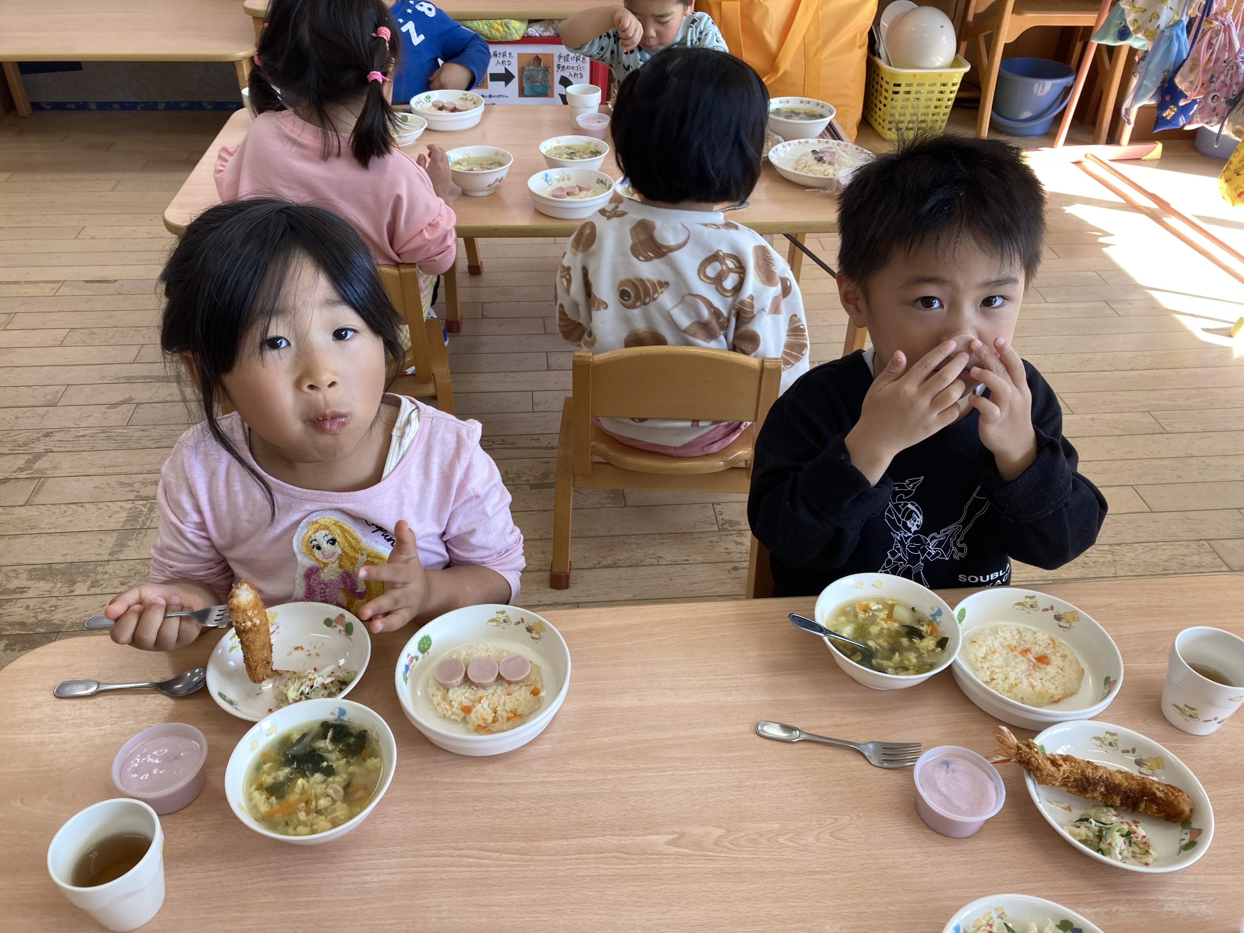 エビフライは、お皿からはみ出るくらいの大きさで子ども達は大喜びでした。