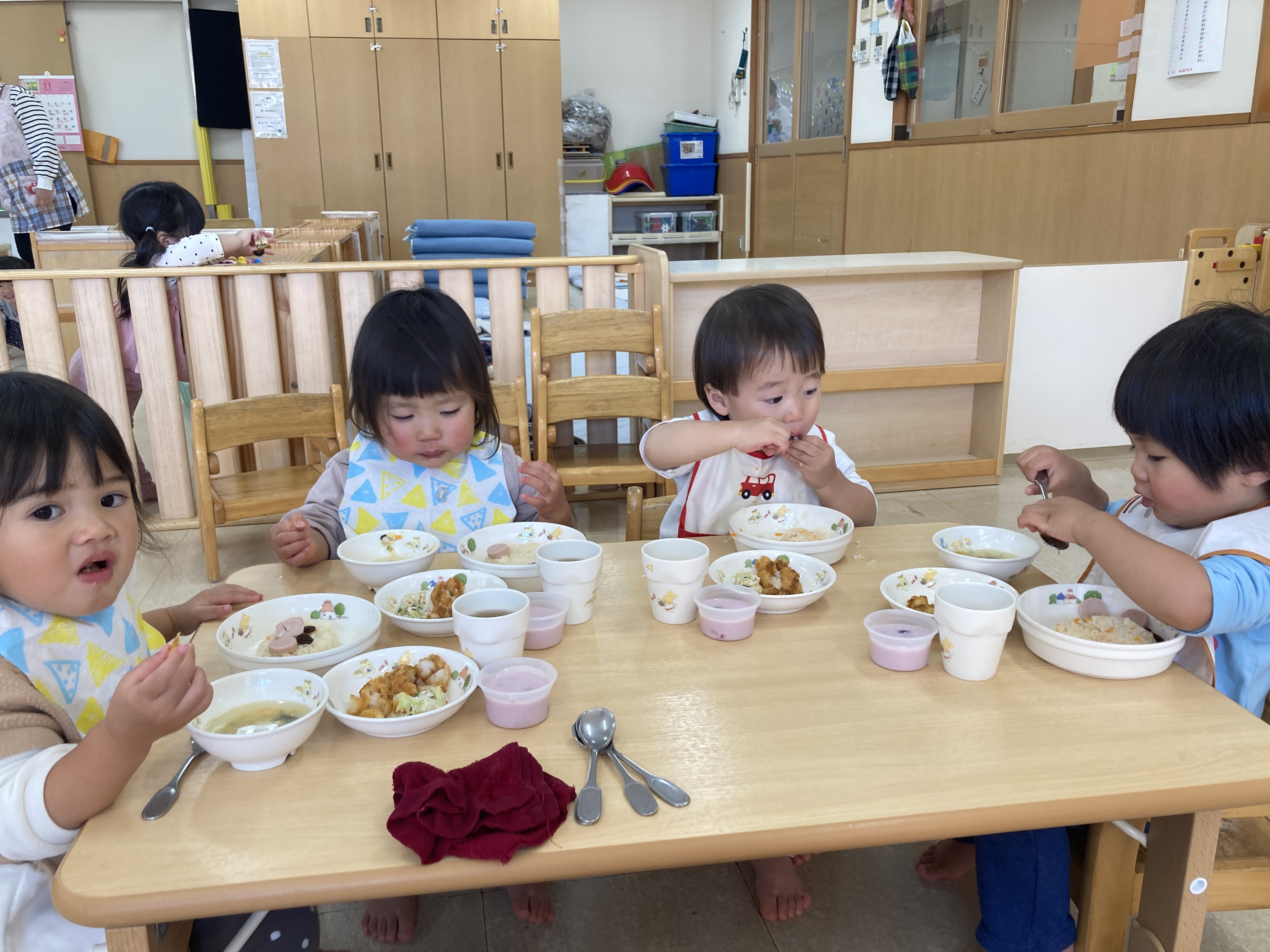 ごはんはアンパンマンの顔になっていて、「かわいいー」といいながら食べていました。