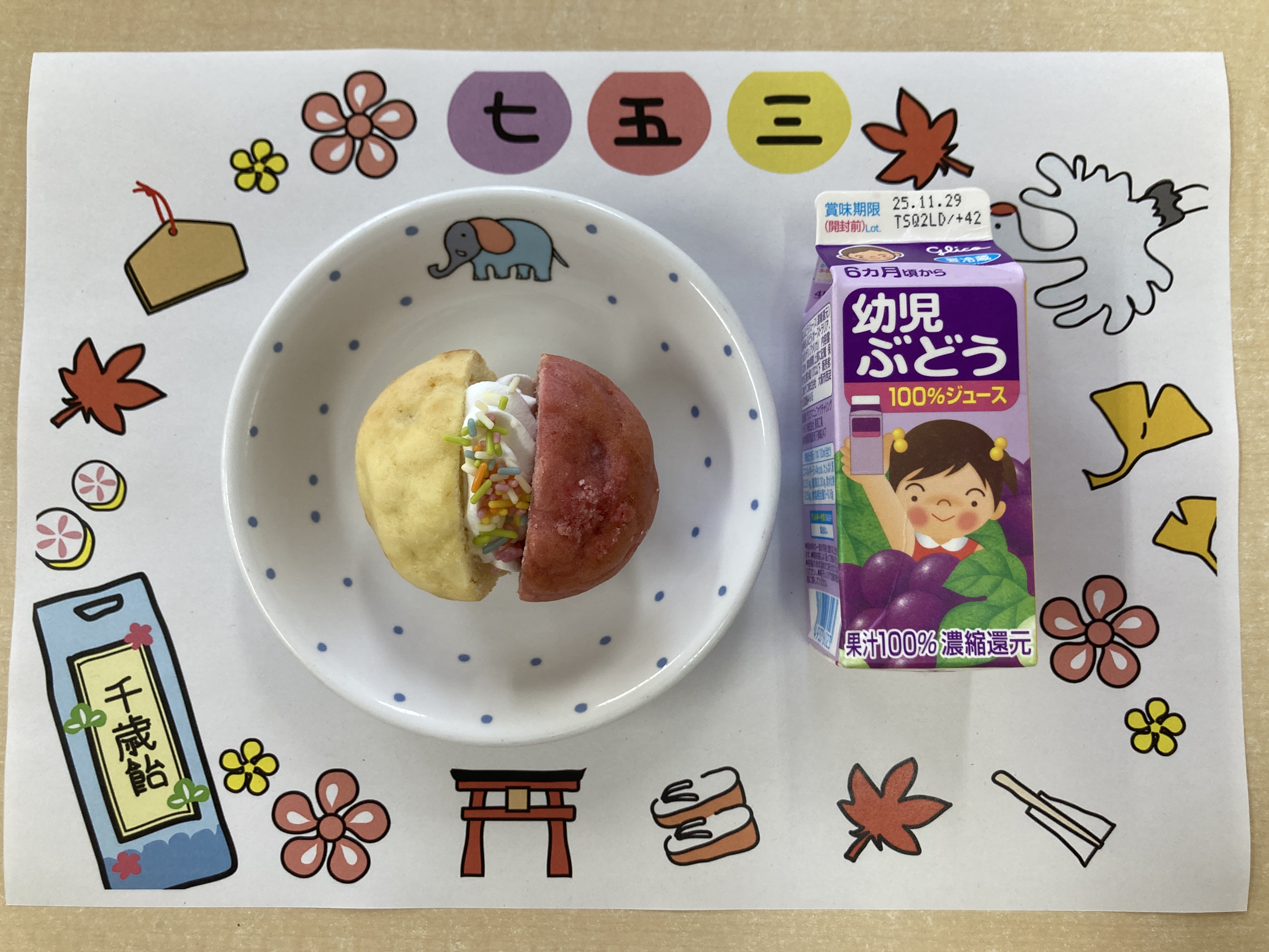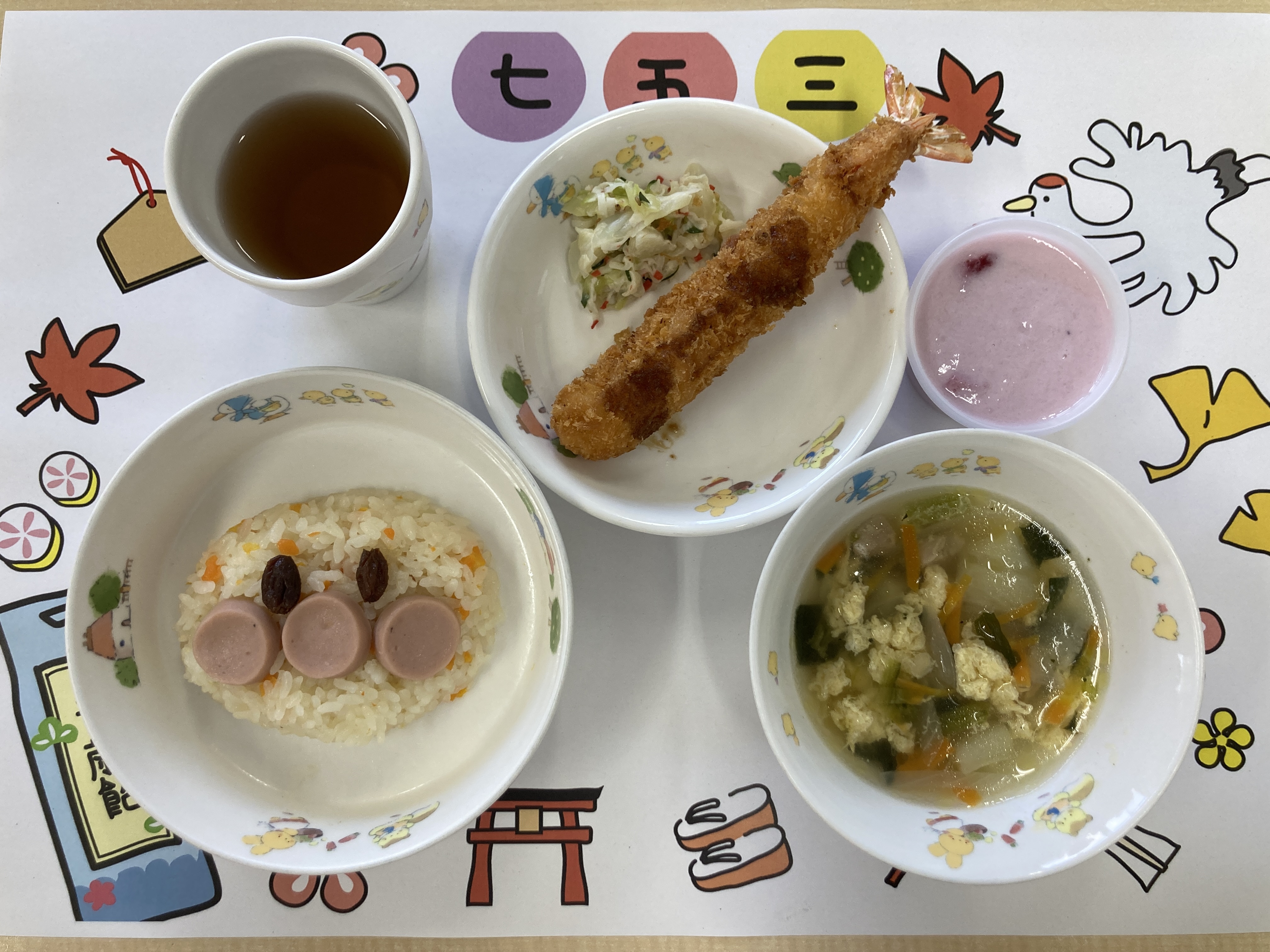給食は、七五三献立でした。「元気に大きく成長してね」の思いを込めて給食さんが作ってくれました。