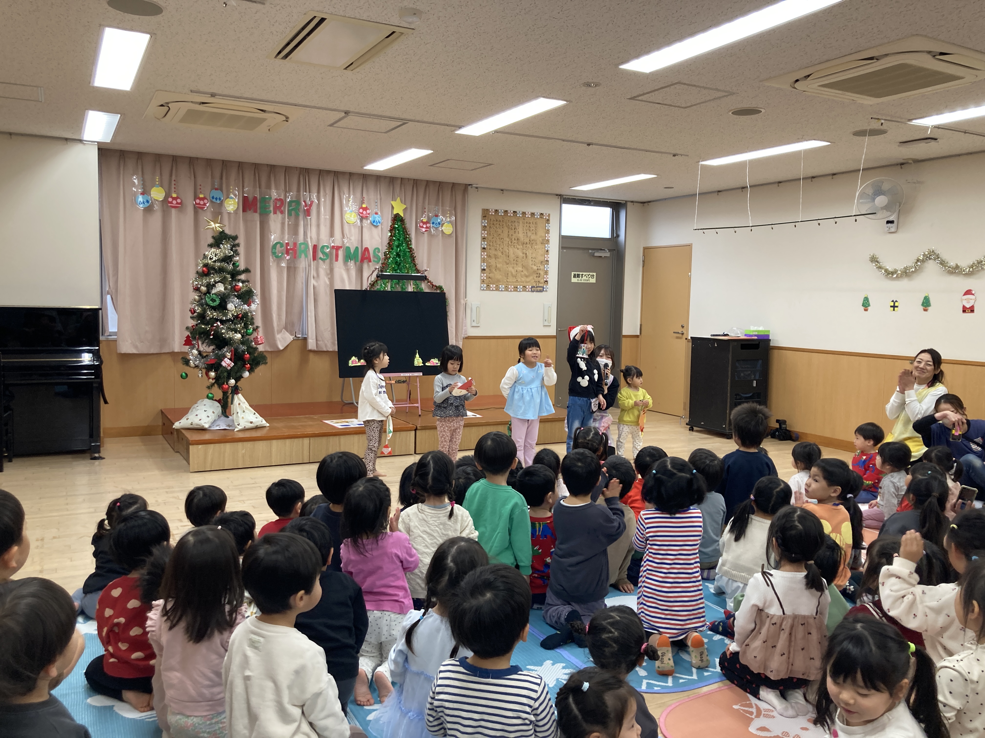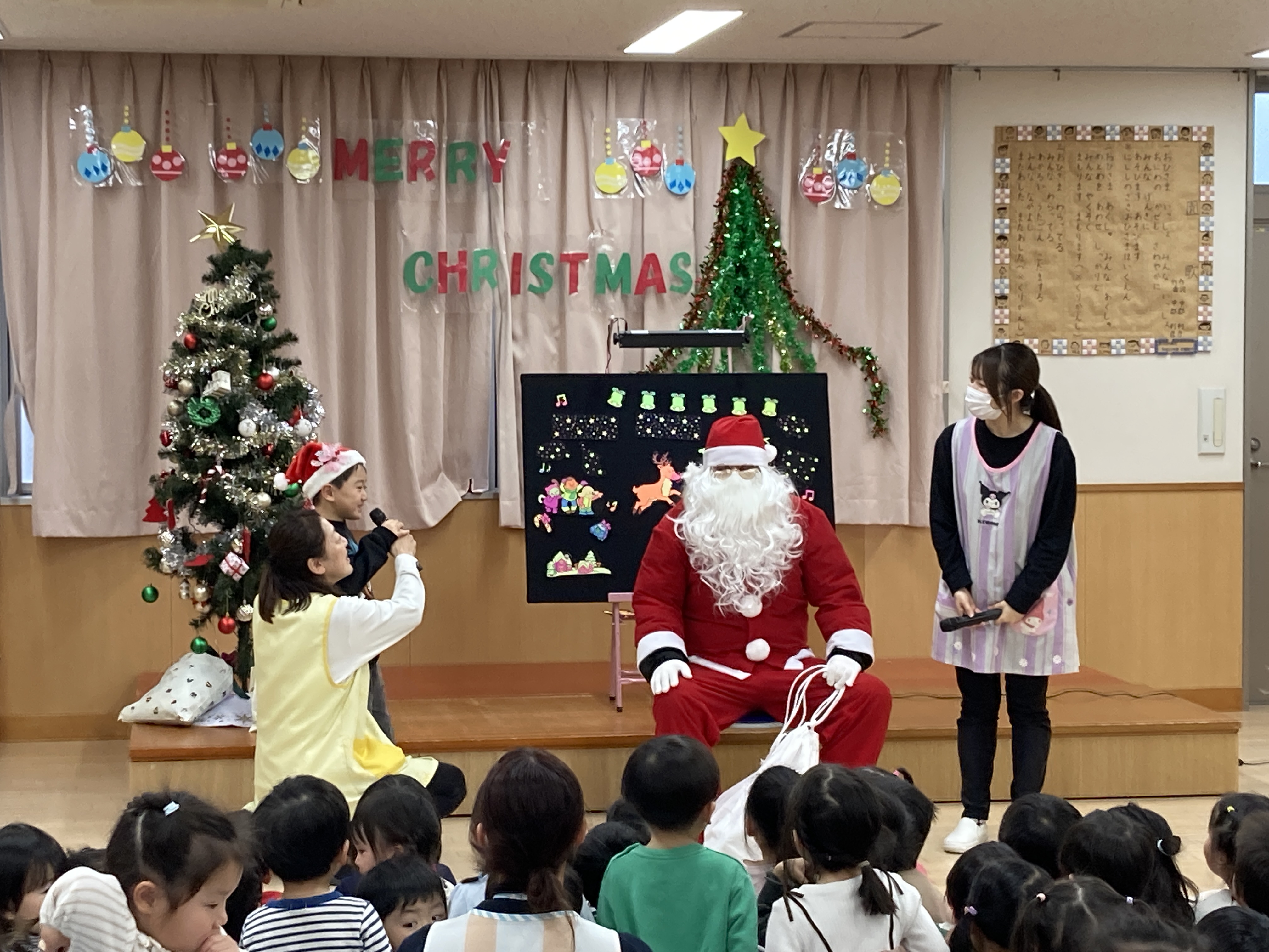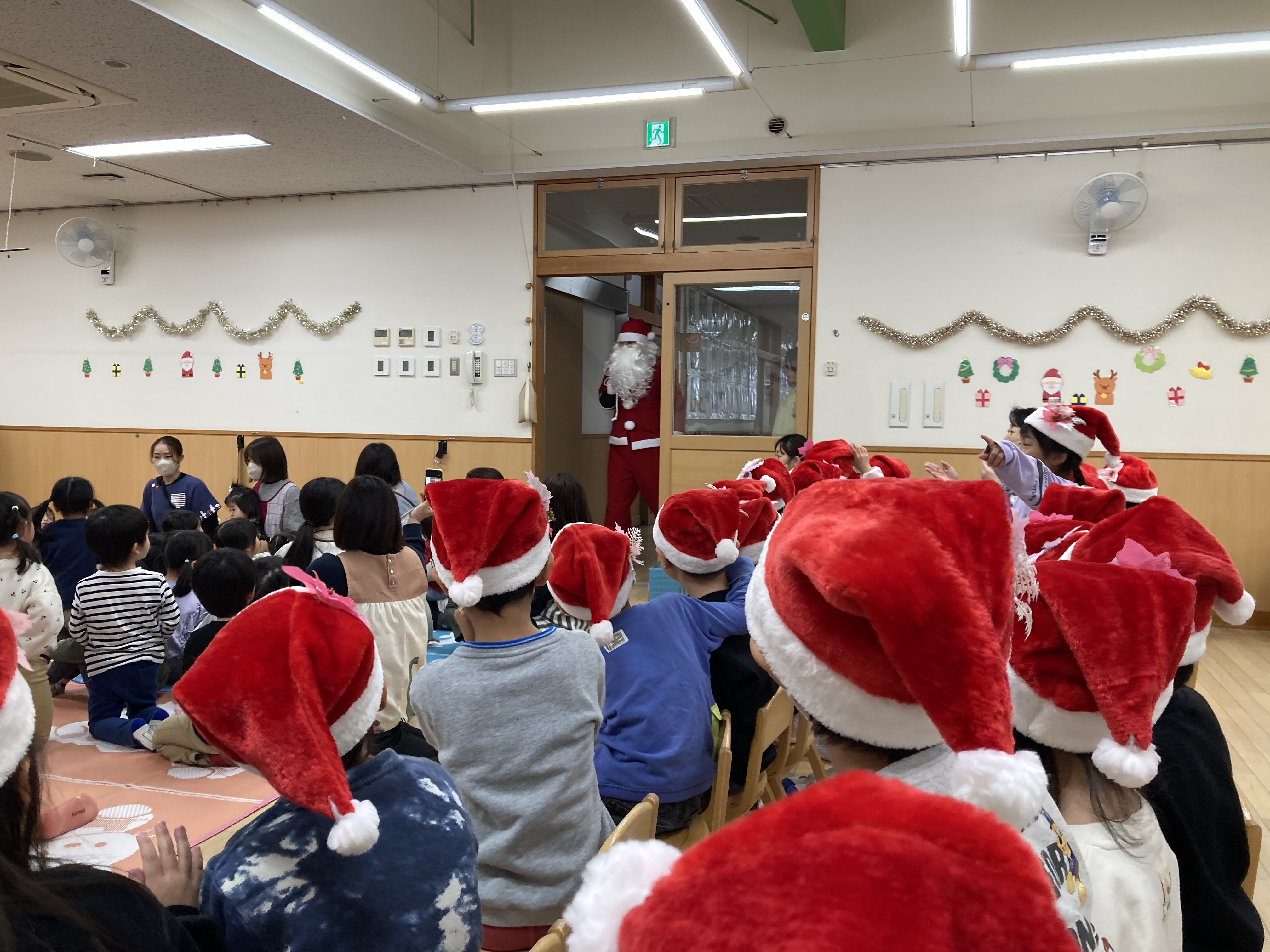 「今日は何の日でしょう?」と聞くと「クリスマスー!」と答えて、わくわくした様子の子どもたち!