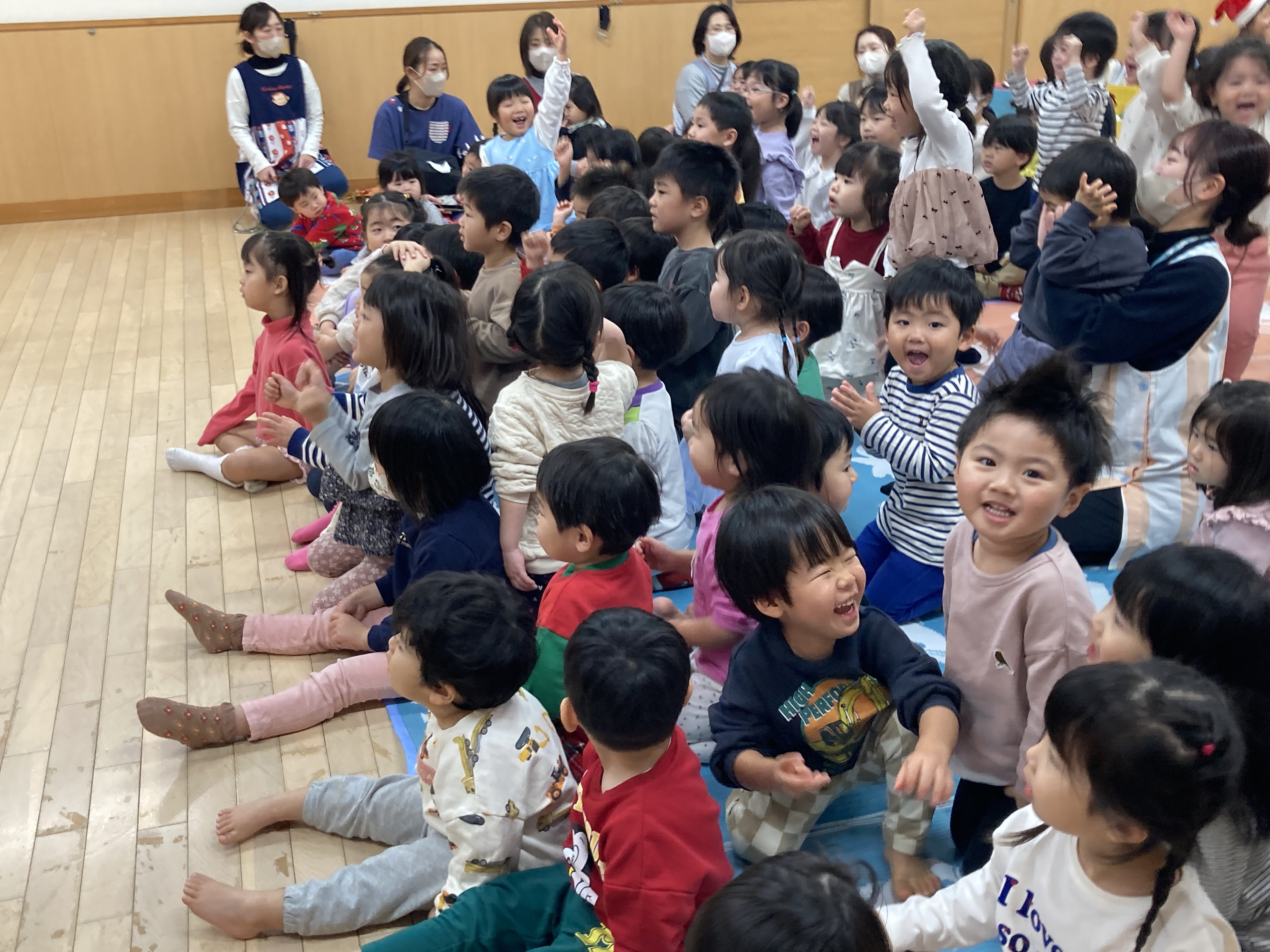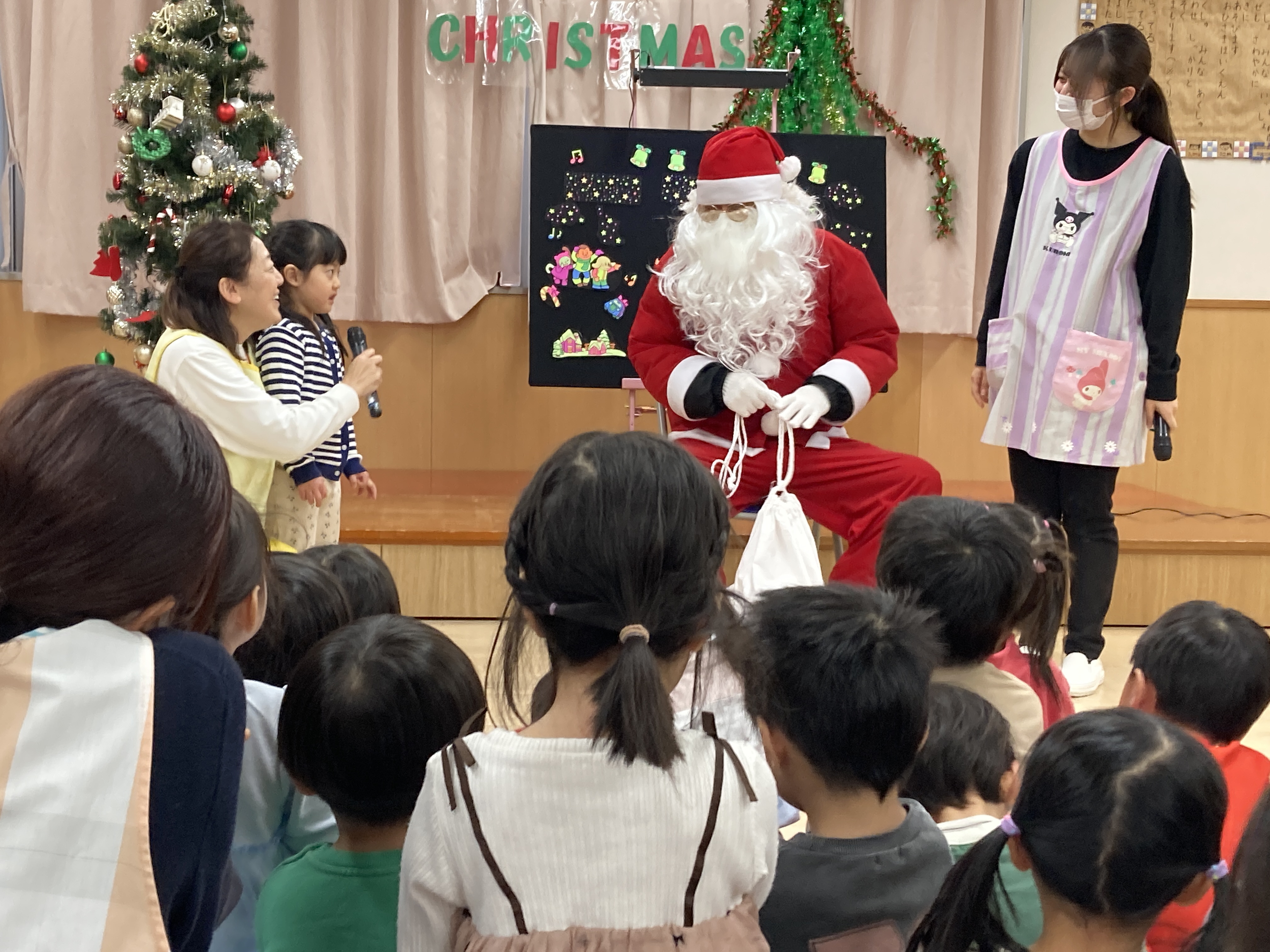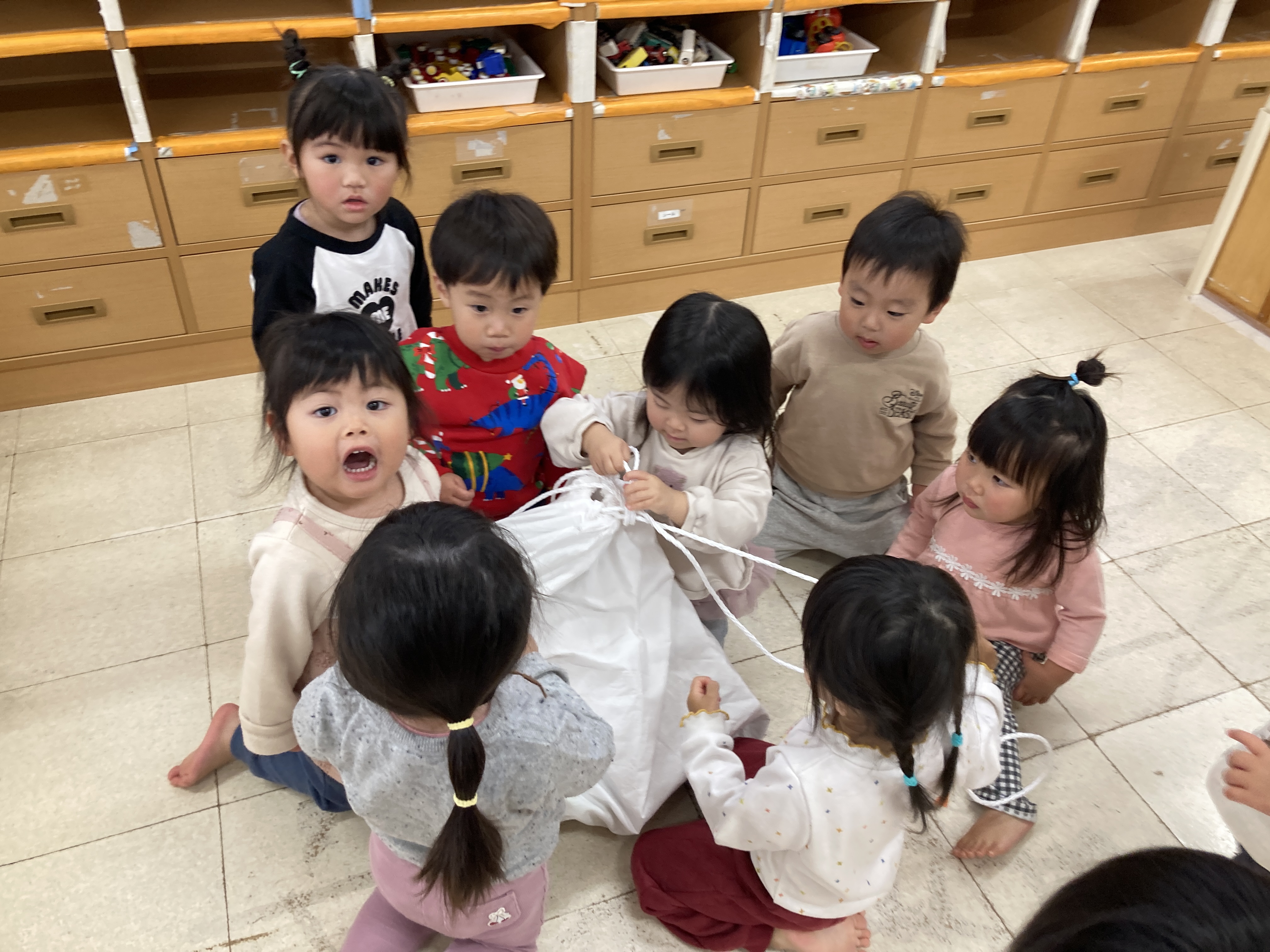 「今日は何の日でしょう?」と聞くと「クリスマスー!」と答えて、わくわくした様子の子どもたち!
