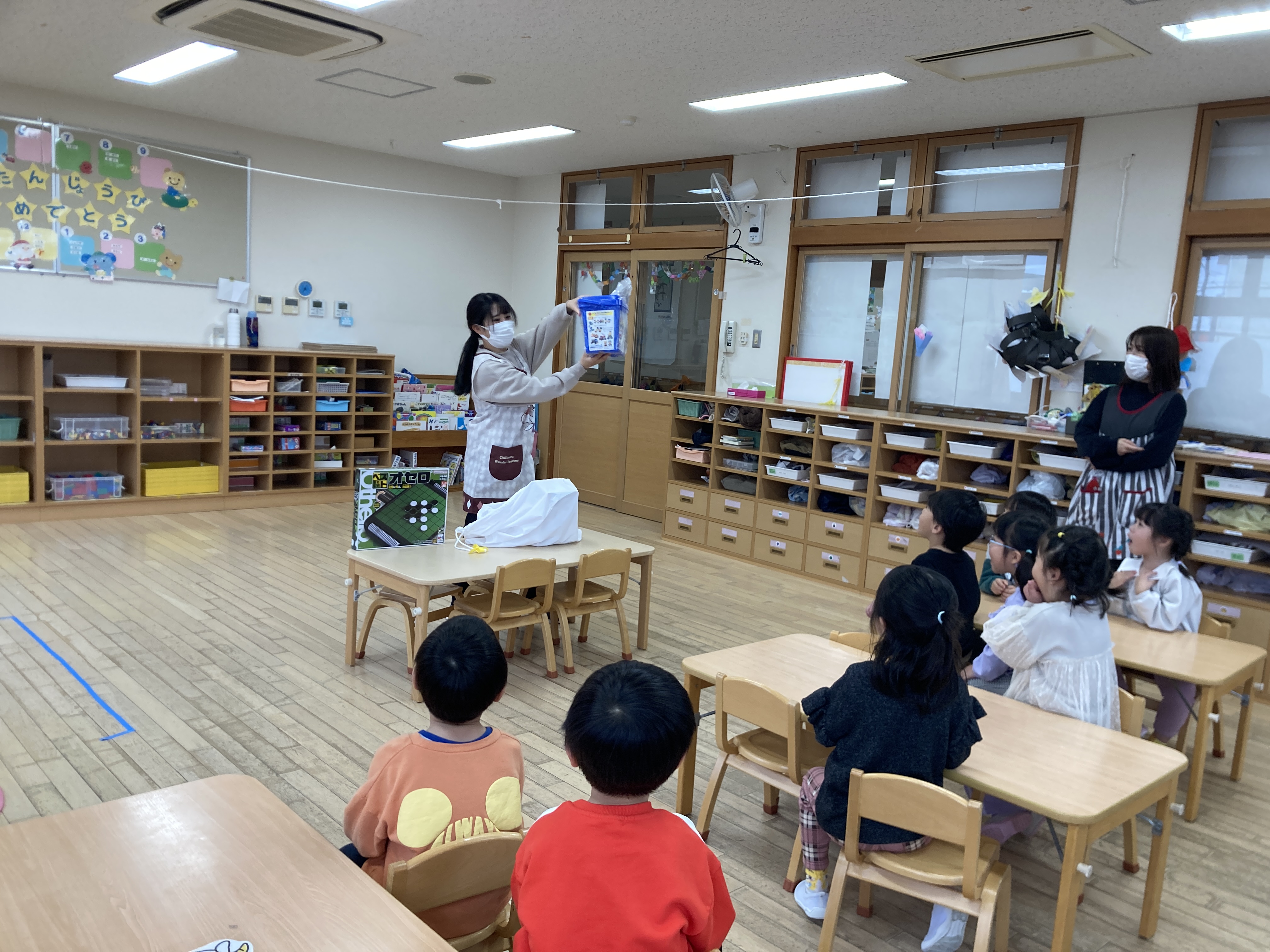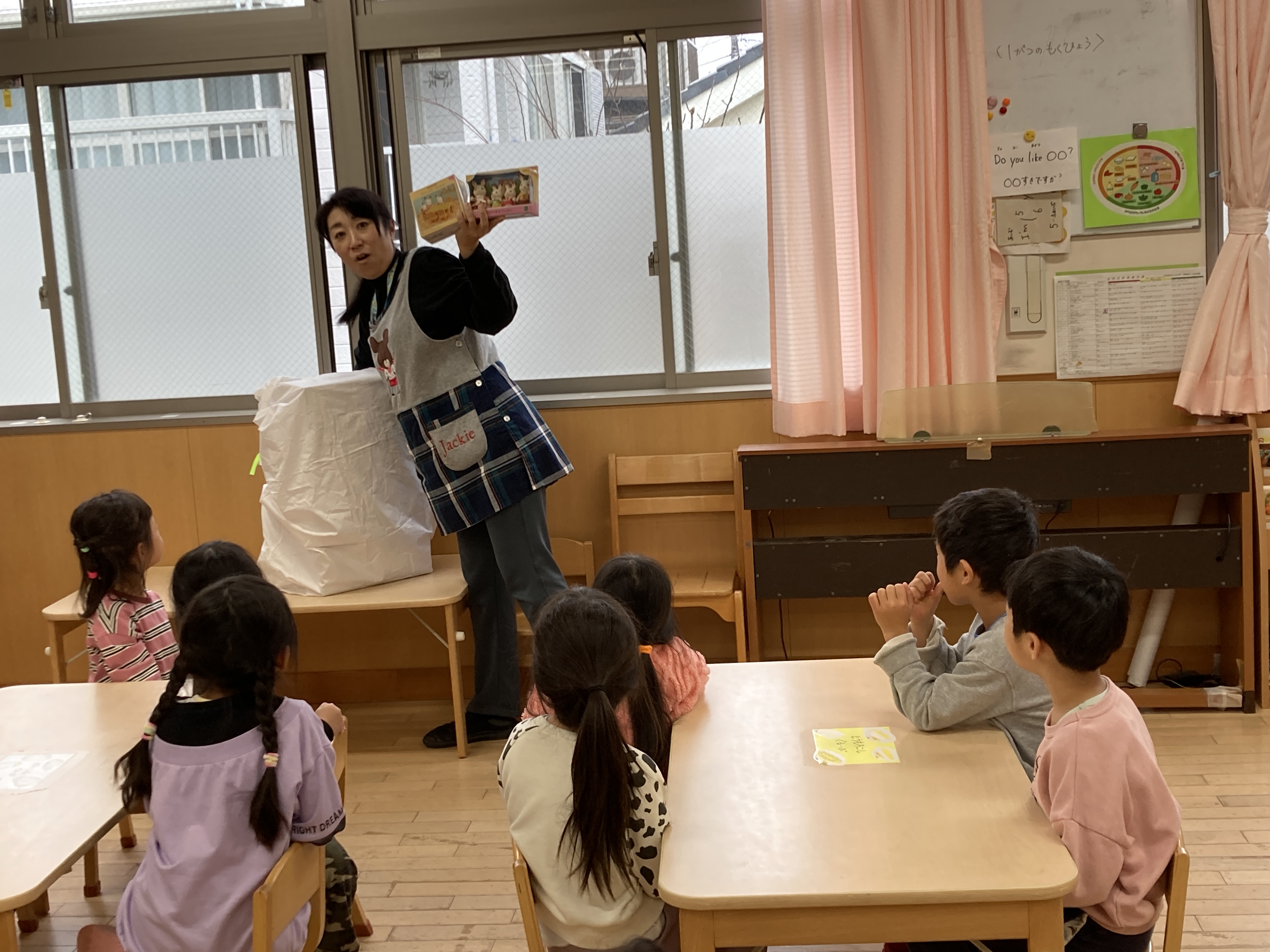 その後は、二択クイズをしました。サンタさんが好きな食べ物やどこに住んでいるかなどが出題され、正解だと思うほうに「はい!はい!はい!」と手を上げて、大盛り上がりでした!