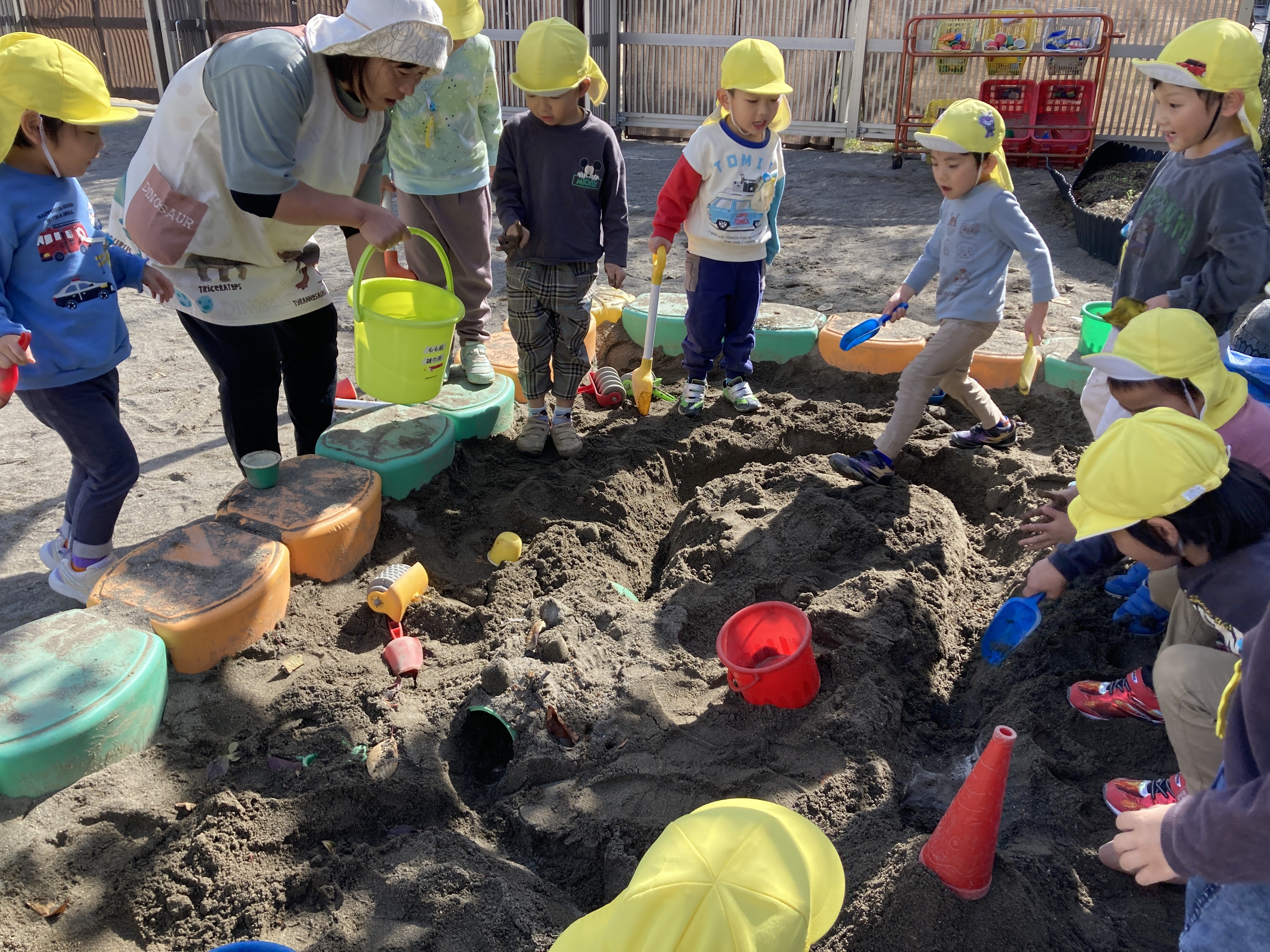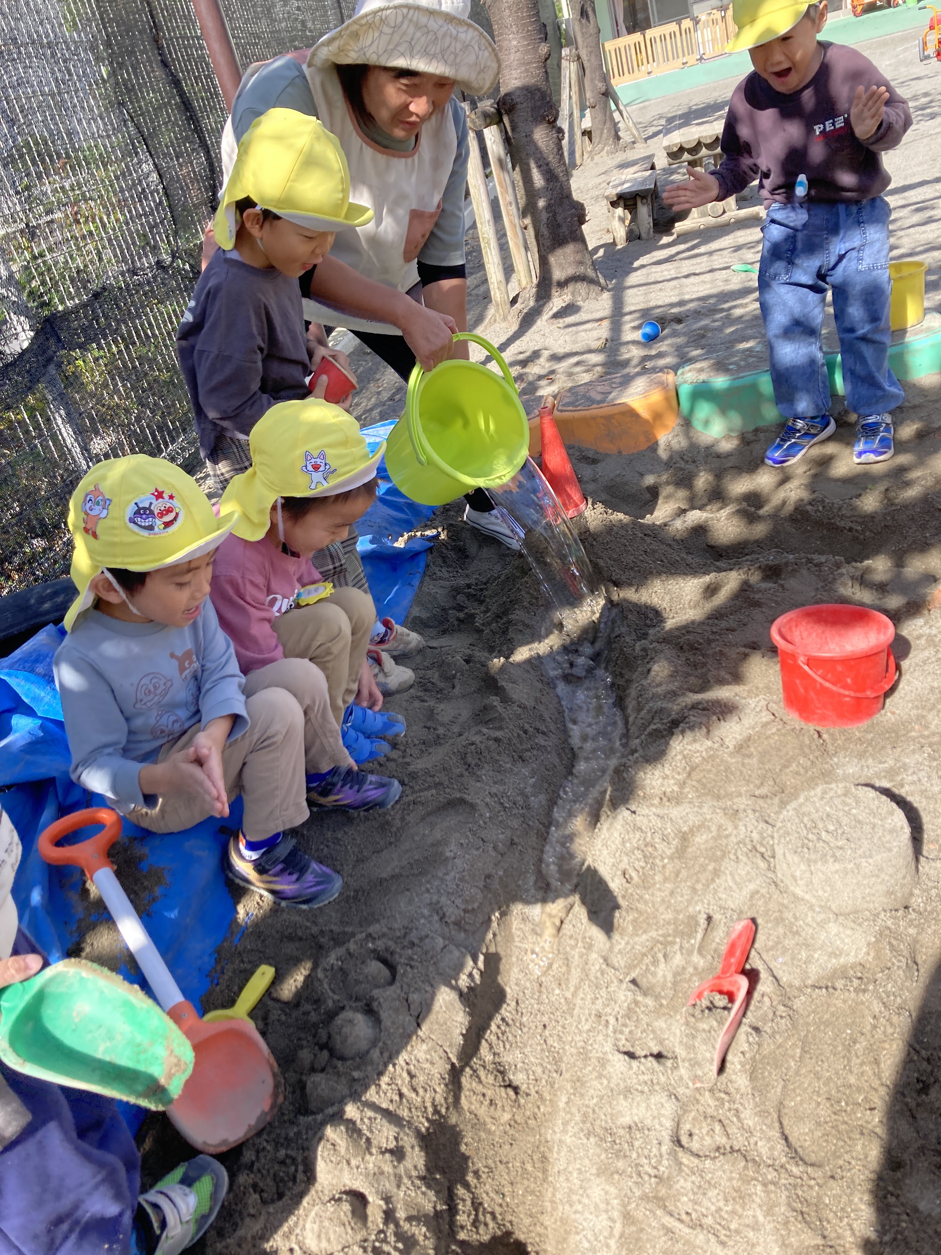 水を使って遊ぶ事で、「こんな遊び方をしてみたい」という好奇心・「どうしたら上手くできるかな」という探求心が育ってきました。毎日の子ども達の気づきを大切にこれからも子ども達がわくわくするような活動をしていきたいと思います。