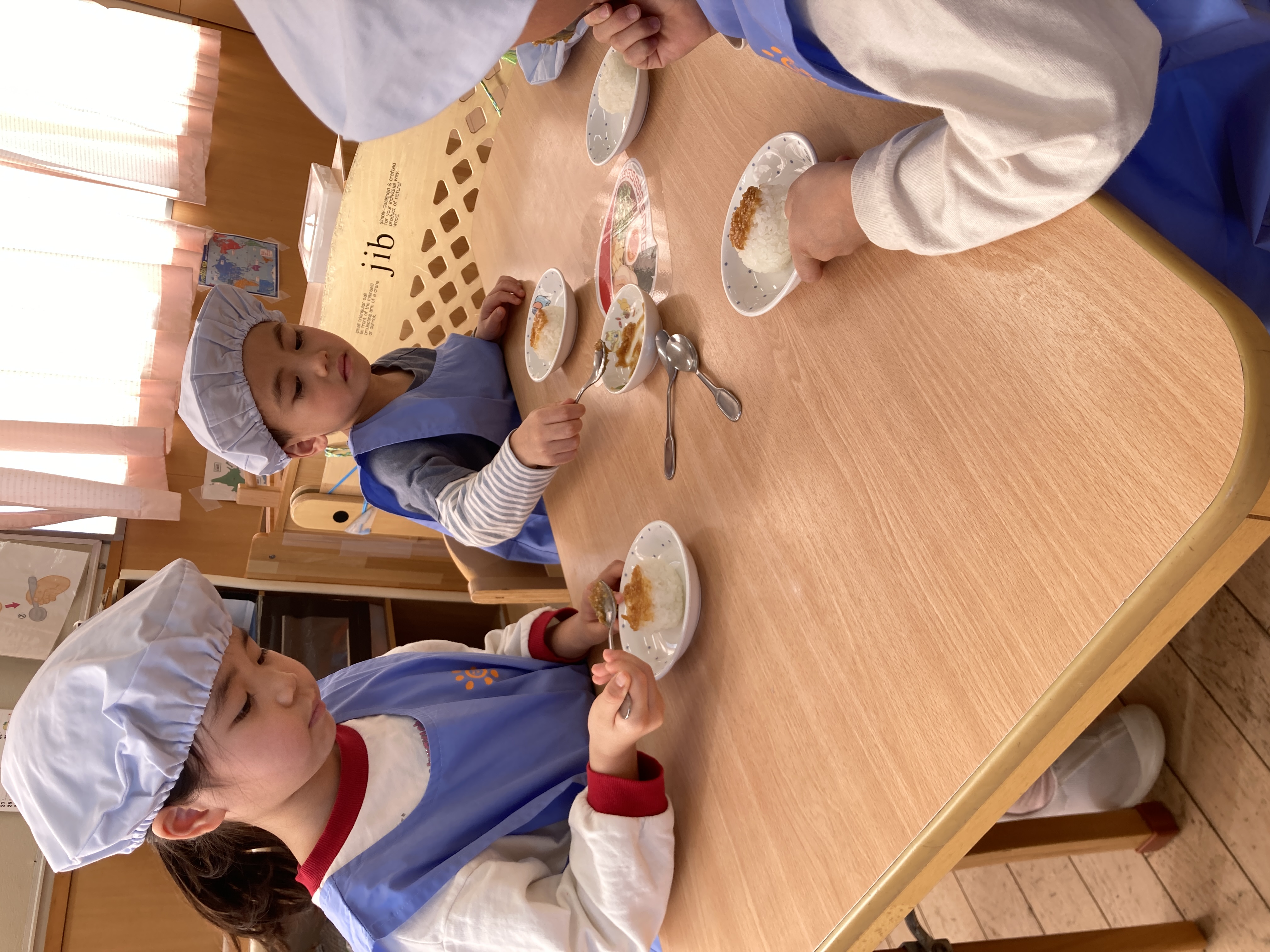 ひっくり返して焼く子がいたり、ひっくり返さないで食べたいという子がいました。