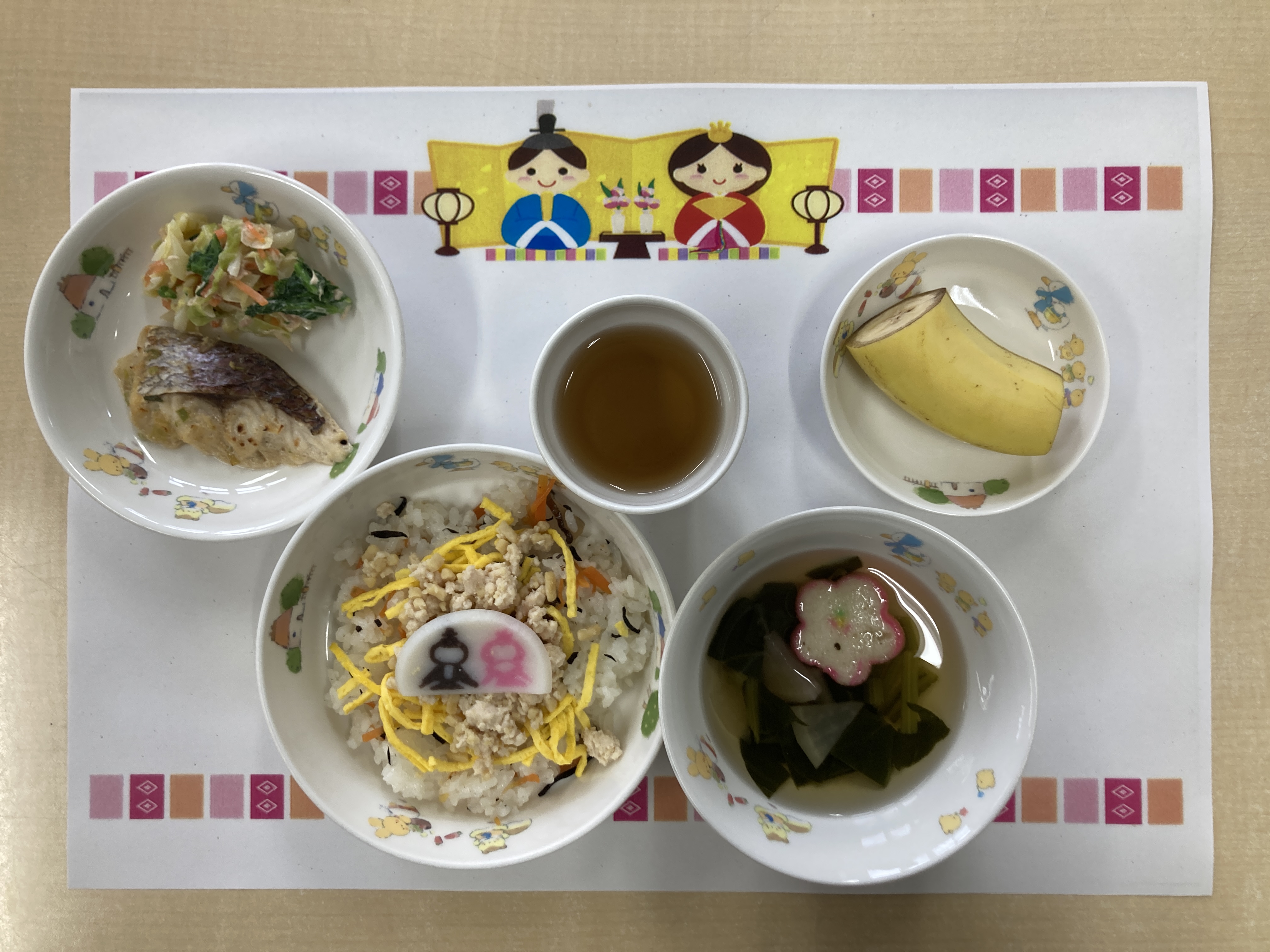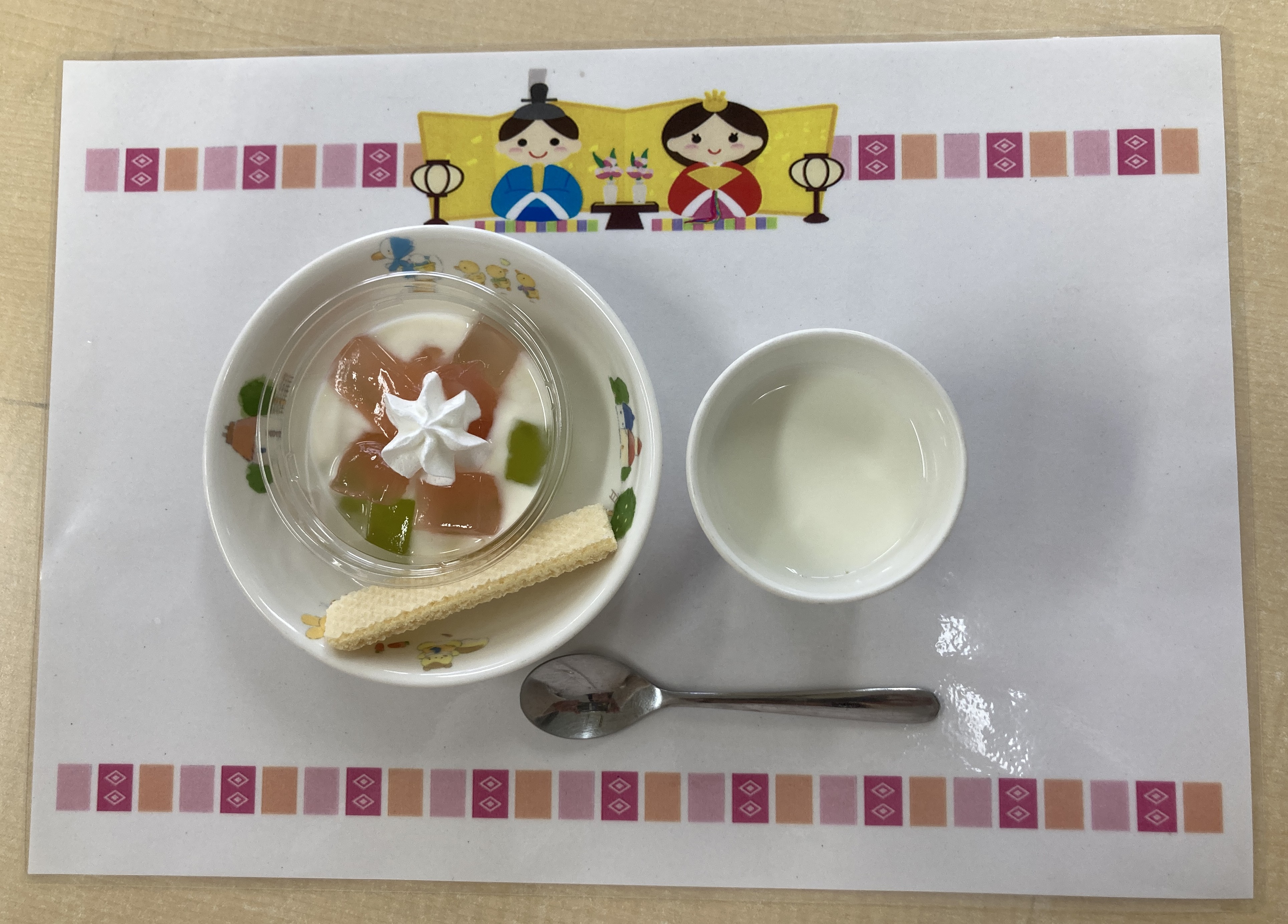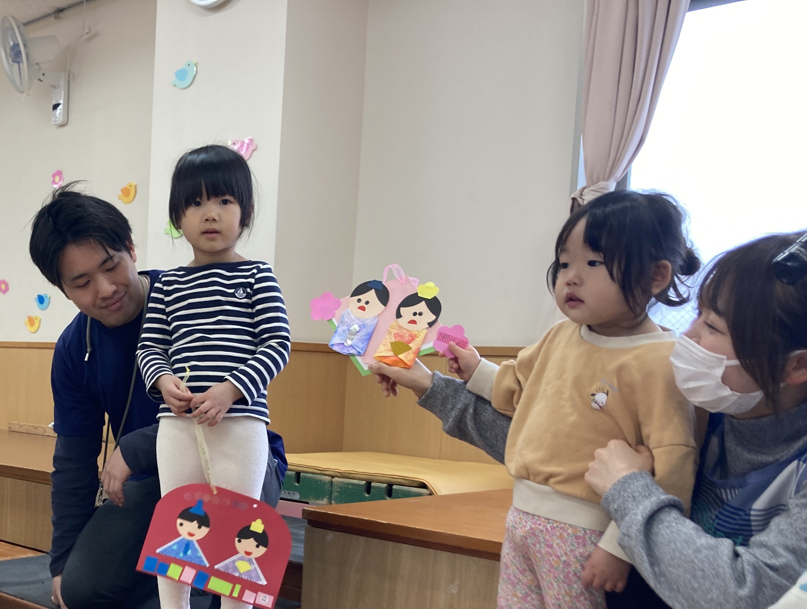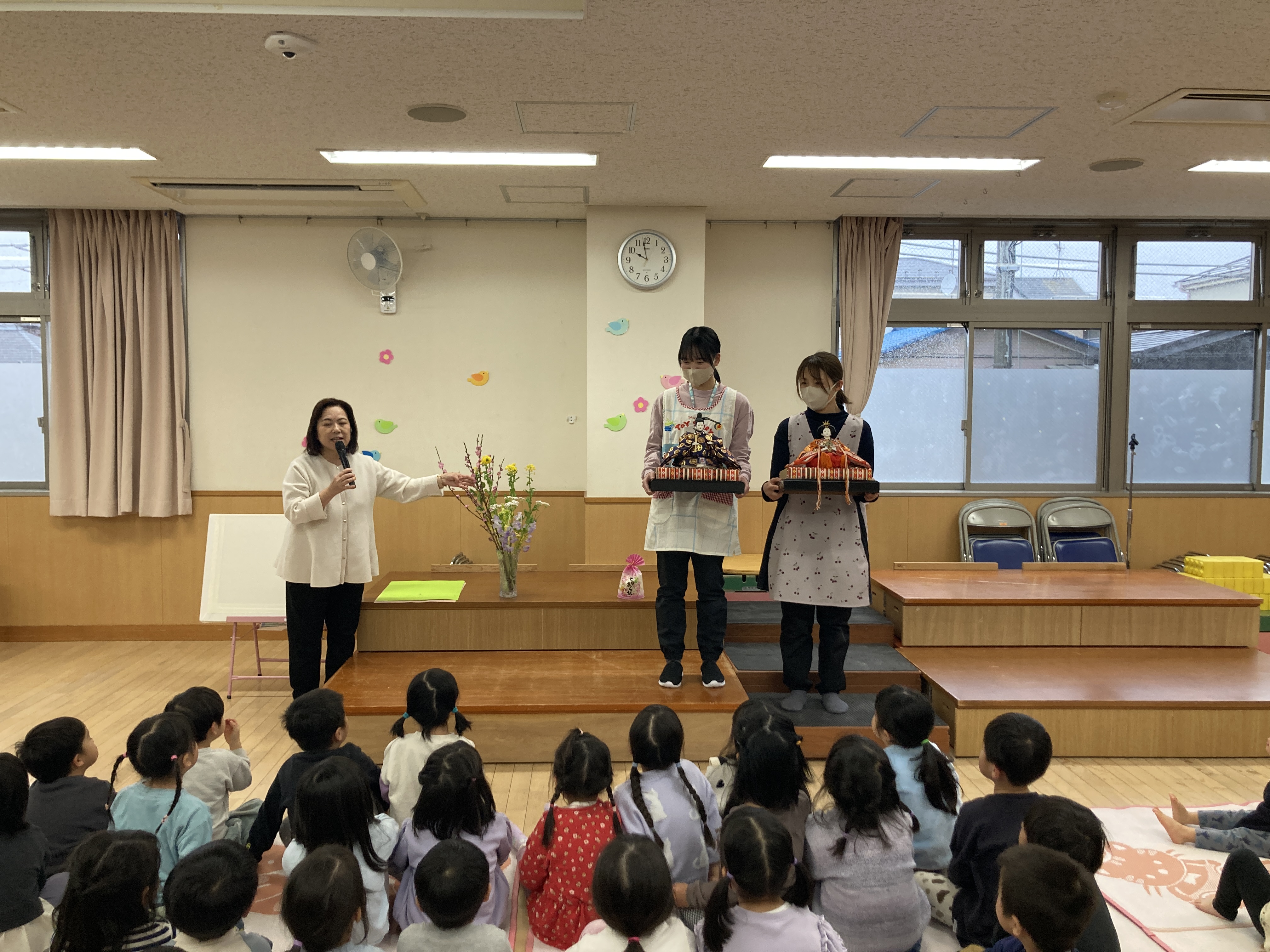 全クラスで集まり、ホールでひな祭り会を行いました!