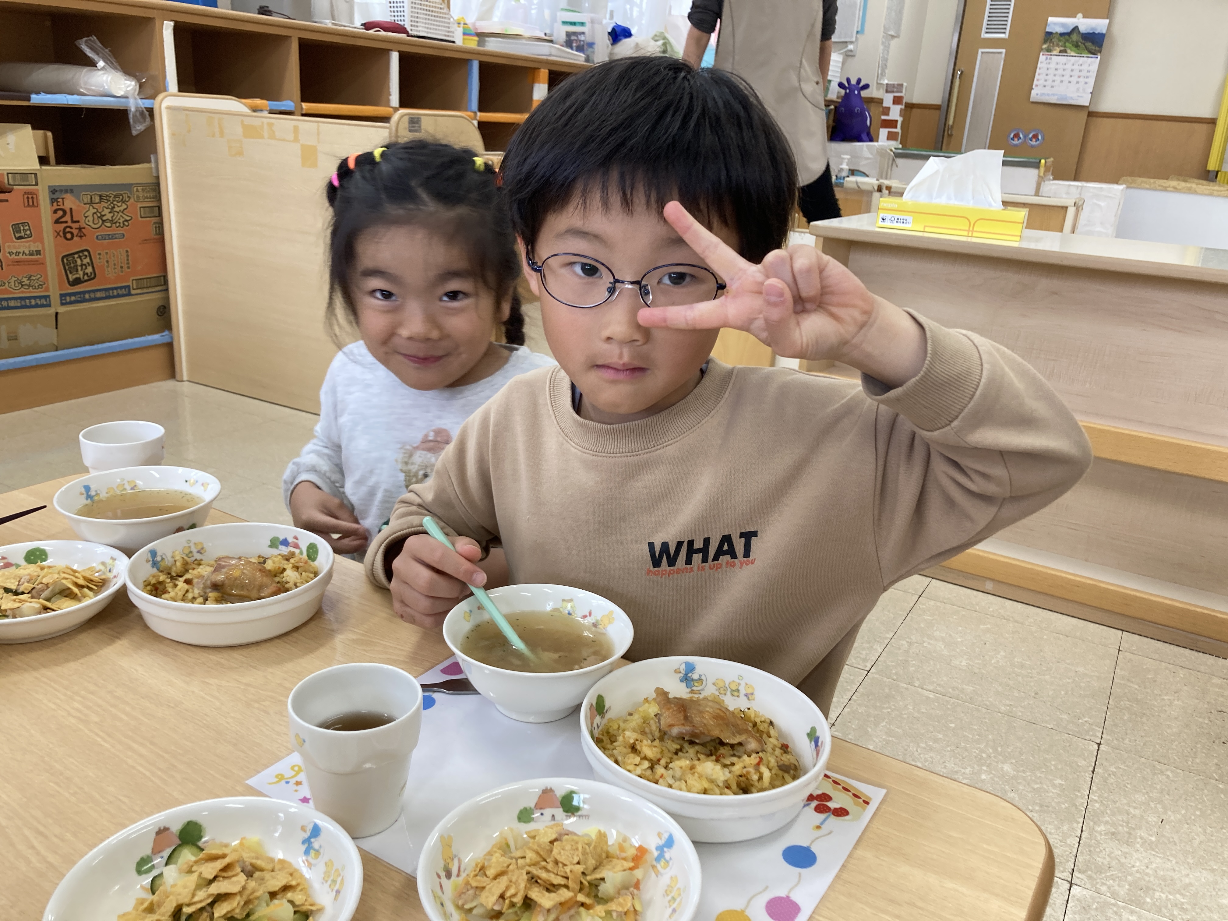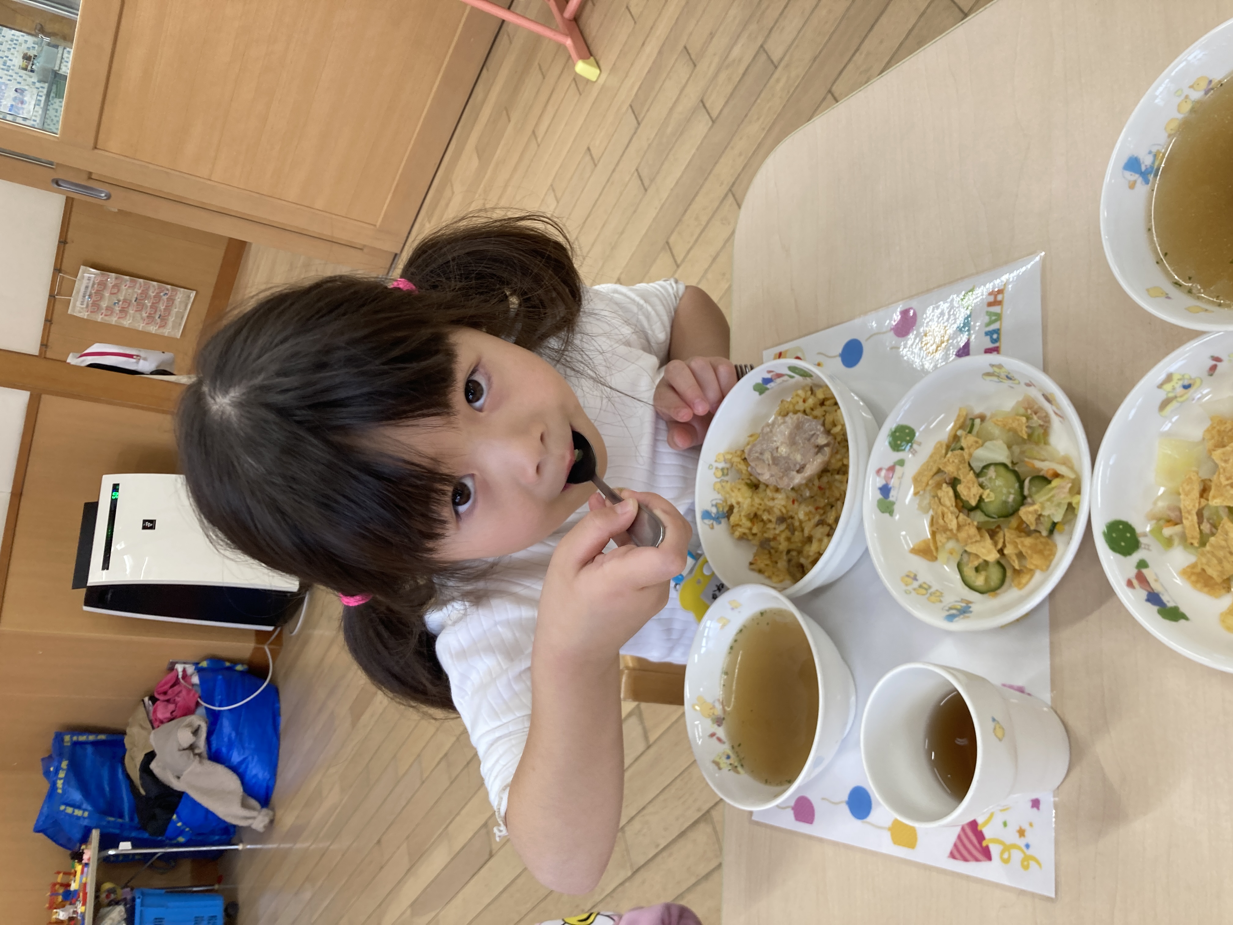 すいか組は保育園最後の給食を楽しくたべました。