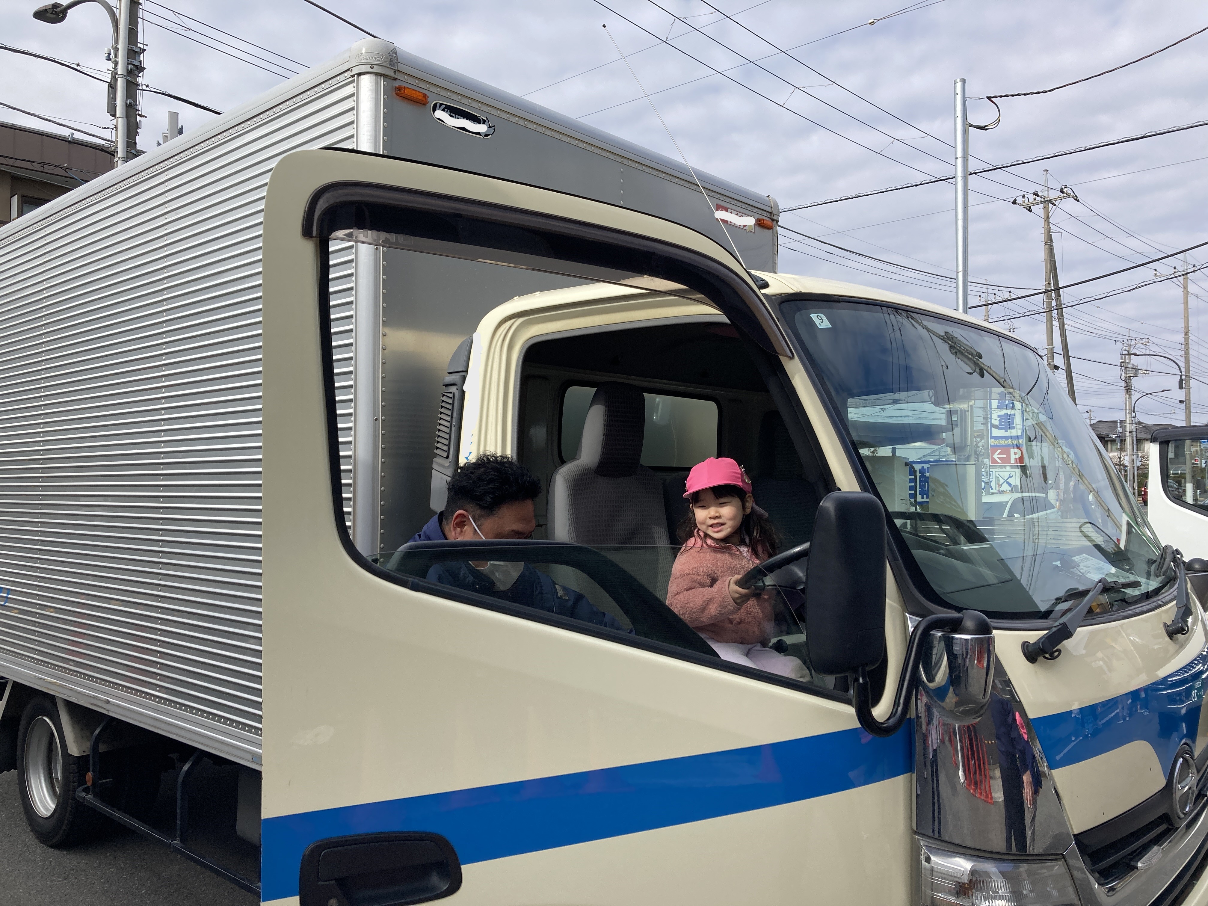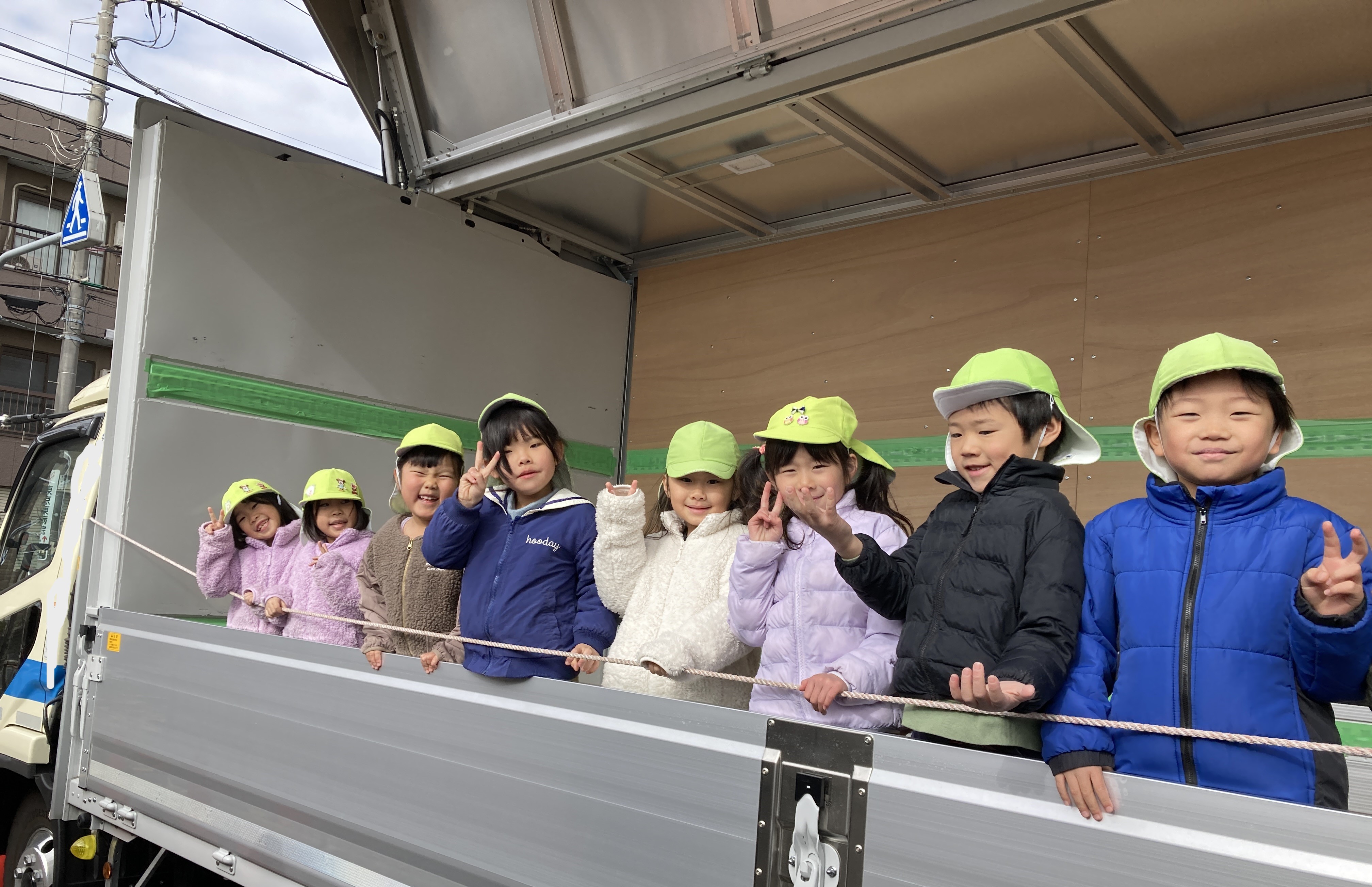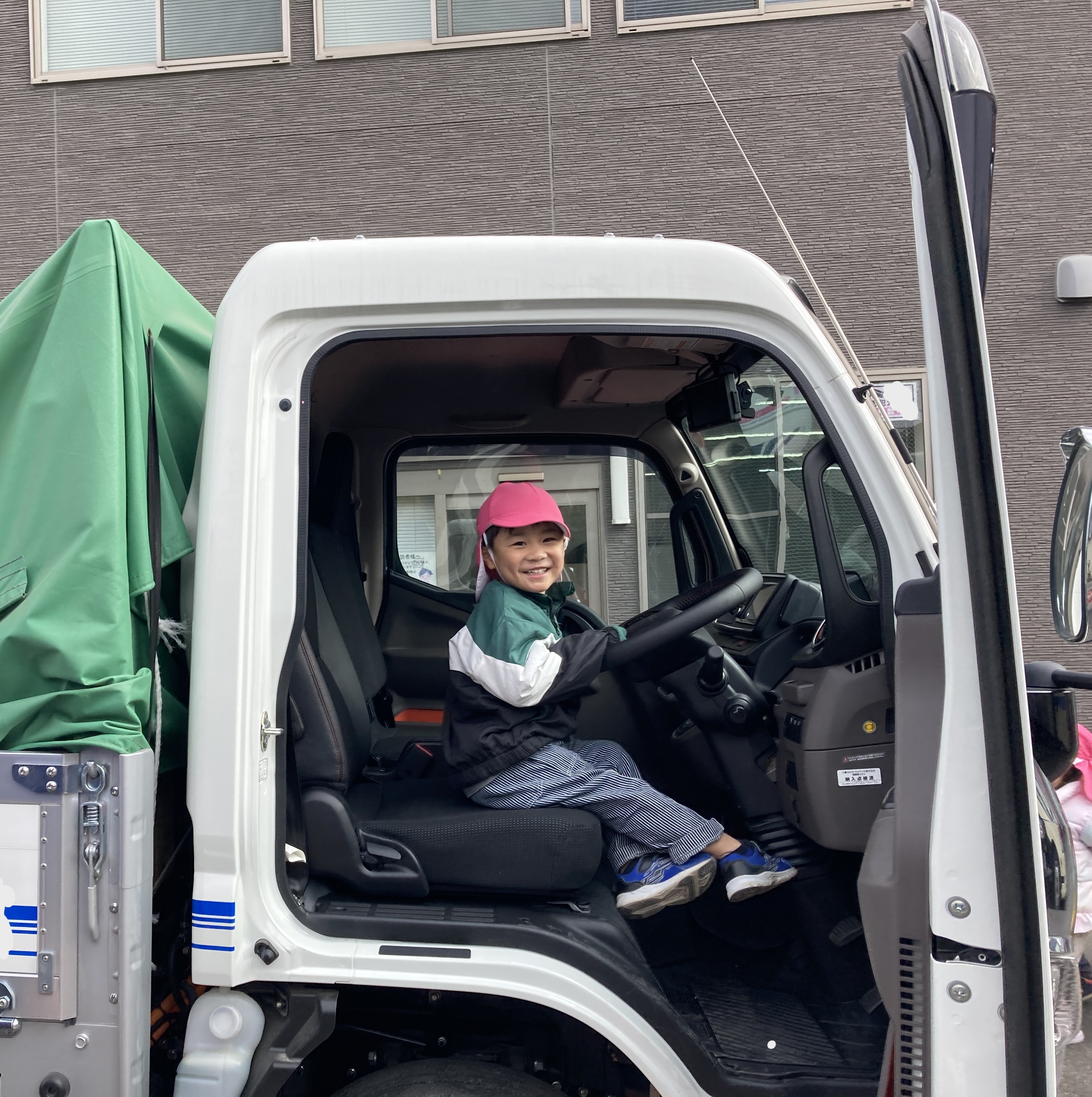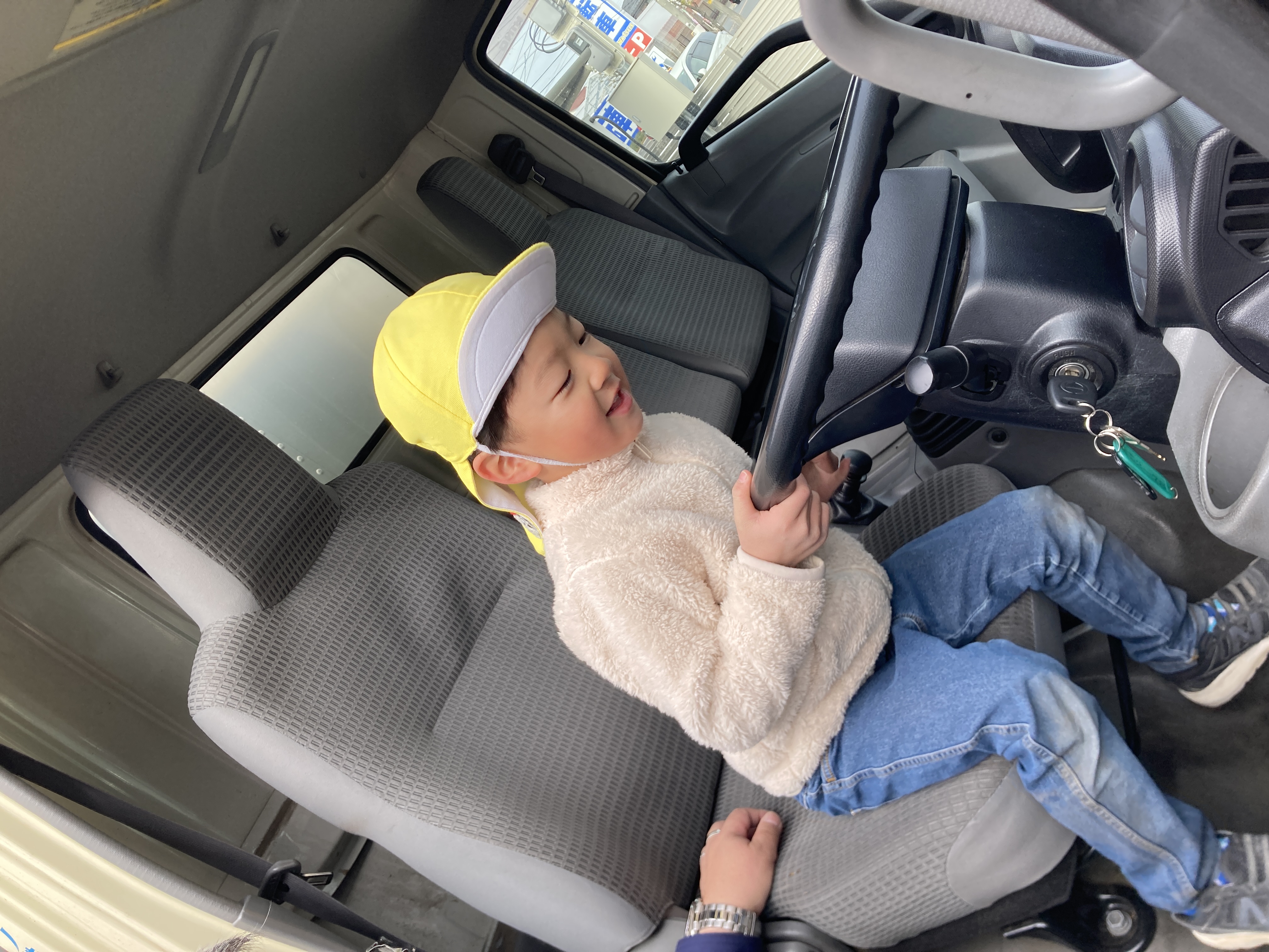 3歳児、4歳児、5歳児クラスは、近くの会社に行きトラックの荷台やトラックの運転席にのせてもらいました。実際に乗ると「高いな~}いつもとは違う視界に子ども達も驚いていました。