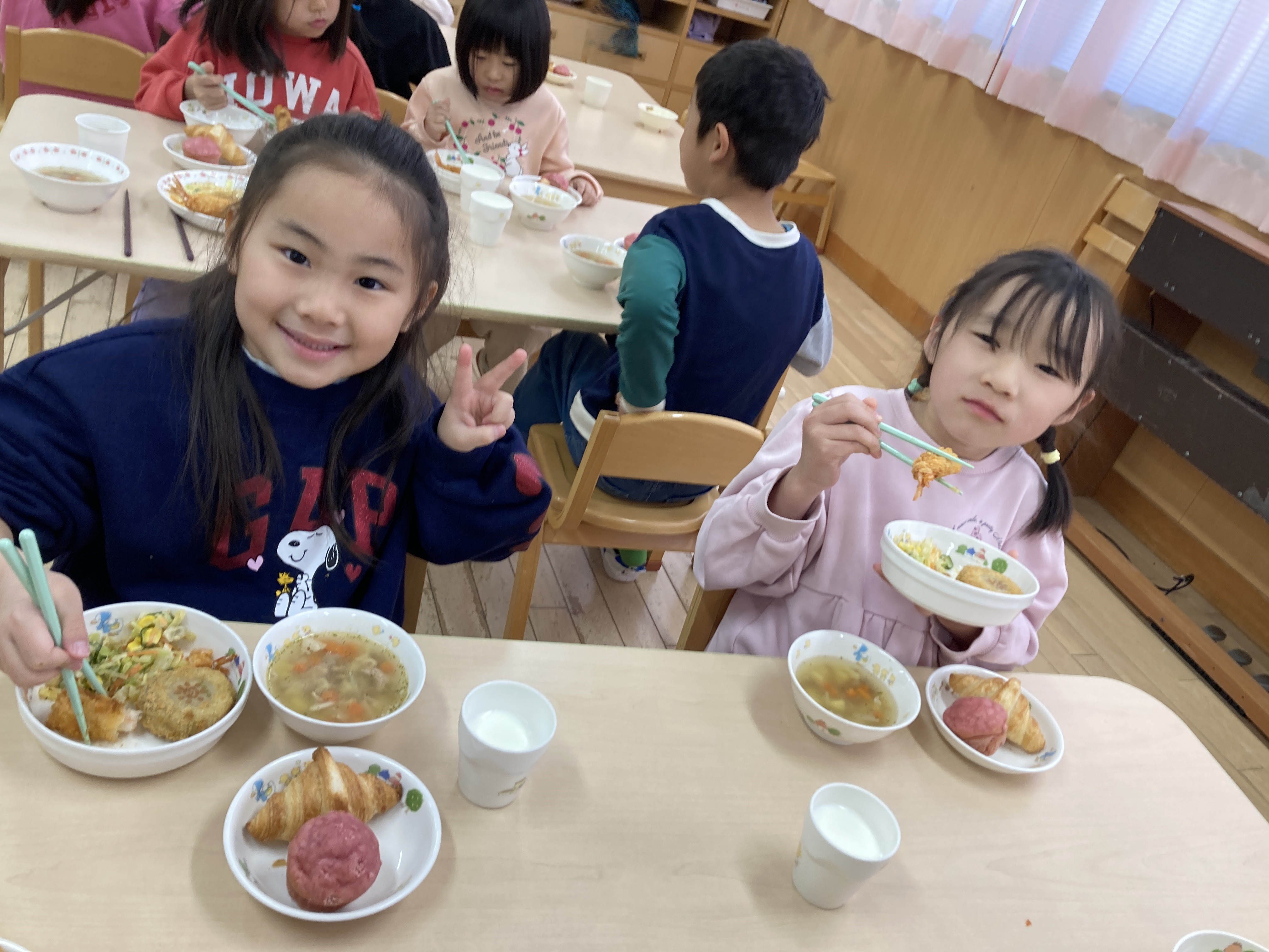わくわくな表情の子ども達。「おいしー」と笑顔でたくさん食べていました。